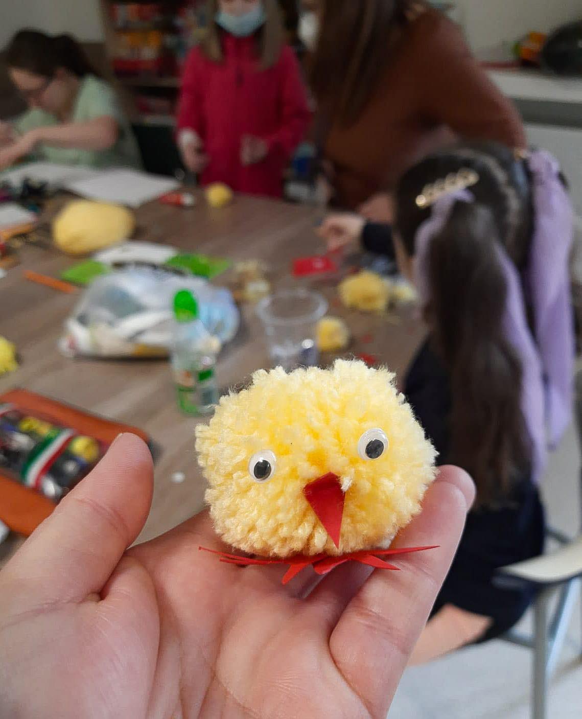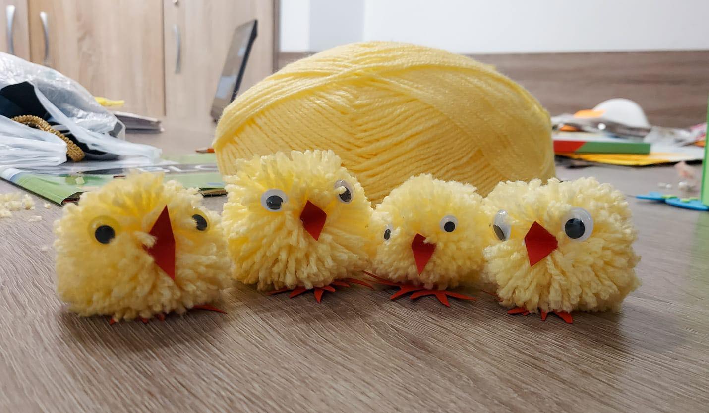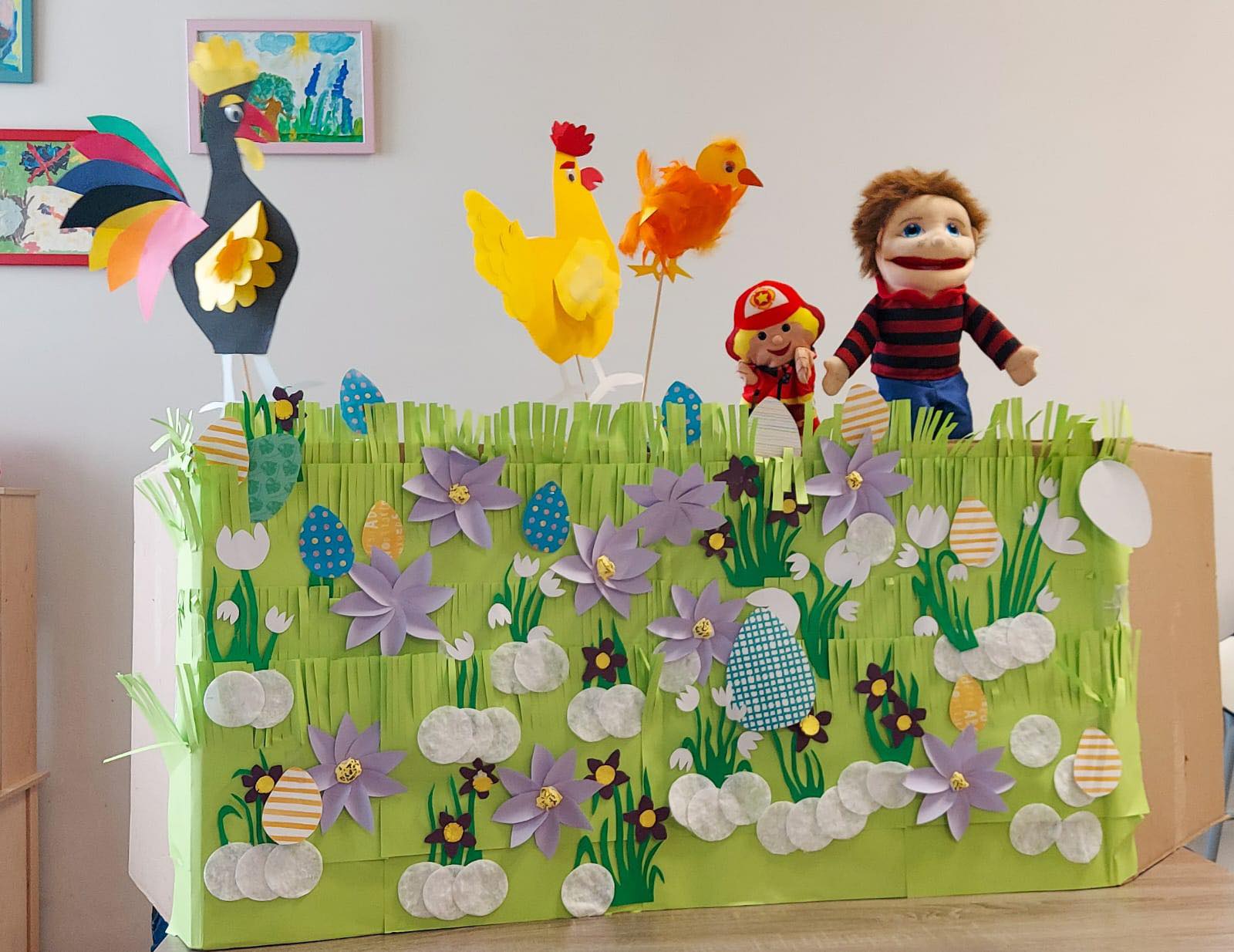 Po obejrzeniu przedstawienia dzieci poznały obyczaje związane ze Świętami Wielkanocnymi i w trakcie warsztatów plastycznych wykonały kurczaczki z włóczki.