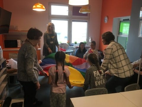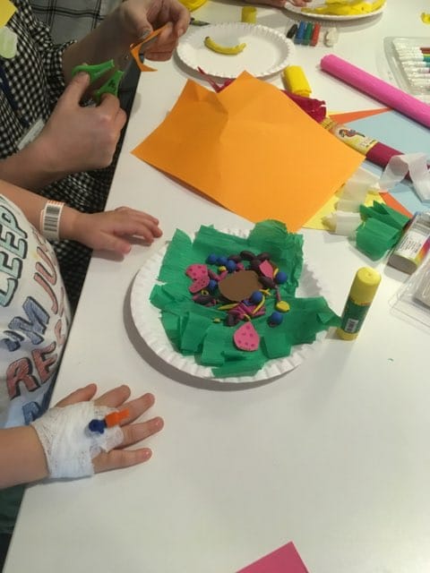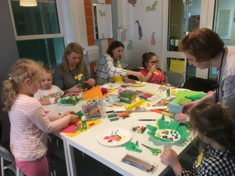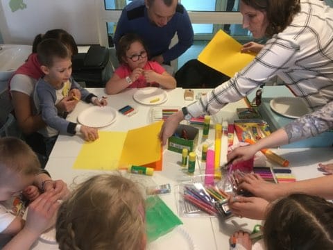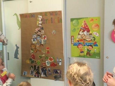 4 marca 2019r. na oddziale X odbyły się zajęcia dla małych pacjentów dotyczące zdrowego odżywiania. Dzieci ze szczególną uwagą poznawały piramidę zdrowego żywienia. Wspólnie wykonaliśmy plakat z piramidą, dzieci wypowiadały się na temat zdrowego i niezdrowego jedzenia. Zwracaliśmy uwagę na aktywność fizyczną i proporcje różnych produktów w codziennej diecie. Czas wypełniła również zabawa z kolorową chustą pt. „Sałatka jarzynowa ” oraz zabawa ruchowa do piosenki „O niezdrowym jedzeniu „. Następnie dzieci wykonały pracę plastyczną pt. „Talerz zdrowego jedzenia”. Dzieci przy pomocy plasteliny, kolorowego papieru, krepy przedstawiły ulubione potrawy. Uczyliśmy się także nakrywać do stołu. Na koniec dzieci otrzymały karty pracy związane ze zdrowym jedzeniem.