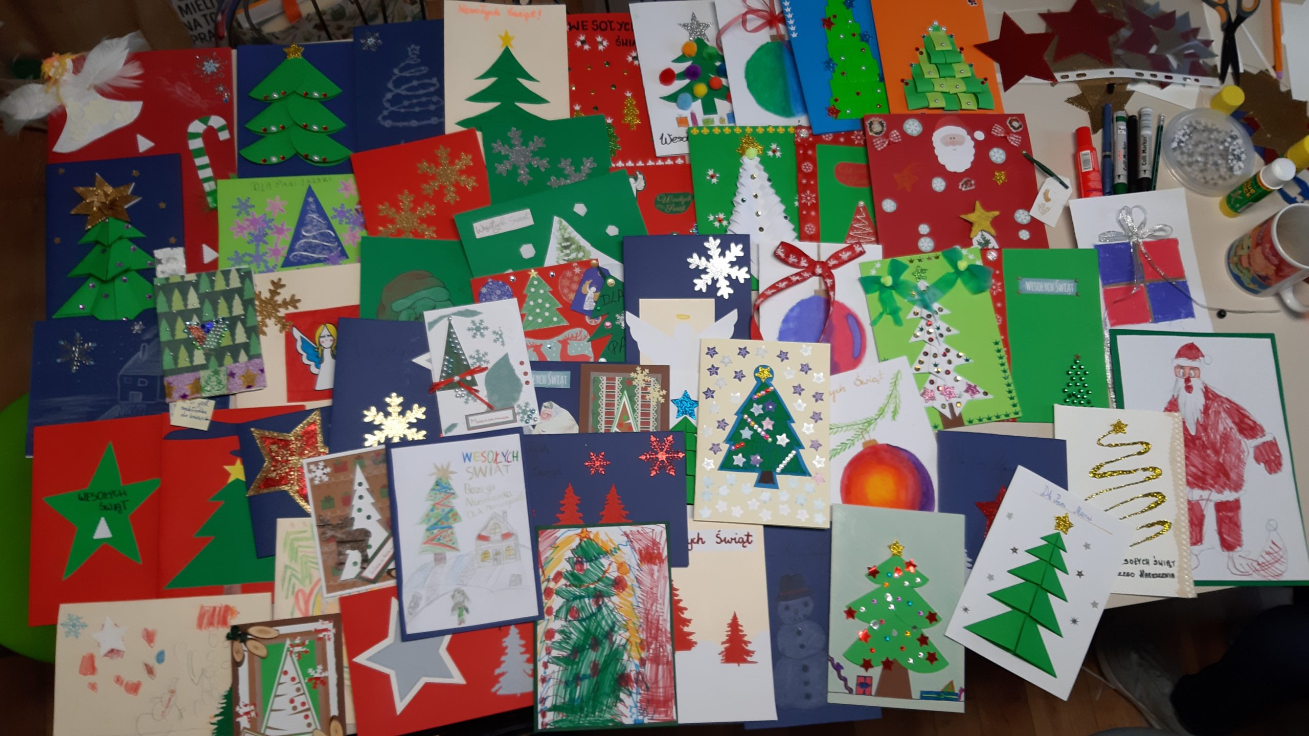 Przedstawiamy finał naszej wspólnej pracy. Pięknie kartki wykonane przez naszych wychowanków trafią do pensjonariuszy Domu Seniora w Srebrnej Górze. Mamy nadzieję, że wywołają uśmiech na twarzach mieszkańców.