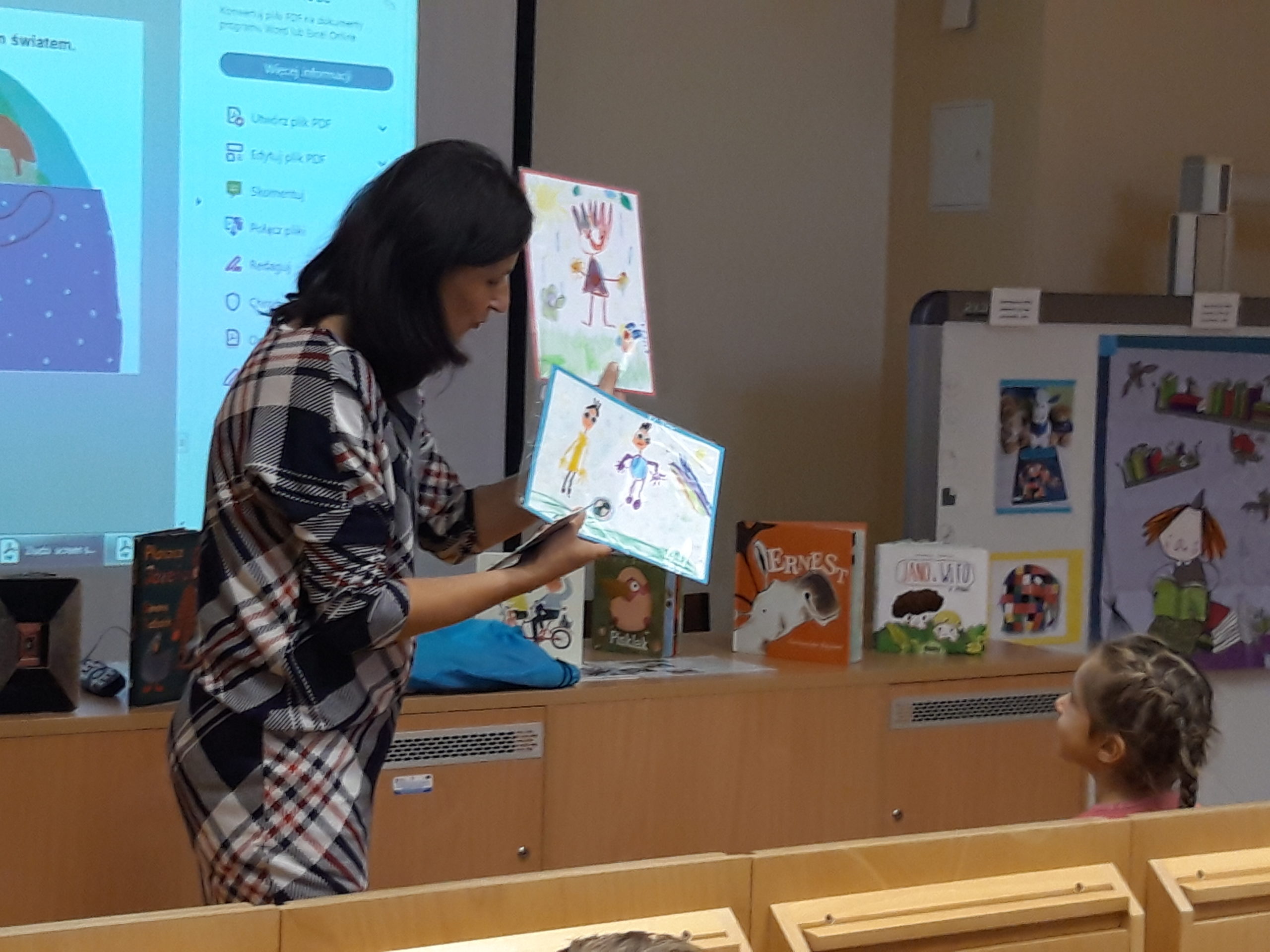 Na zakończenie Pani Bajka Gadajka rozdała nam upominki w postaci obrazków z przygodami bohaterów książek.