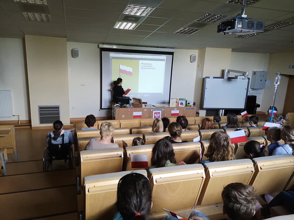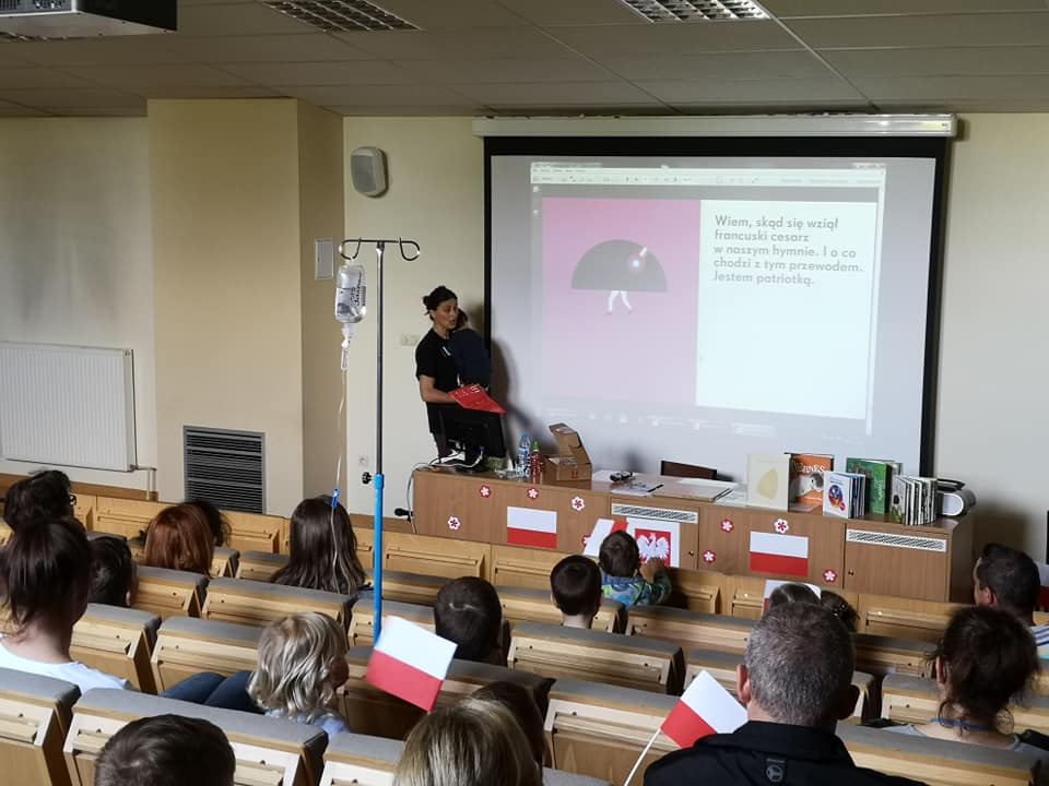 Dnia 14 maja spotkaliśmy się z Panią Małgorzatą Swędrowską. Pani Smykałka, przeniosła nas w niezwykły świat książek i odkryła patriotyzm ukryty między okładkami.Z dużym zainteresowaniem wysłuchaliśmy fragmentów książki pt: „ Kto ty jesteś?” Joanny Olech. Dzięki niej uświadomiliśmy sobie, że patriotyzm zaczyna się od zrobienia czegoś dobrego dla siebie, następnie dla innych, szczególnie w swojej rodzinie, w swoim mieście, a nawet w kraju.
