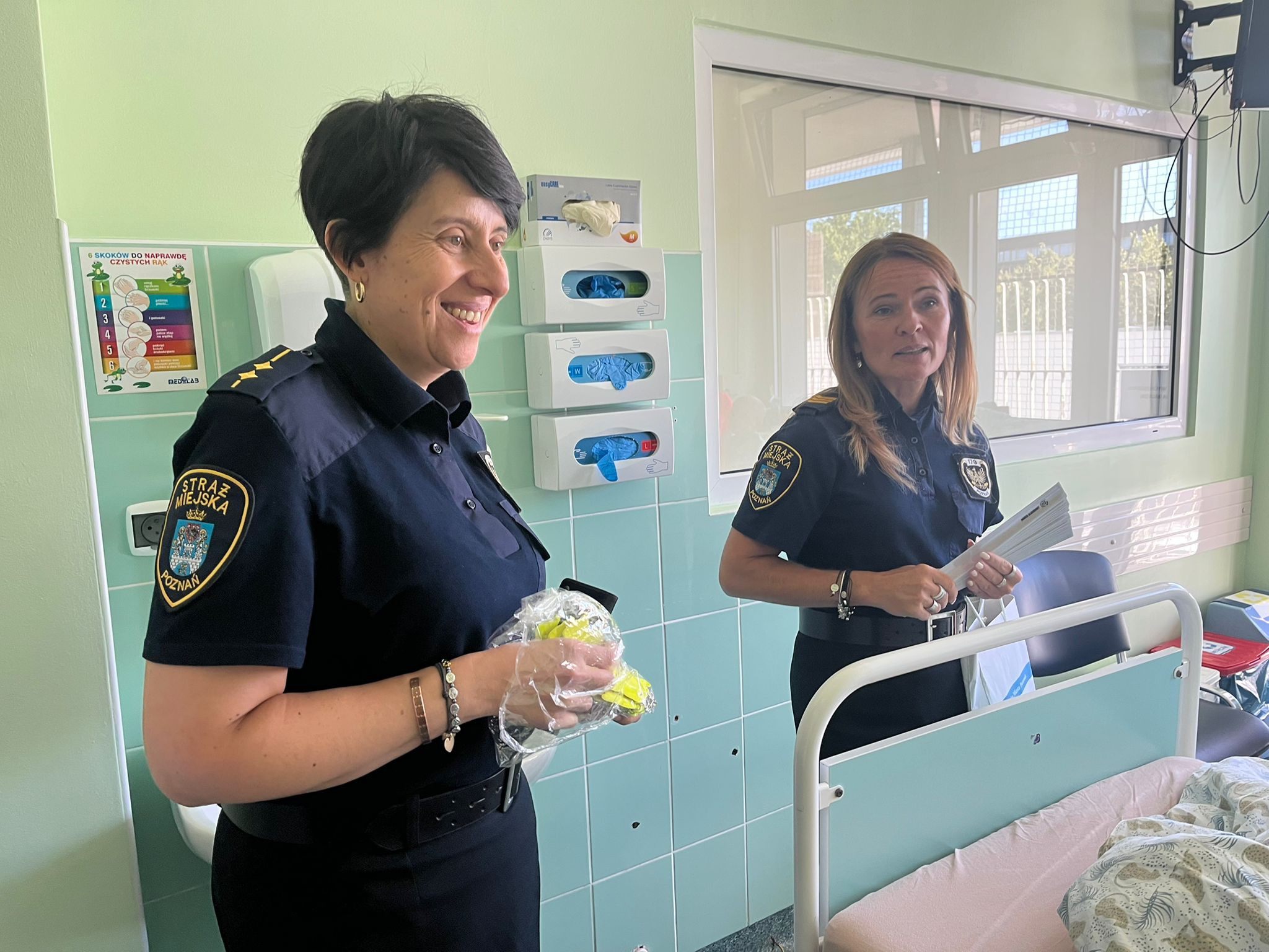 Funkcjonariuszki Straży Miejskiej Miasta Poznania odwiedziły oddziały szpitalne, aby porozmawiać z dziećmi o bezpieczeństwie.