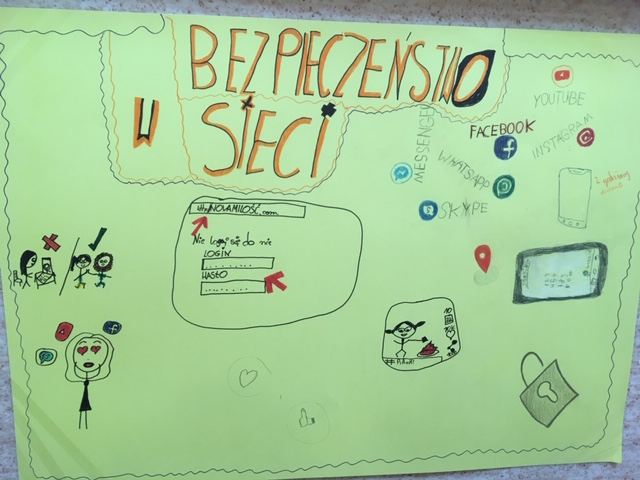 Dnia 27 lutego na jednym z oddziałów odbyły się zajęcia pod hasłem „Bezpieczny Internet”. Poruszana była tematyka nadmiernego użytkowania Internetu, ochrony danych osobowych i wizerunku, bezpiecznego logowania i ochrony hasła. Uczniowie wykonali plakat „Bezpieczny Internet”, ilustrujący zagadnienia z zajęć.