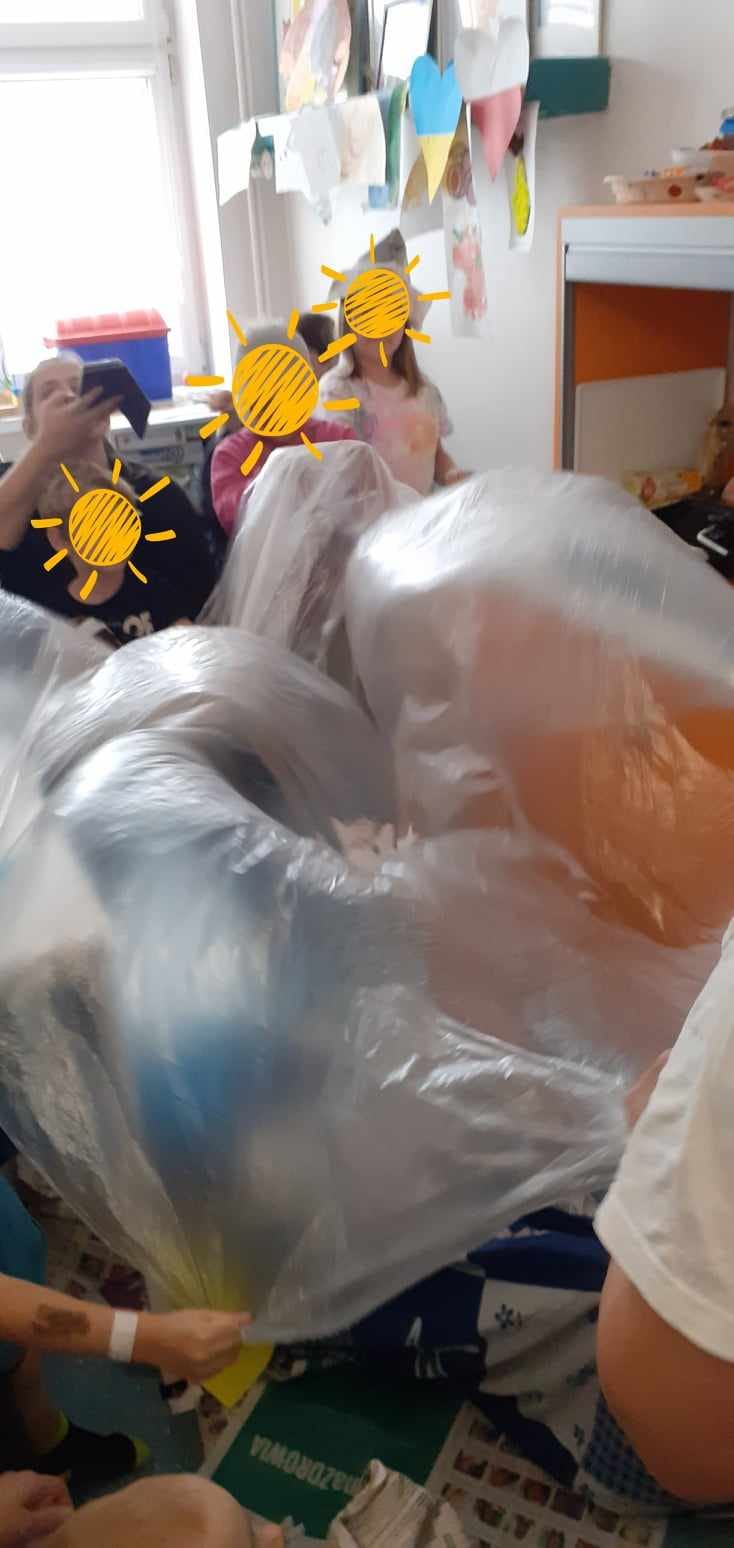 Pani Iza Kachlicka przedstawiła dzieciom opowieść o Rybaku, który spełniał marzenia. Dzieci wiosłowały, dmuchały w żagiel, zadbały o pogodę – wyczarowały i słońce i chmury i dzięki tym wszystkim wysiłkom udało się spełnić marzenie rybaka.