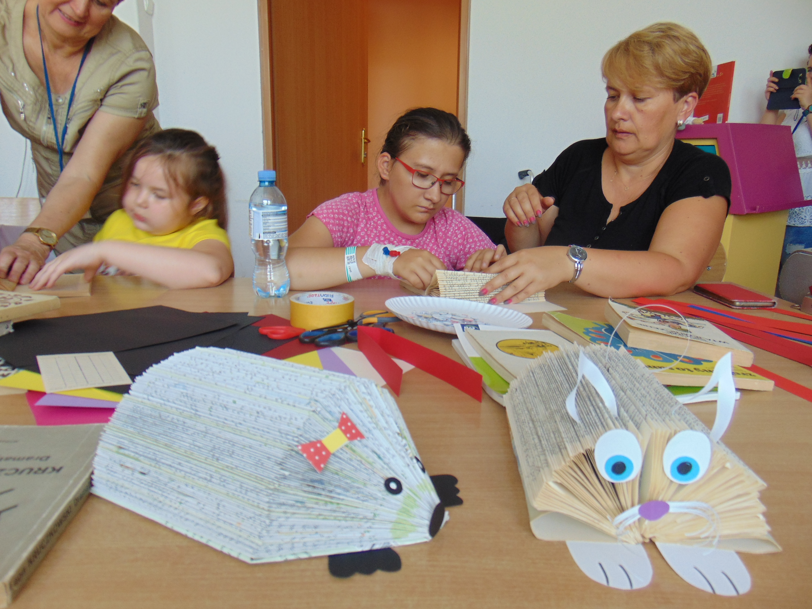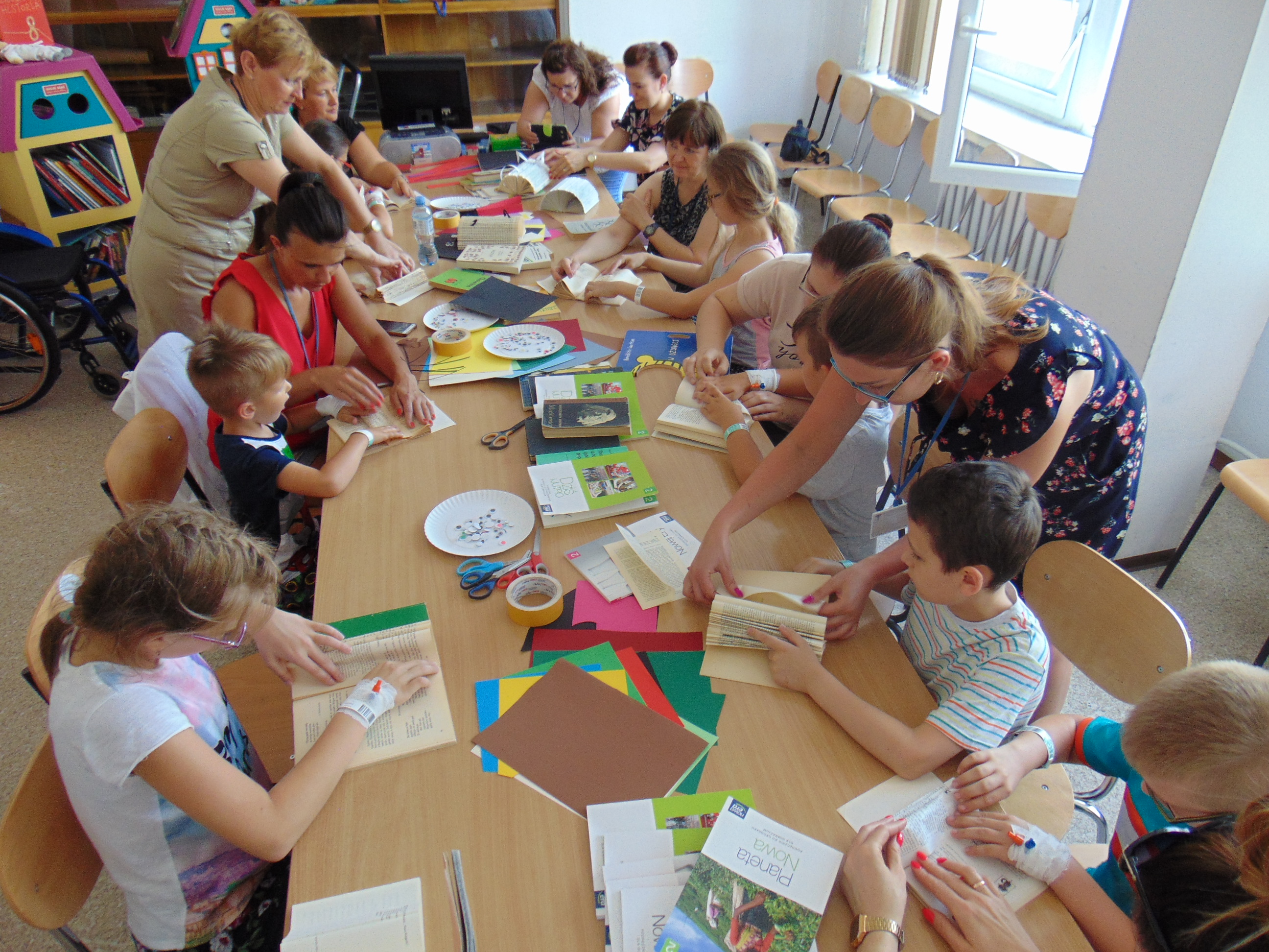 Okazuje się, że książki nie tylko mogą służyć do czytania, ale że można z nich wykonać także piękne, papierowe cuda. Na warsztatach plastycznych, zorganizowanych przez wychowawców zajęć pozalekcyjnych dzieci miały okazję poznać nową technikę plastyczną – book folding. Uczyliśmy się, jak wykonać ze starej książki papierowego jeża czy kota.