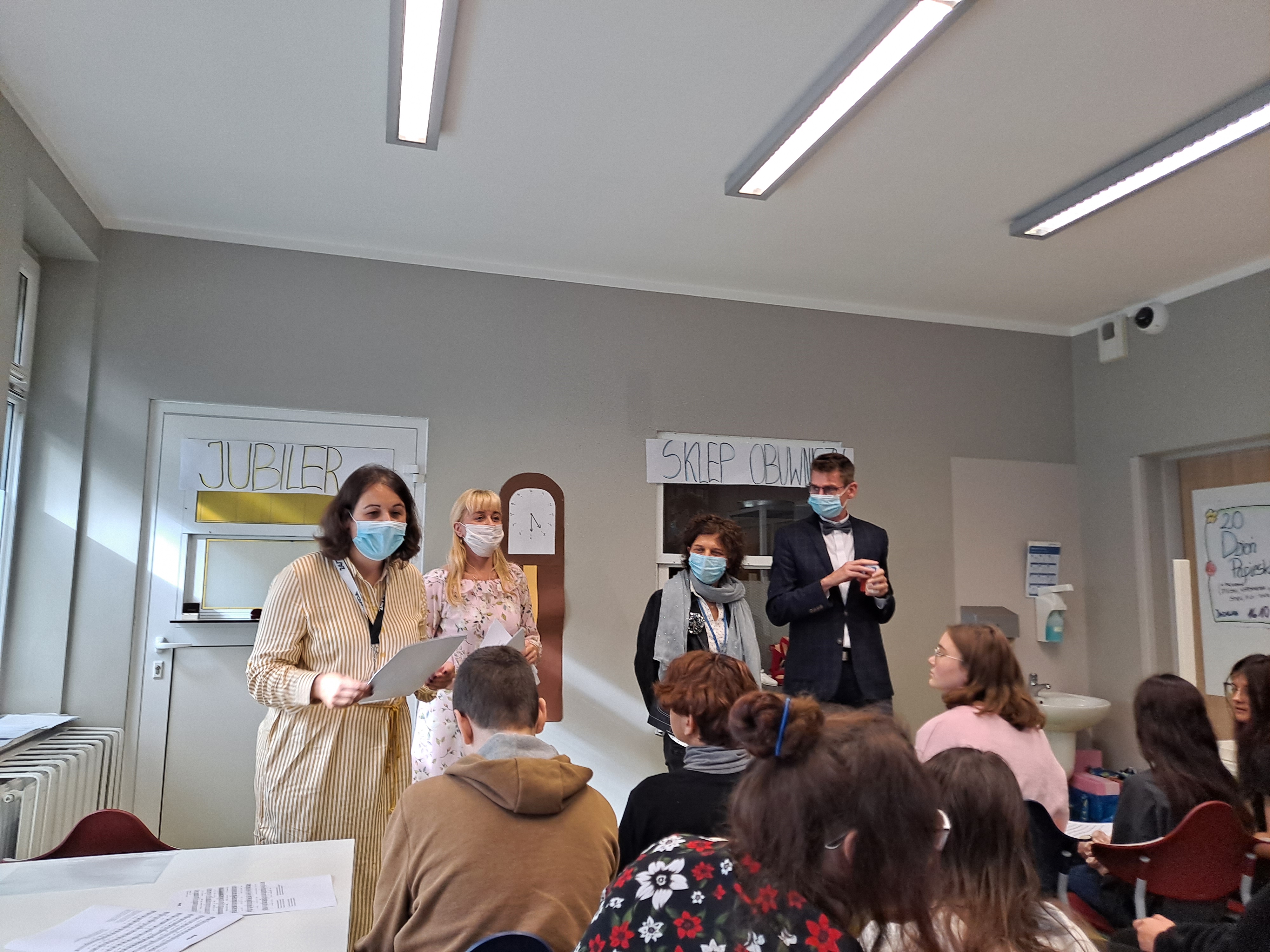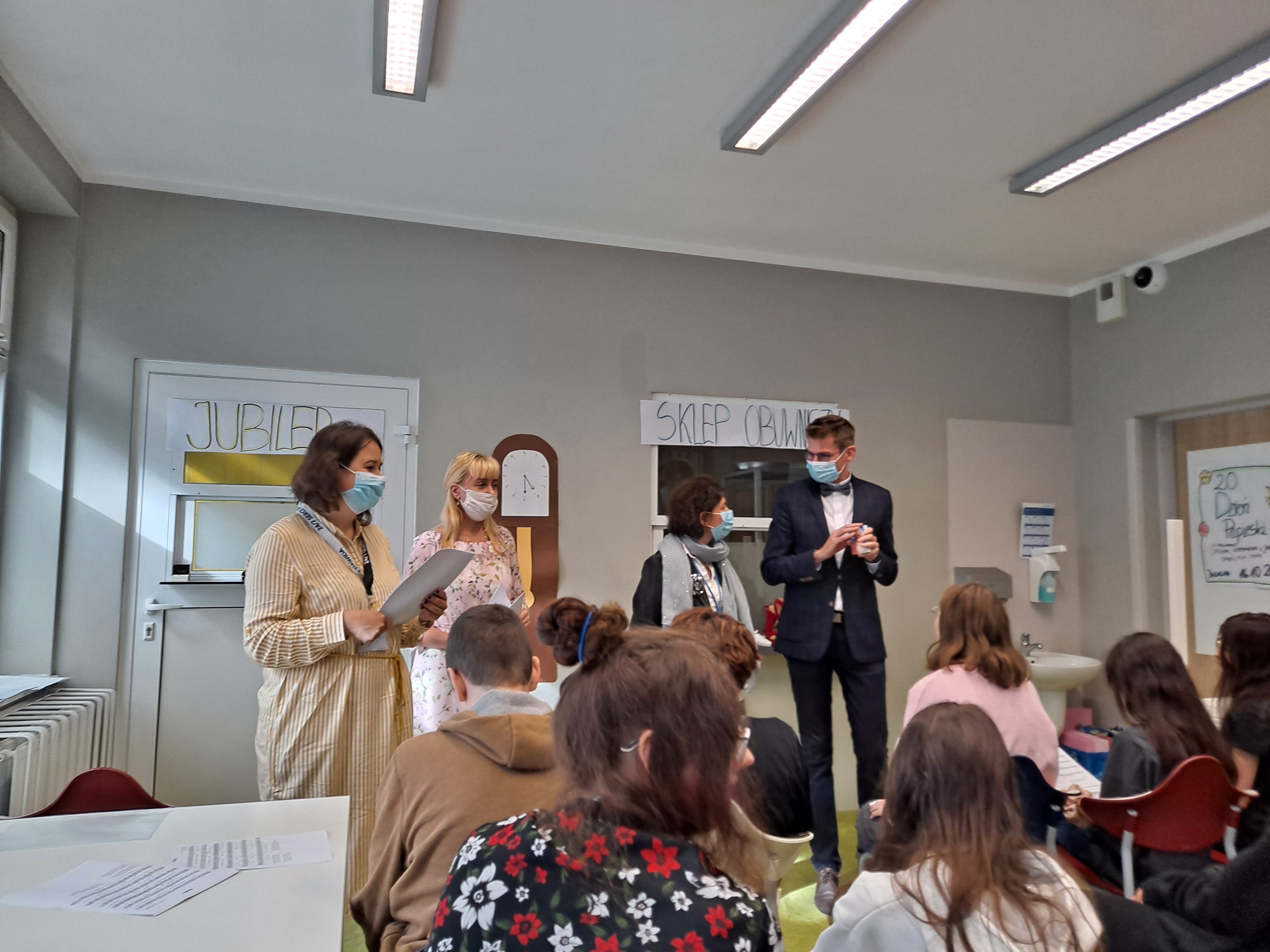 Z tej okazji odbył się uroczysty koncert w ramach projektu „Z kulturą mi do twarzy”. Uczniowie zapoznali się z utworami muzycznymi i literackimi związanymi z postacią Świętego. Oglądali też film o miejscach w Poznaniu, które Jan Paweł II odwiedzał podczas swoich pielgrzymek. Nauczyciele zaprezentowali również krótkie przedstawienie oparte na fragmentach dramatu Karola Wojtyły „Przed sklepem jubilera”. Przekazane treści i radosna atmosfera spotkania dostarczyły wszystkim obecnym wzruszeń i pobudziły do refleksji.