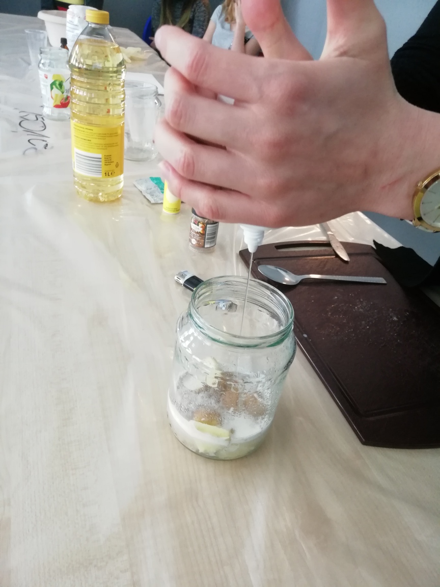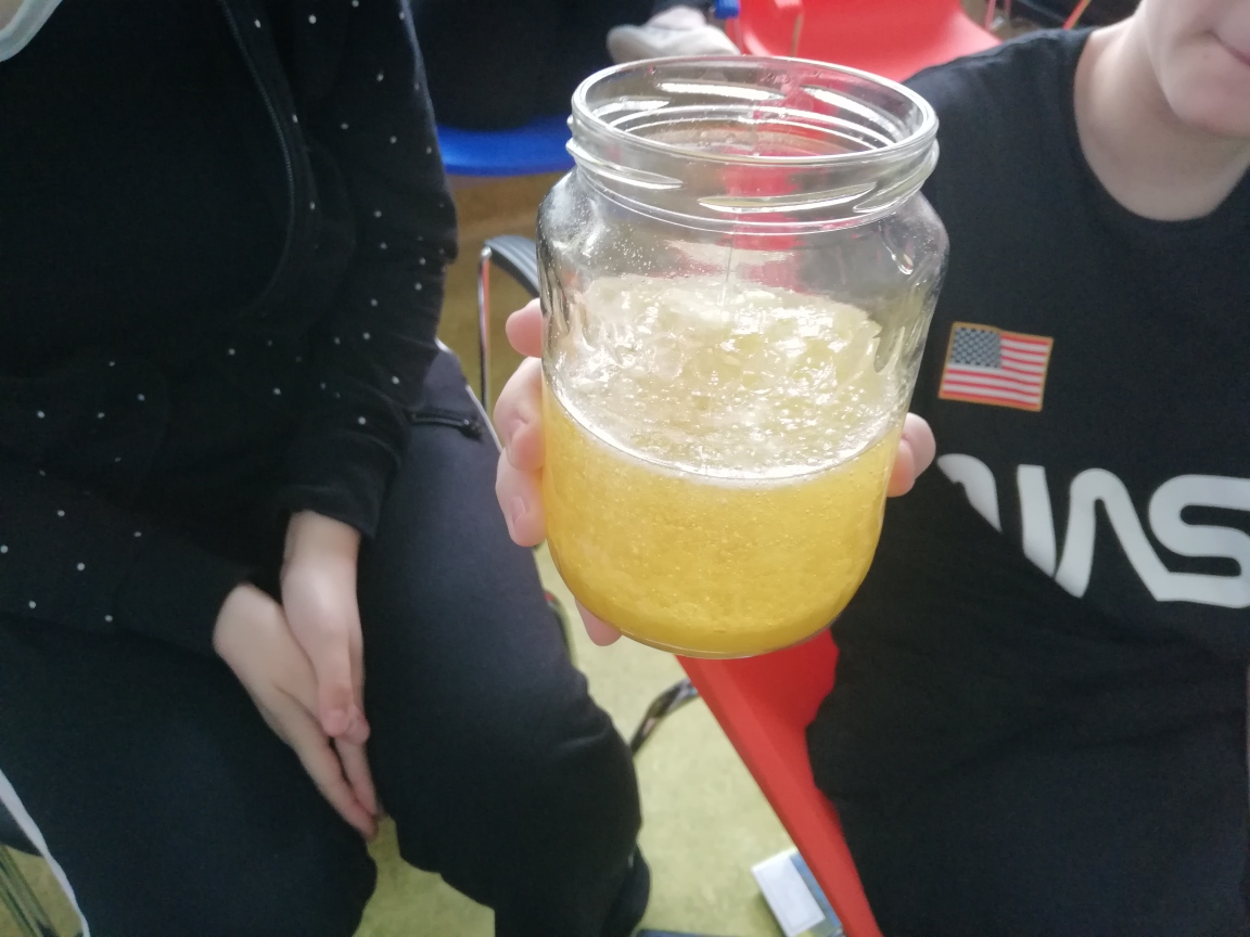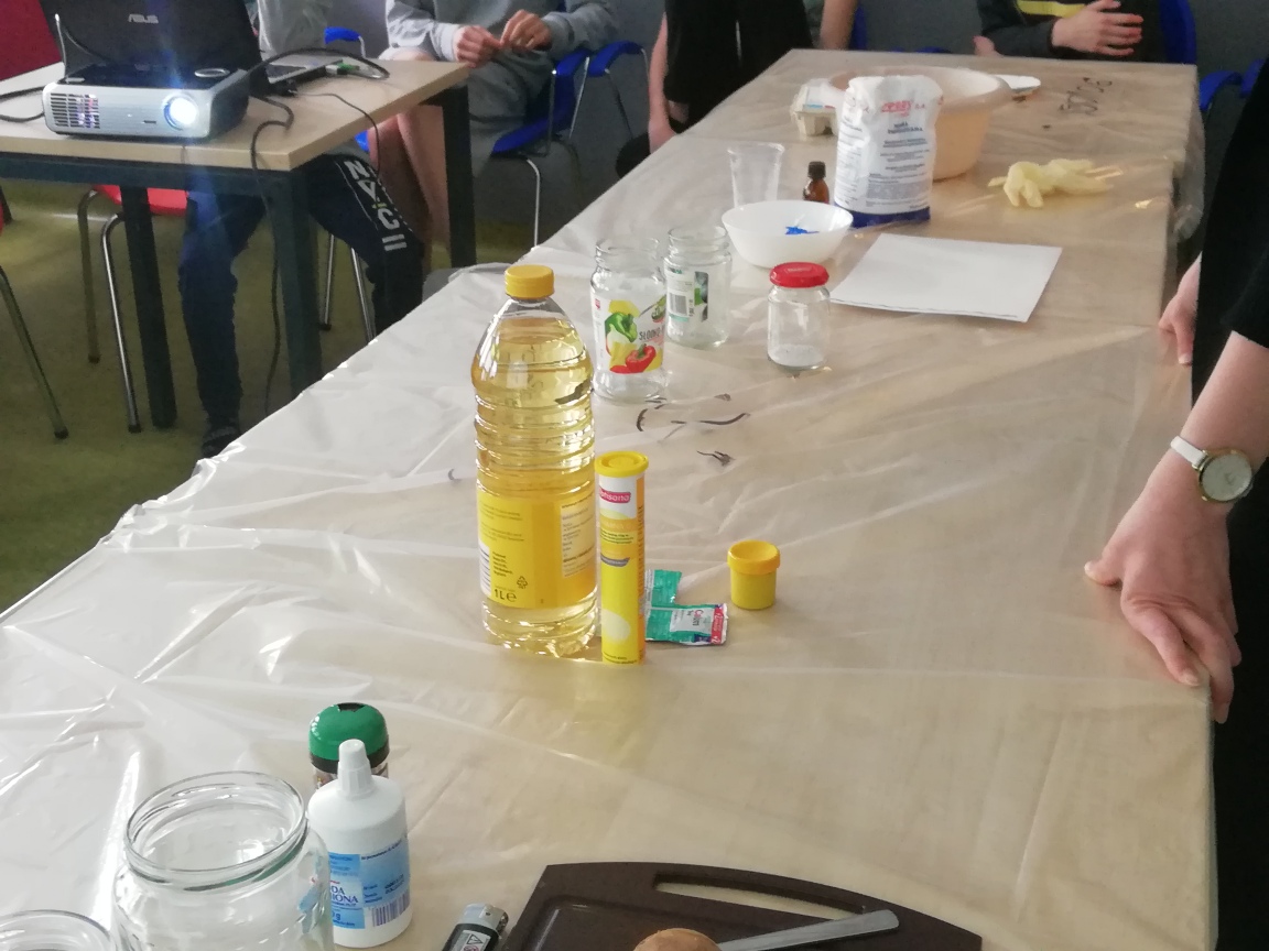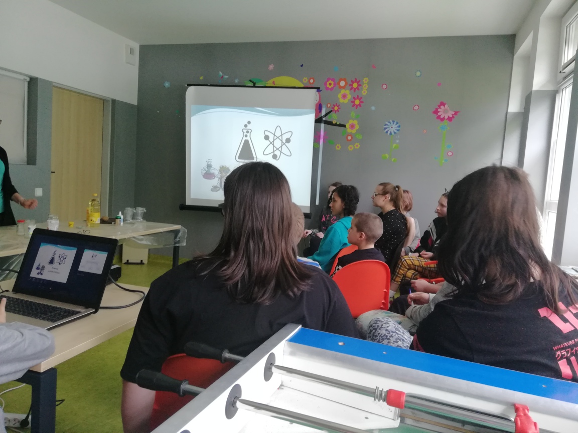 Okazało się, że wiele ciekawych doświadczeń chemicznych można wykonać wykorzystując podstawowe produkty domowego użytku, takie jak: ocet, jodyna, ziemniaki, jajka, mąka ziemniaczana czy woda utleniona. Zbadaliśmy właściwości białek, cukrów i tłuszczy. Nauczyliśmy się robić ciecz nienewtonowską i prawdziwy, smaczny kisiel. CHEMIA JEST SUPER!!! Dziękujemy p. Marii Bońkowskiej z Wydziału Chemii UAM.