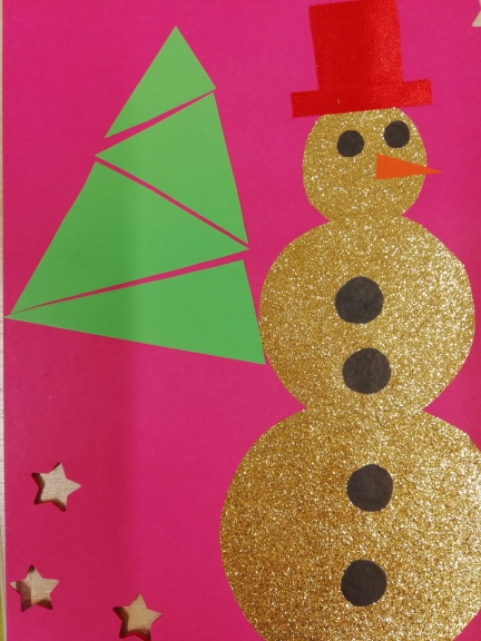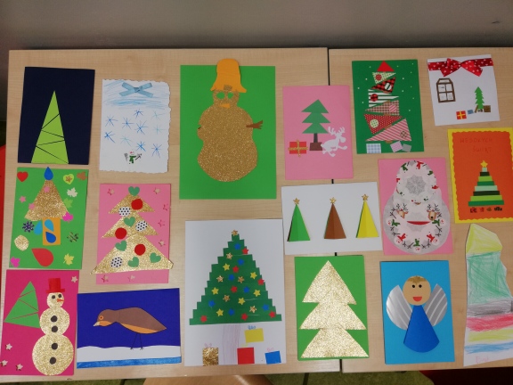Dzieci przygotowały kartki świąteczne z elementami geometrycznych figur. Przygotowywanie kartek wprowadziło wszystkich w atmosferę Świąt Bożego Narodzenia. Uczestnicy konkursu otrzymali drobne upominki.