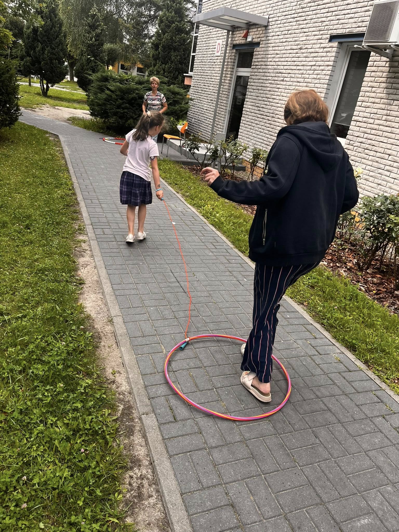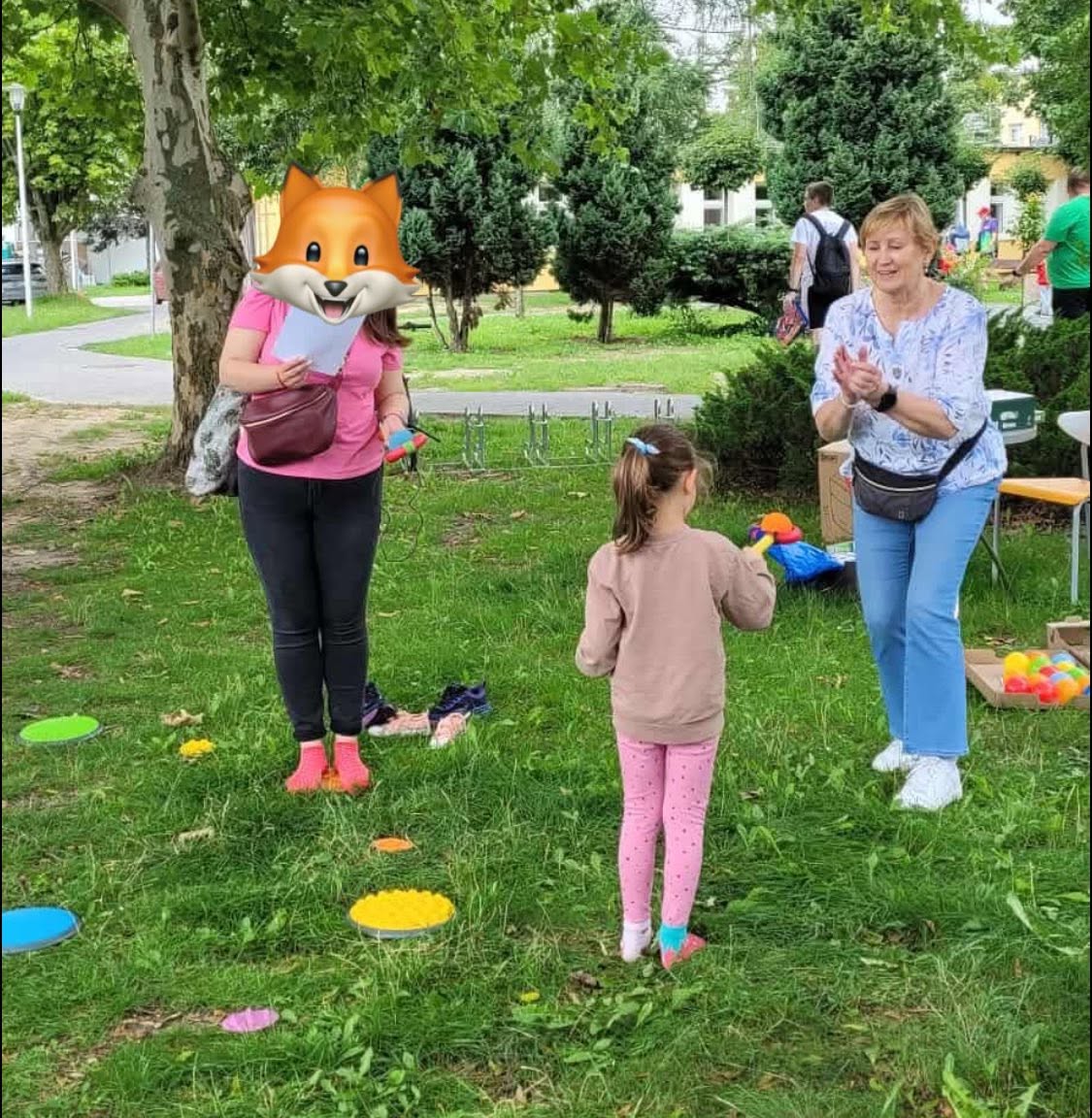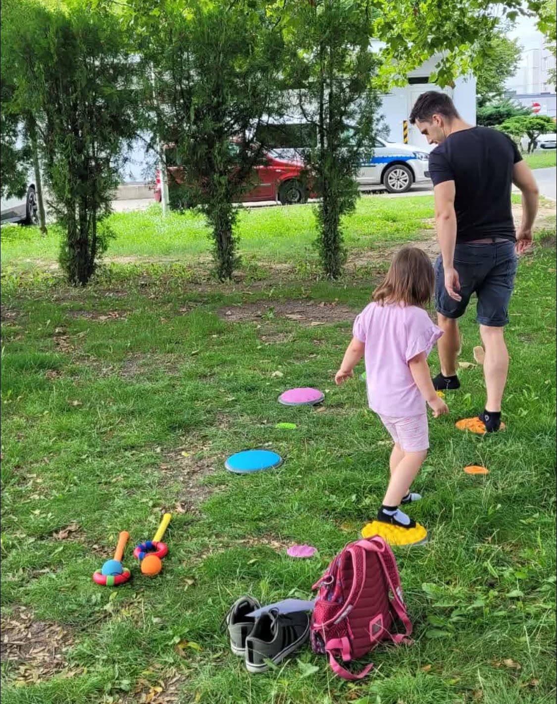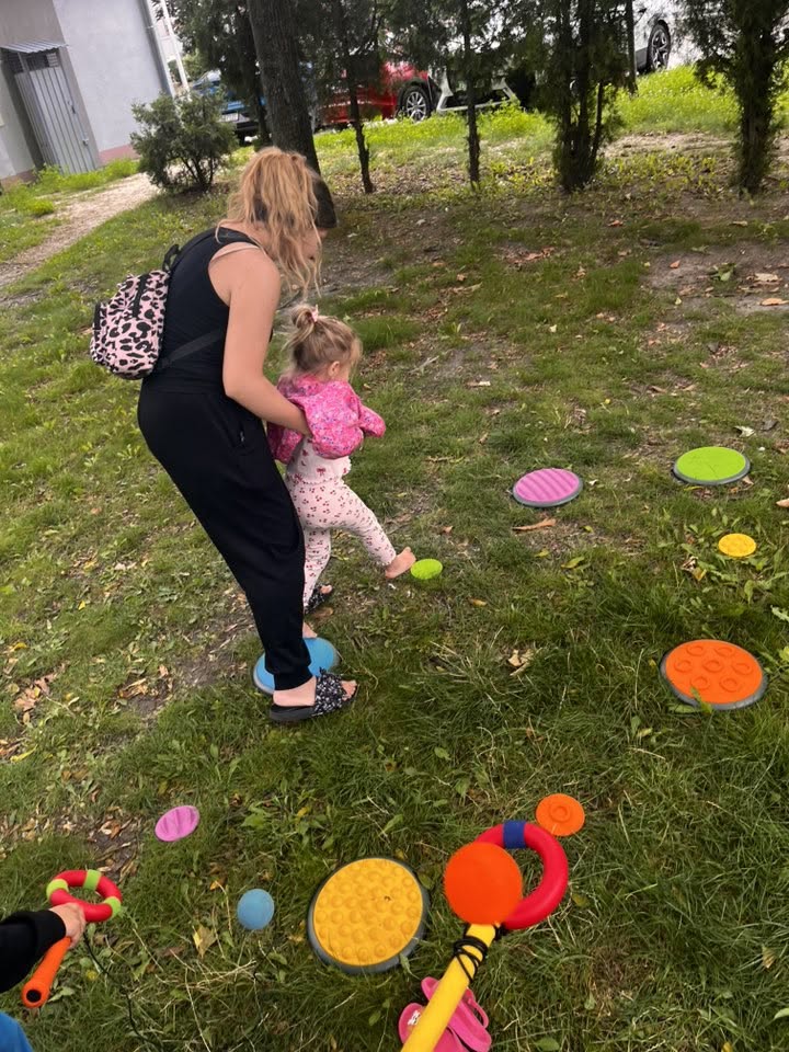 Dzieci i dorośli brali udział w różnych dyscyplinach sportowych takich jak np. kręgle, rzut kółkiem do celu czy spacer po krążkach sensorycznych.