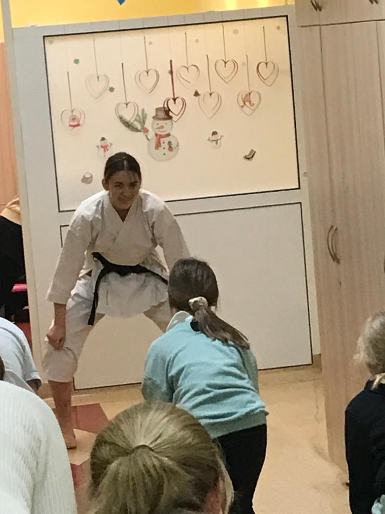 Pani Agnieszka Siadaczek (sensei) zaktywizowała dzieci podczas ogólnorozwojowych zajęć karate tradycyjnego sanchin. Nasi uczniowie poznali korzyści wynikające z trenowania karate, oraz uzyskali informacje o klubach PZKT, aby mogli kontynuować treningi ogólnorozwojowe po powrocie do domu. Zajęcia przebiegały w radosnej atmosferze przepełnionej sportowymi wyzwaniami.