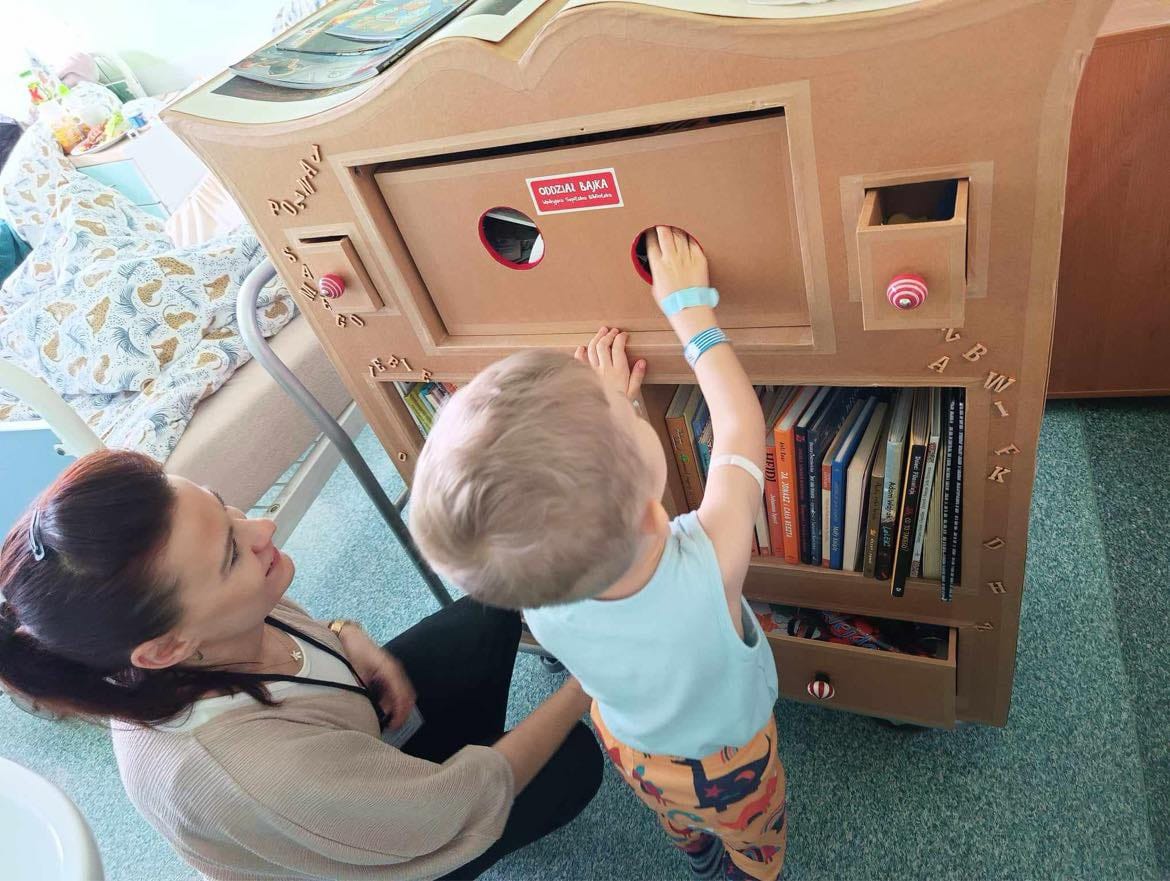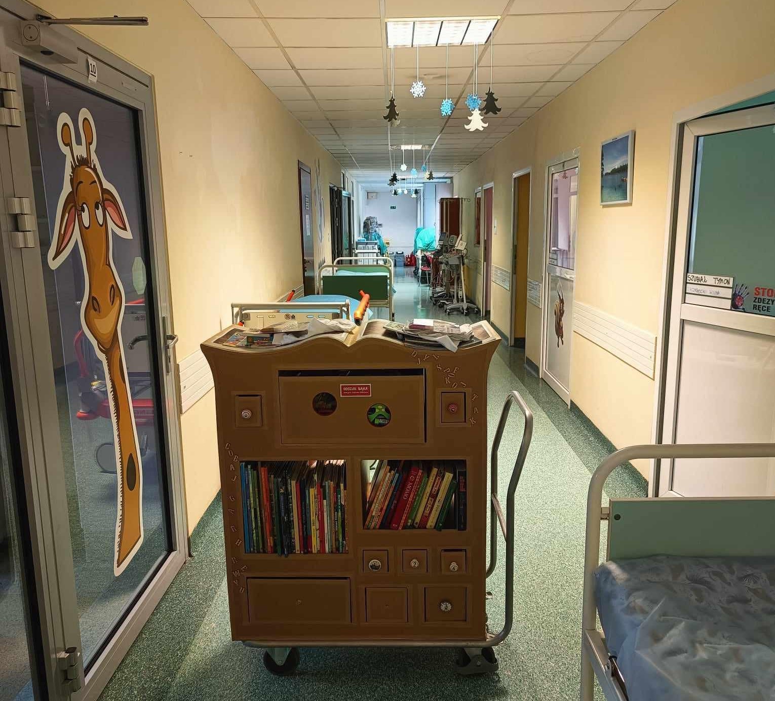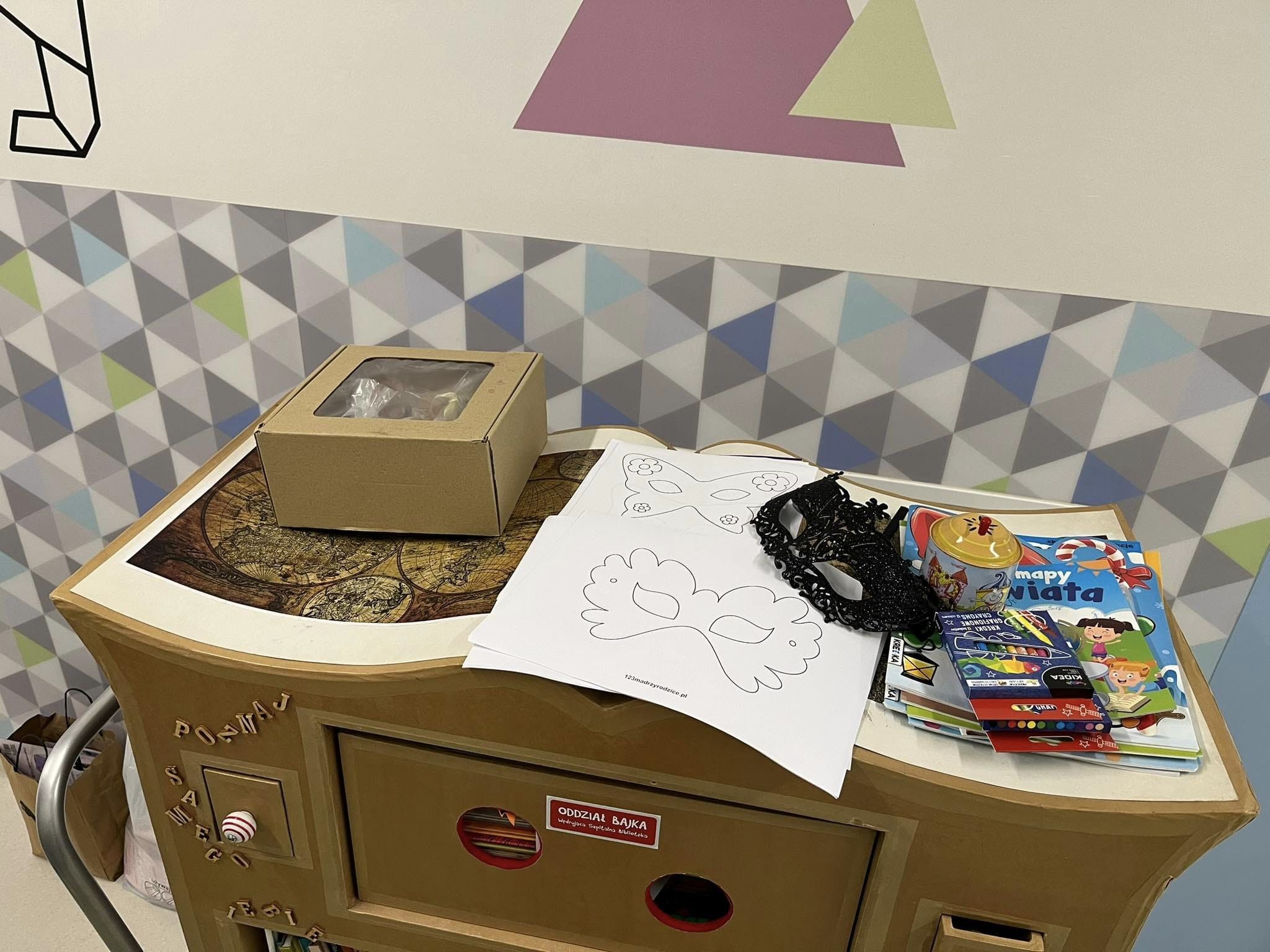 Promocja czytelnictwa powinna rozpoczynać się od zapoznawania dzieci z ciekawymi książkami. Oddział Bajka w karnawałowym nastroju odwiedził pacjentów różnych oddziałów, dając możliwość zapoznania się z bogatym księgozbiorem naszego Bajkowozu. Dzięki magicznym szufladkom, duzi i mali mogli wejść do niezwykłego świata zabawy. Zagadki na temat bajkowych bohaterów „schowały się” w książkach, a odnajdywanie ich i rozwiązywanie sprawiło dzieciom wiele radości. Rodzice i personel chętnie włączali się do wspólnej zabawy.