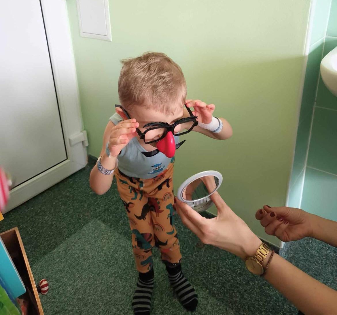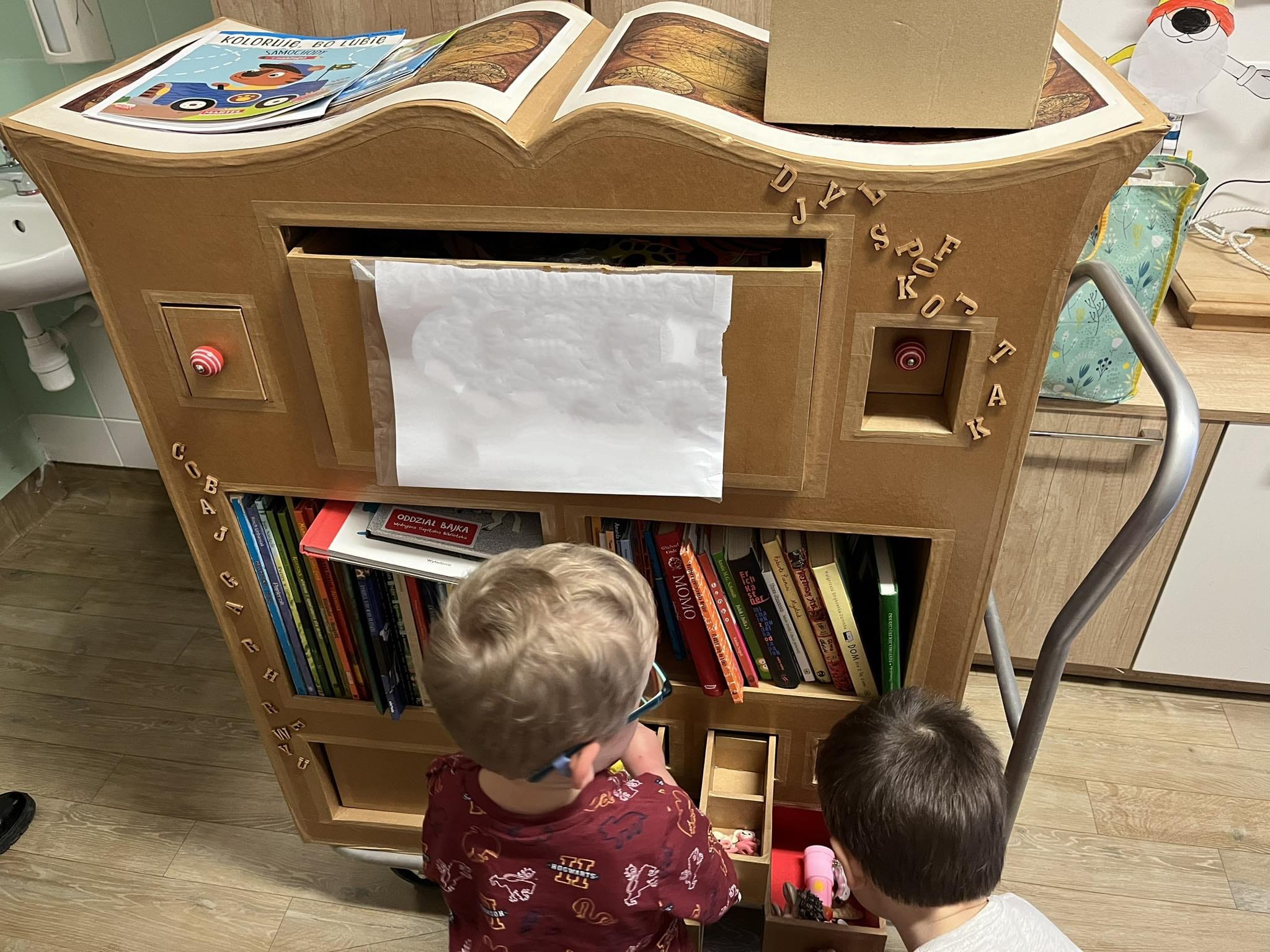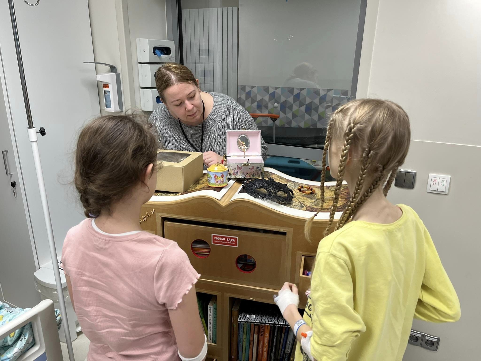 Promocja czytelnictwa powinna rozpoczynać się od zapoznawania dzieci z ciekawymi książkami. Oddział Bajka w karnawałowym nastroju odwiedził pacjentów różnych oddziałów, dając możliwość zapoznania się z bogatym księgozbiorem naszego Bajkowozu. Dzięki magicznym szufladkom, duzi i mali mogli wejść do niezwykłego świata zabawy. Zagadki na temat bajkowych bohaterów „schowały się” w książkach, a odnajdywanie ich i rozwiązywanie sprawiło dzieciom wiele radości. Rodzice i personel chętnie włączali się do wspólnej zabawy.