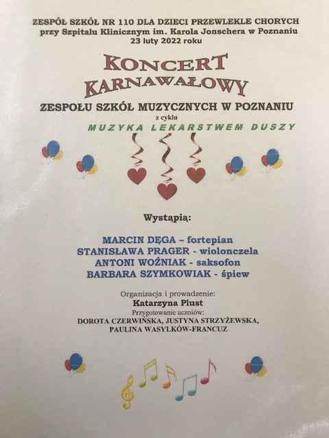 23 lutego odbył się w naszej szkole Koncert Karnawałowy z cyklu „Muzyka lekarstwem duszy”.