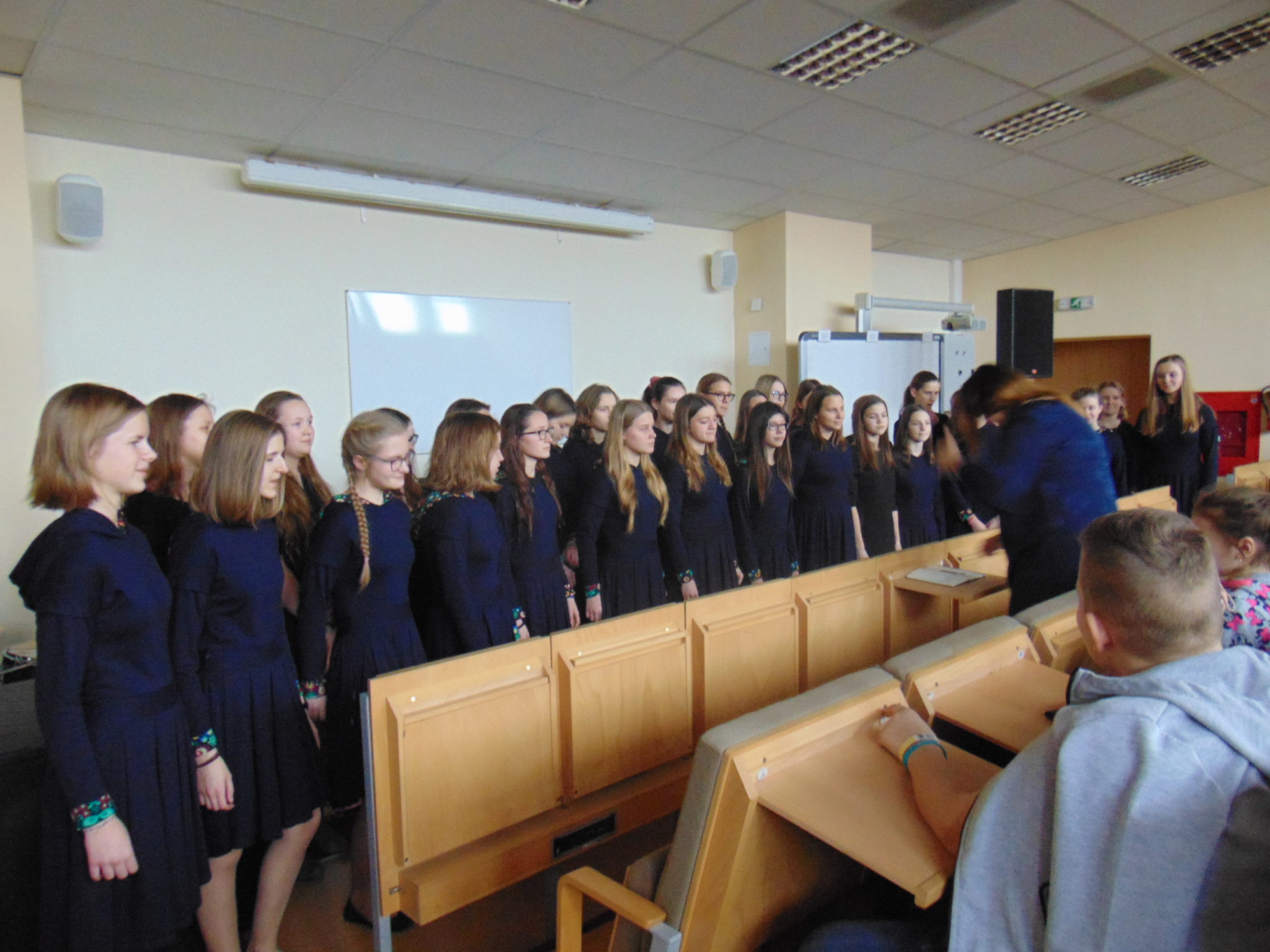 Wtorek 5 lutego upłynął nam pod znakiem muzyki. Na wyjątkowym koncercie gościliśmy Dziewczęcy Chór Gimnazjum Katedralnego w Poznaniu pod batutą pani Karoliny Piotrowskiej -Sobczak oraz Zespół muzyczny „Takietam”. Mogliśmy porównać różne gatunki muzyczne -muzykę chóralną wykonywaną a cappella z muzyką rozrywkową w wykonaniu wokalistki i instrumentów elektrycznych. Duża dawka pozytywnej, muzycznej energii umiliła nam wszystkim ten zimowy dzień.