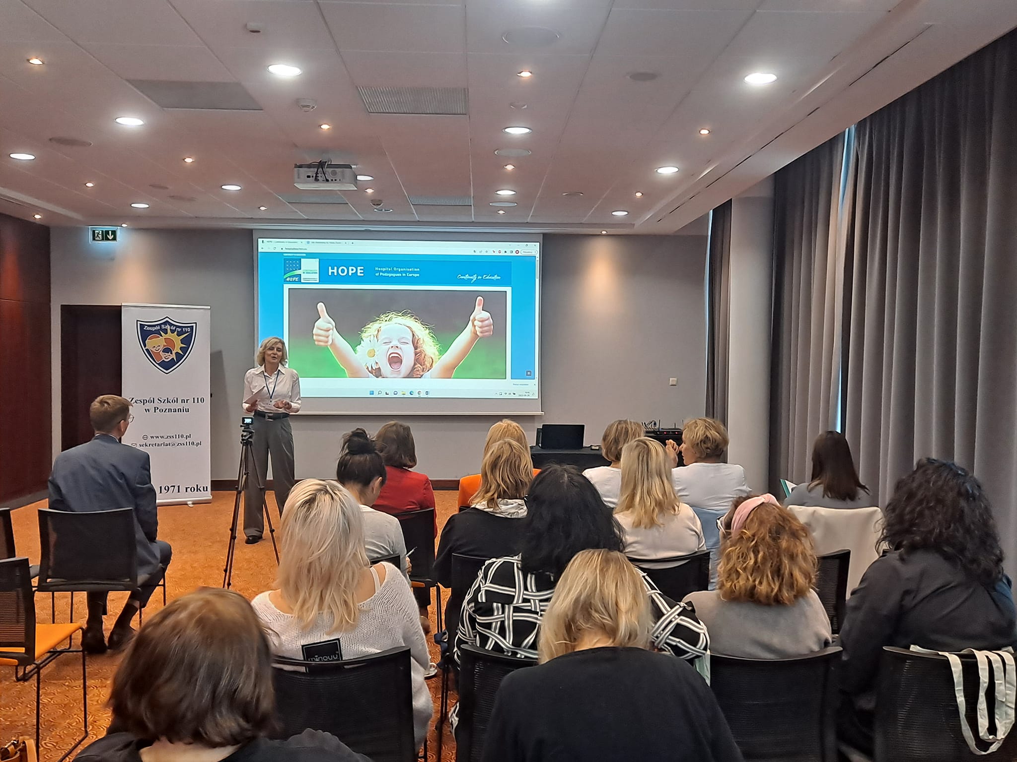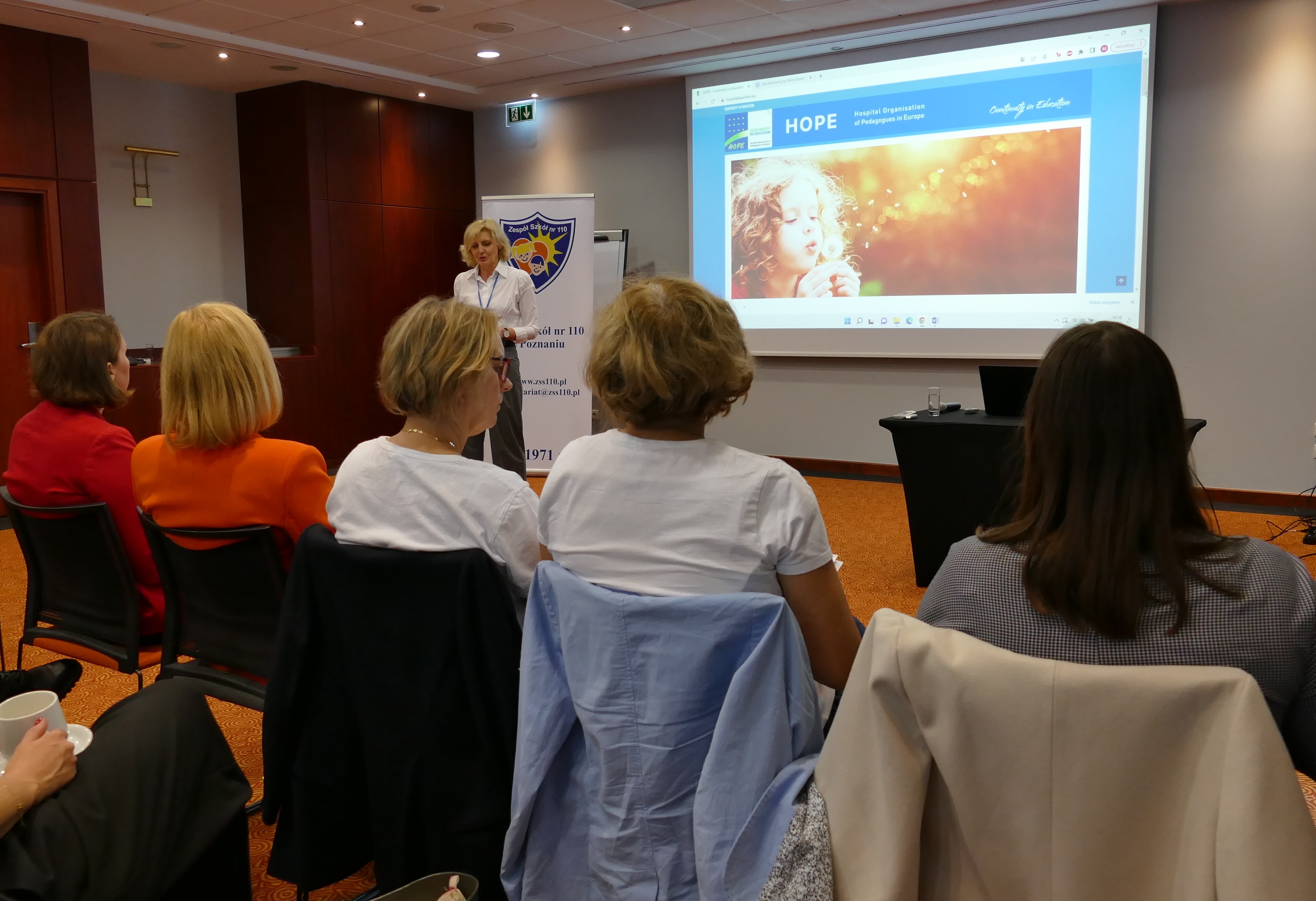 W dniu 30 września 2022 r. odbyła się uroczysta konferencja dla nauczycieli szkół szpitalnych w Polsce. Stanowiła ona podsumowanie naszego szkolnego projektu Erasmus + pod hasłem „Pedagog szpitalny – wrażliwość, optymizm, profesjonalizm”. Głównym celem spotkania było rozpowszechnienie wspomnianych działań oraz zachęcenie innych szkół do udziału w programie Erasmus +. Pani Dyrektor Beata Łukomska wystąpiła w roli ambasadora międzynarodowej organizacji HOPE, zrzeszającej nauczycieli szkół szpitalnych. Odwiedziło nas wielu znakomitych gości, z którymi dzieliliśmy się doświadczeniami z realizacji zadań projektowych. Szczególne wystąpienie miały nauczycielki z Instytutu „Pomnik – Centrum Zdrowia Dziecka” w Warszawie. Szczegółowo zaprezentowały swój projekt: „Z Erasmus + uczymy się, aby lepiej uczyć”. Wspólne dyskusje stały się inspiracją do tworzenia nowych inicjatyw. Dużym wsparciem dla nauczycieli było kompendium wiedzy dotyczące etapów konstruowania projektu oraz formalności z tym związanych. Konferencję zwieńczył akcent kulturalny. Była to gawęda literacka o czytaniu z dziećmi i dla dzieci, w mistrzowskim wykonaniu wykładowczyni i trenerki Pani Małgorzaty Swędrowskiej. Spotkanie przebiegło w fantastycznej atmosferze i uświadomiło nam potrzebę nieustannego rozwoju kompetencji zawodowych, wzajemnego wsparcia i wymiany doświadczeń. Dziękujemy wszystkim uczestnikom i osobom zaangażowanym w organizację konferencji.