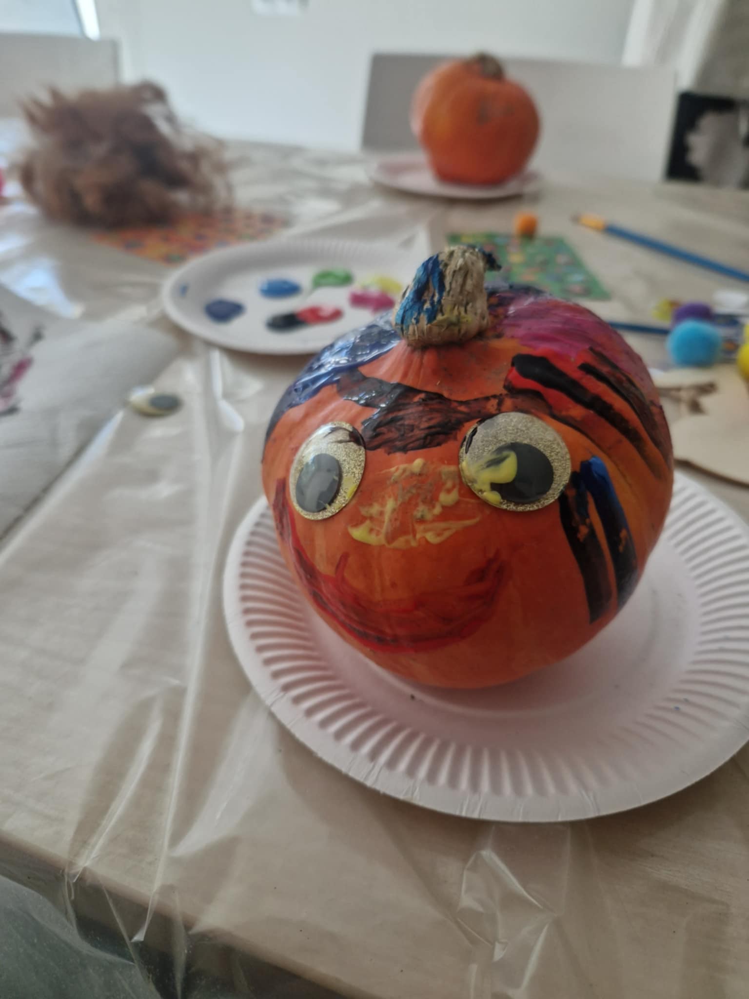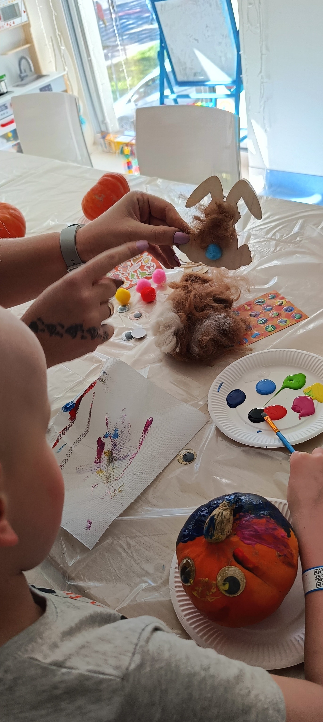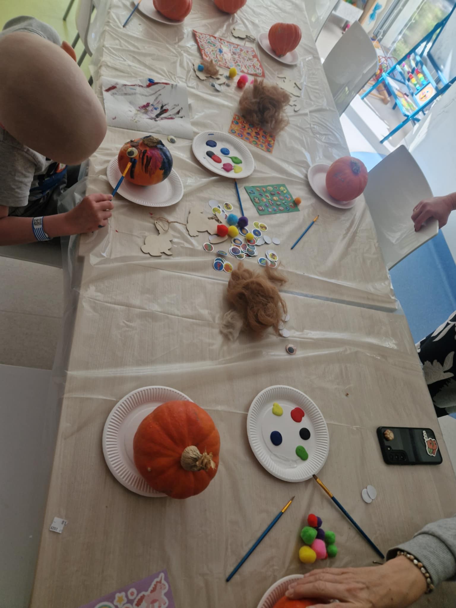 Po spotkaniu z królikami odbyły się fantastyczne warsztaty z ozdabiania dyni. Uczestnicy mieli okazję puścić wodze fantazji i stworzyć niesamowite, kreatywne wzory. Atmosfera była pełna radości, śmiechu i artystycznych inspiracji.