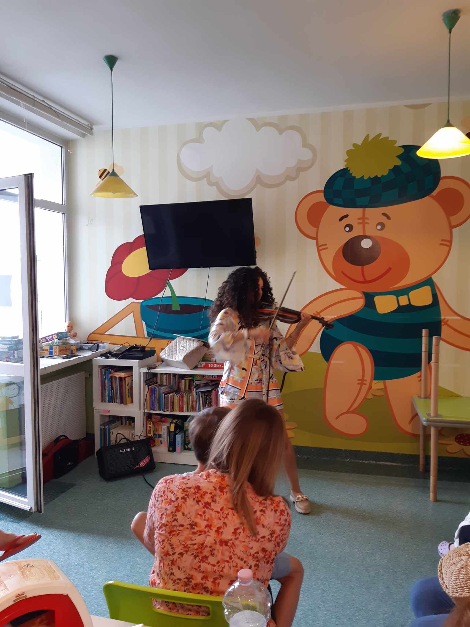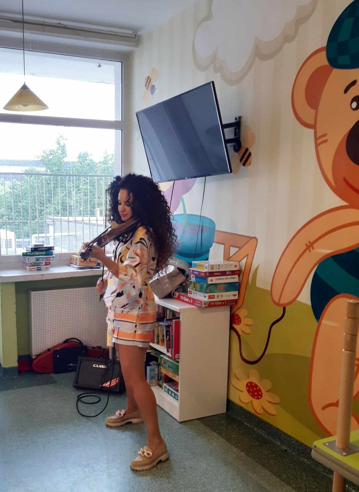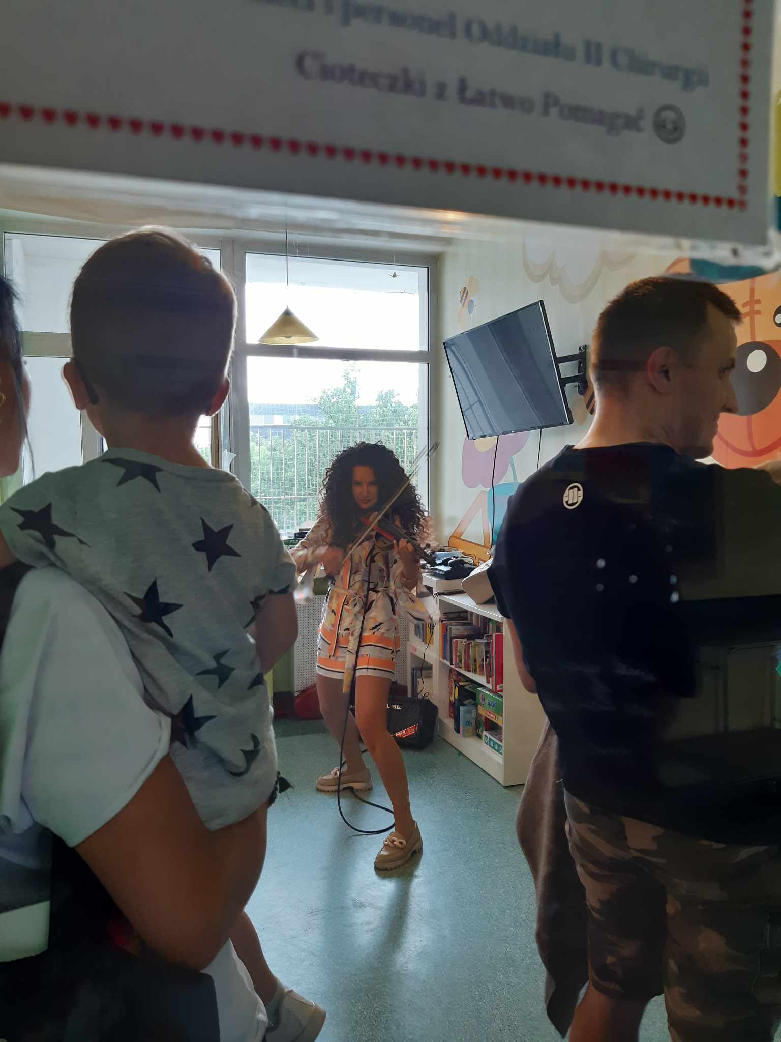 Pani Karolina zachwyciła nas swoim występem i porywającym brzmieniem elektrycznych skrzypiec. Występ dodał wszystkim energii, uśmiechu i odczarował deszczową pogodę.
