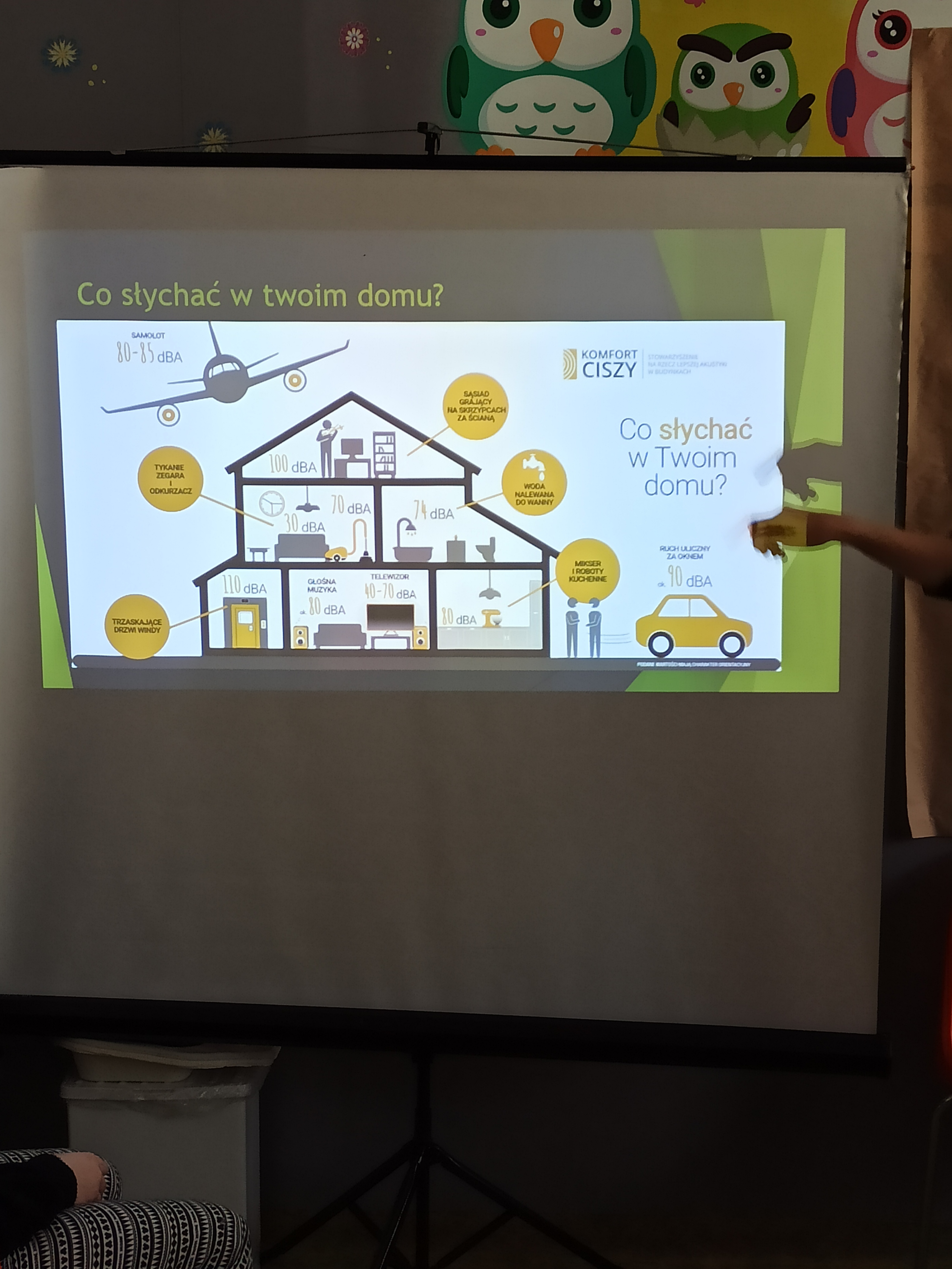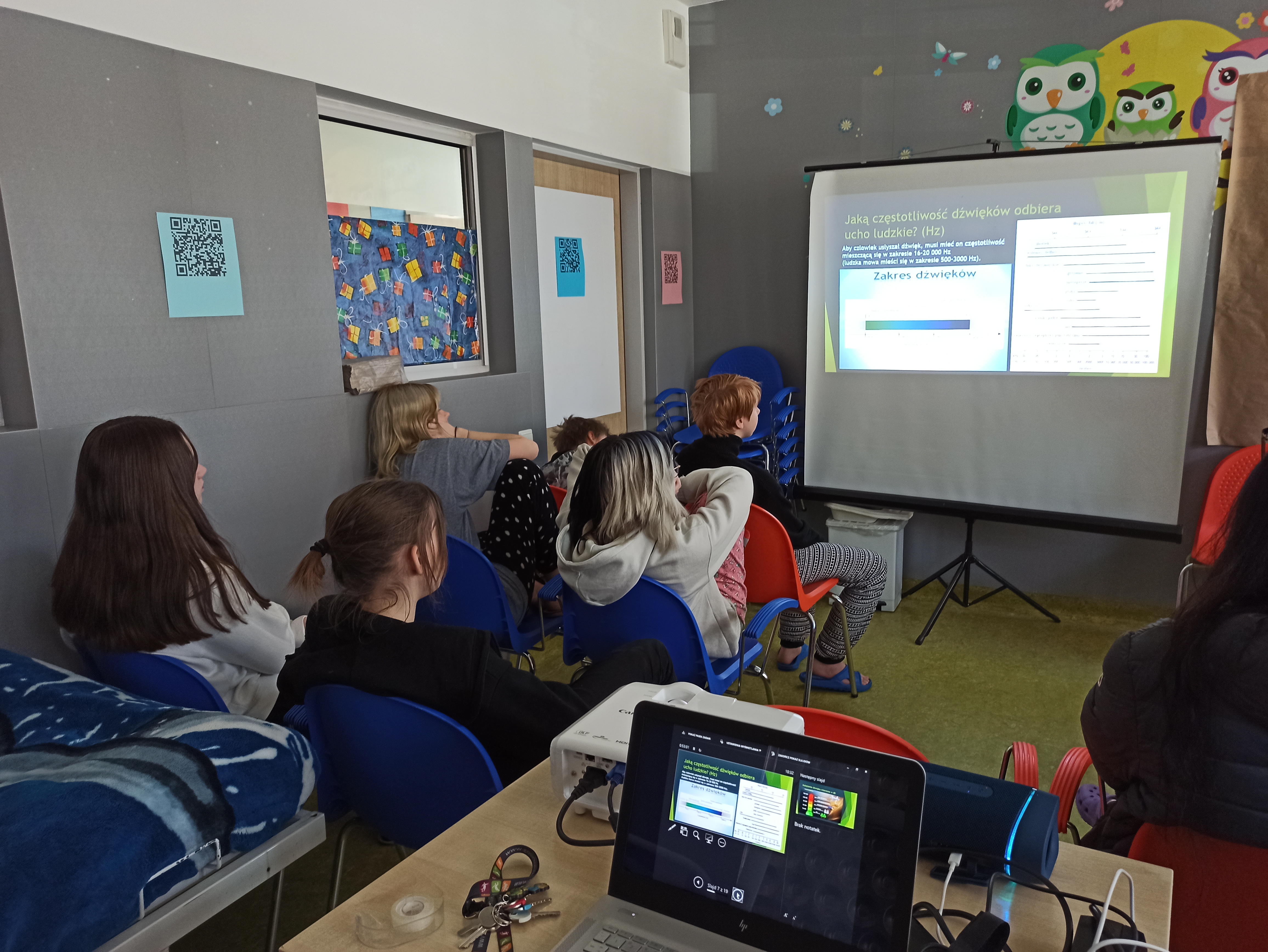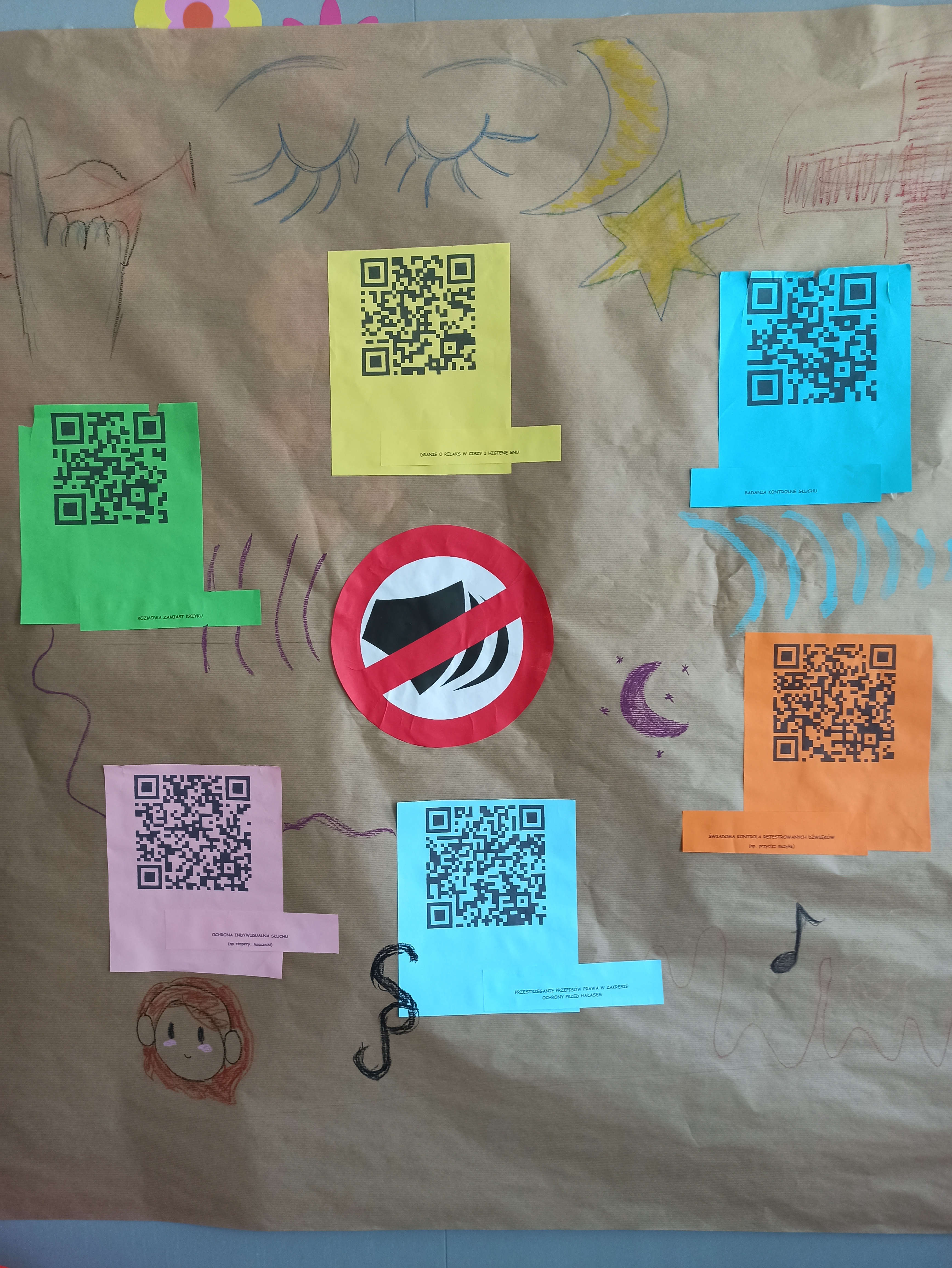 Uświadomiliśmy sobie powszechną obecność hałasu w naszym otoczeniu oraz jego negatywny wpływ na zdrowie fizyczne, psychiczne i społeczne. Dokonaliśmy pomiarów natężenia dźwięku i szyfrowaliśmy QR kodami zasady walki z hałasem.