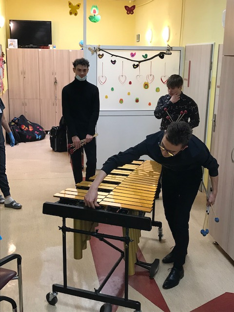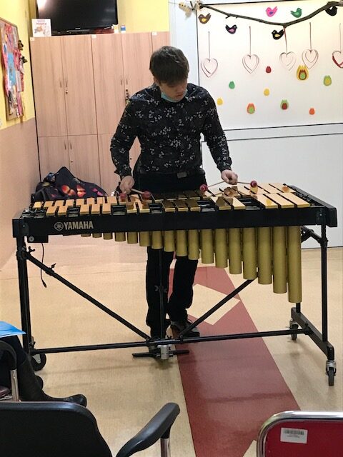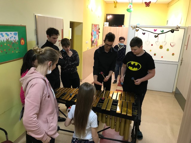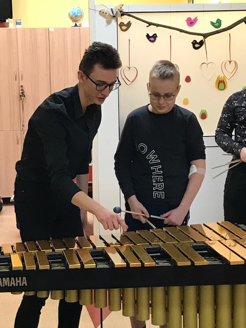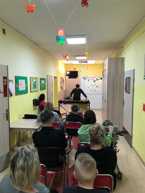 Dzieci wraz z rodzicami poznały perkusyjny instrument muzyczny zwany wibrafonem. Podobny do ksylofonu, w trakcie wybrzmiewania muzycznych utworów zestaw rur pełniących rolę rezonatorów tworzył bajeczne dźwięki. Dzieci ćwiczyły tworzenie wibrujących dźwięków uderzając pałeczkami w złote płytki.