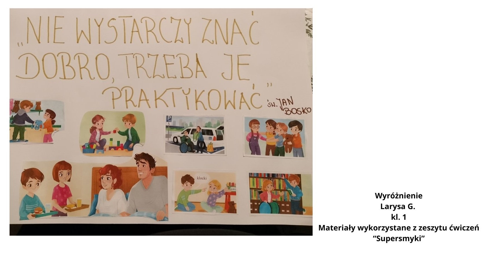 W ramach międzyszkolnego projektu edukacyjnego pt. „Św. Jan Bosko – Ojciec i Nauczyciel młodzieży” zorganizowano, przy współpracy ze Szkołą Specjalną nr 108 w Poznaniu, międzyszkolny konkurs plastyczny pt. „Nie wystarczy znać dobro, trzeba je praktykować” – Św. Jan Bosko. Serdecznie dziękujemy za udział w konkursie. Laureatom serdecznie gratulujemy.