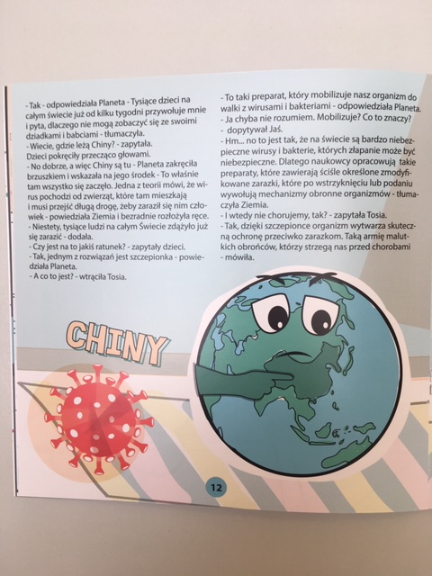 Mali bohaterowie nie do końca rozumieli, co się teraz dzieje. Rodzice zapewniali ich jednak, że epidemia szybko minie i że już wkrótce zobaczą się z ukochanym Dzidkiem. Było jednak inaczej. Mama wytłumaczyła dzieciom, że na całym świecie krąży wirus, który jest niebezpieczny szczególnie dla starszych ludzi. Jaś i Tosia dowiedzieli się co to jest koronawirus, że jego budowa przypomina koronę Słońca. Zapraszamy do lektury…
