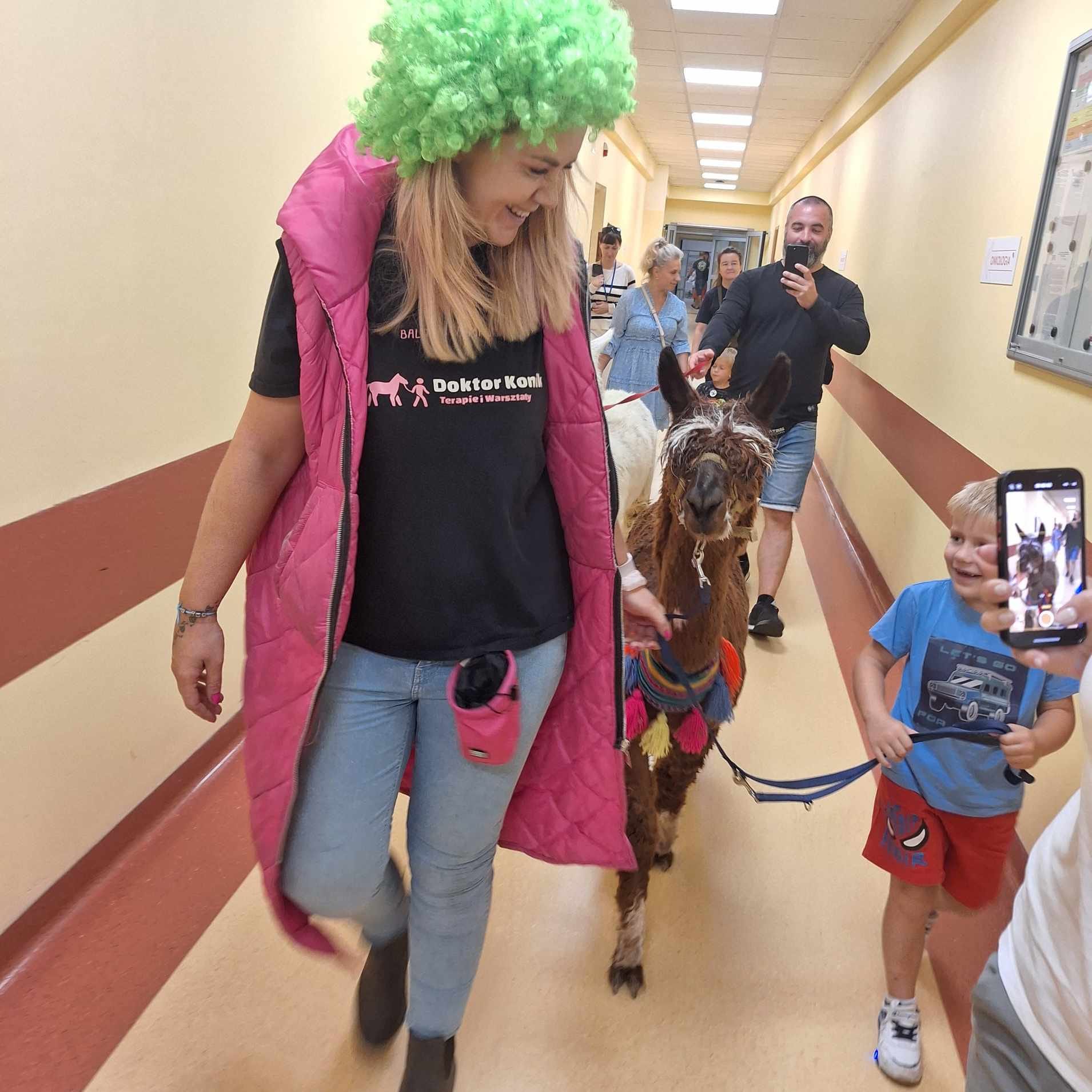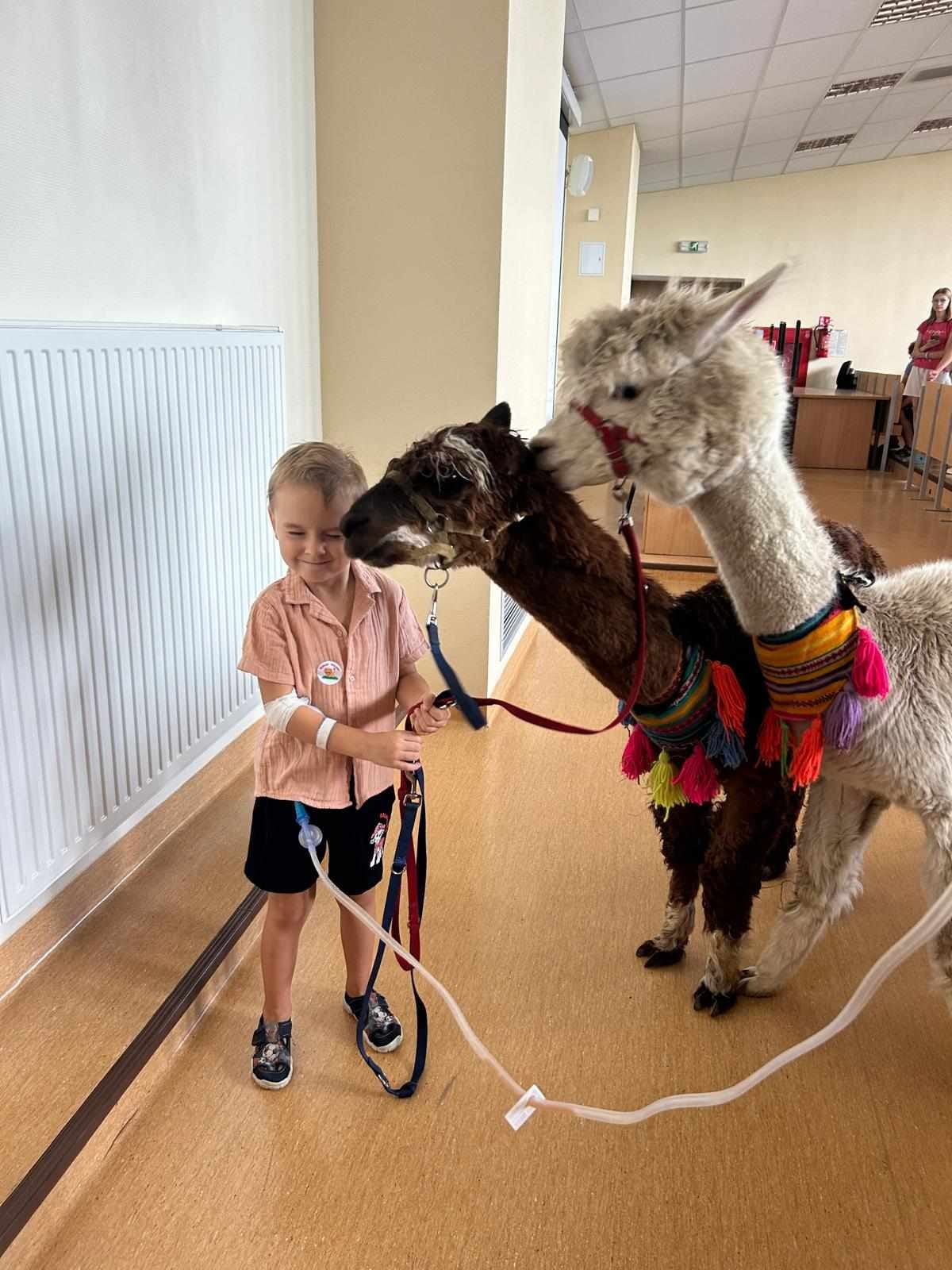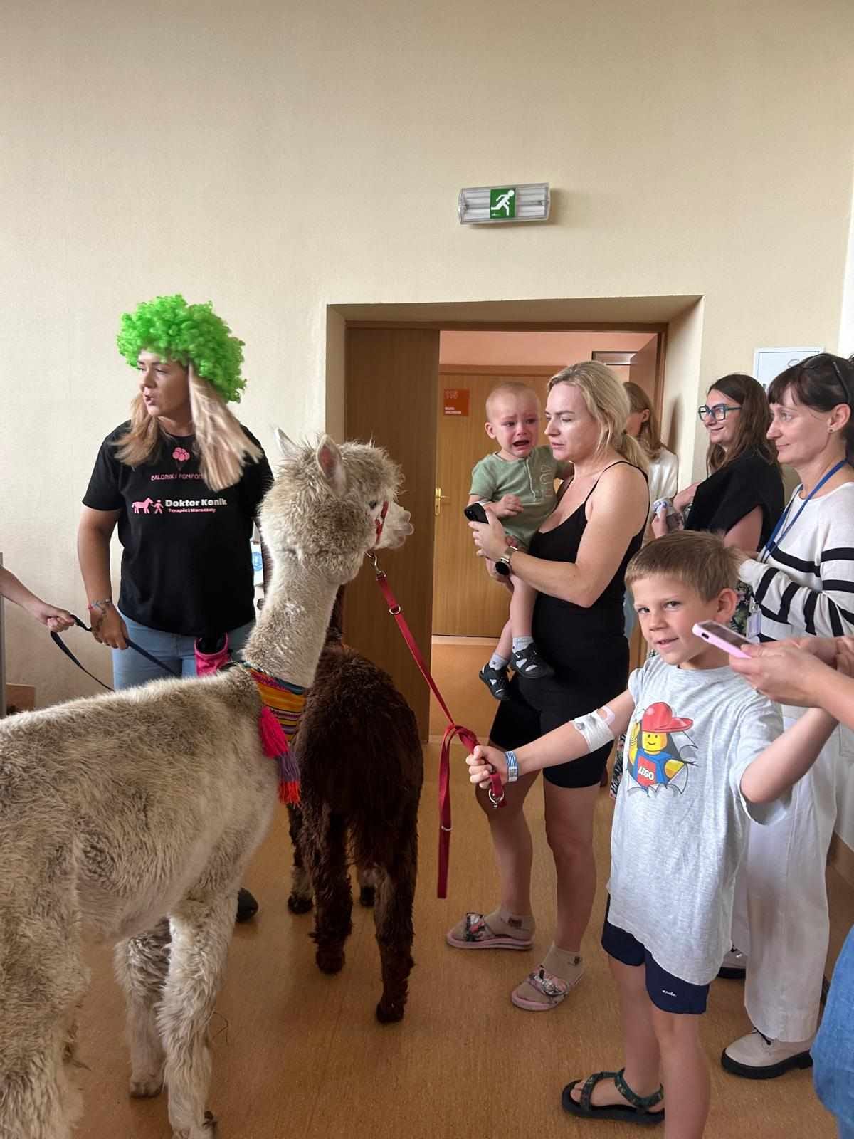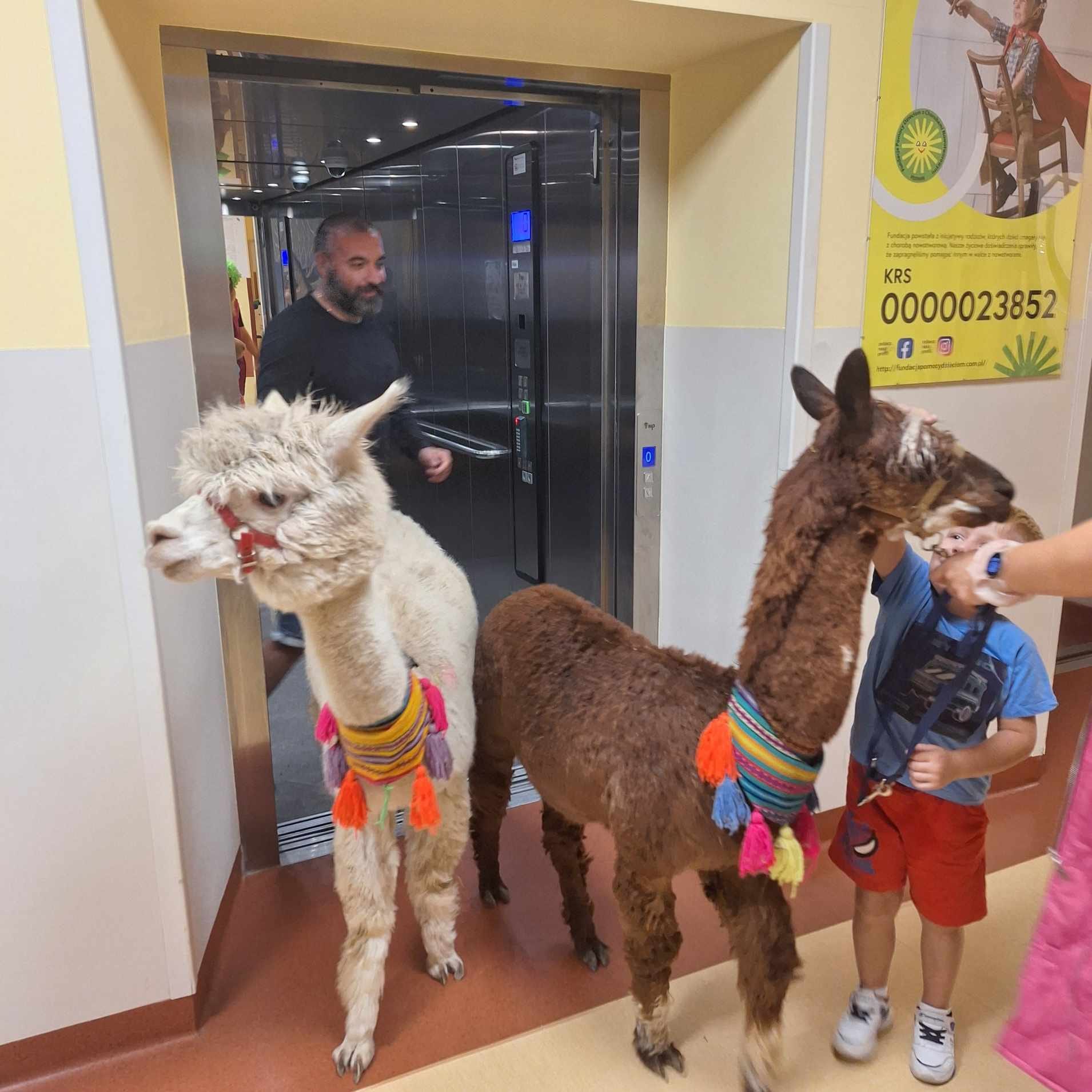 Radość dzieci ze spotkania ze zwierzętami jak zawsze była ogromna, a zaskoczenie na ich twarzach, gdy z windy w szpitalu wychodzi alpaka – bezcenne! Dziękujemy!