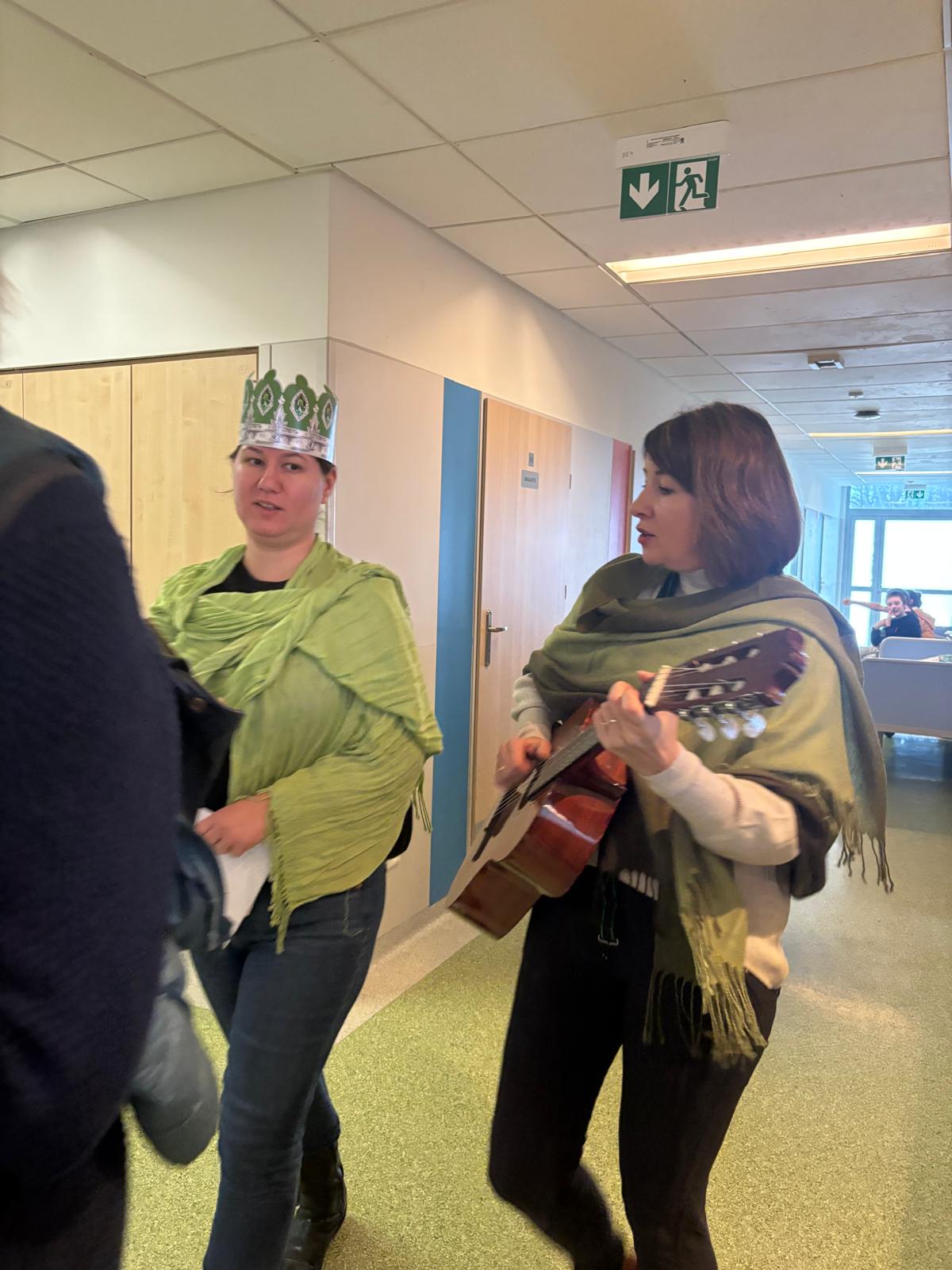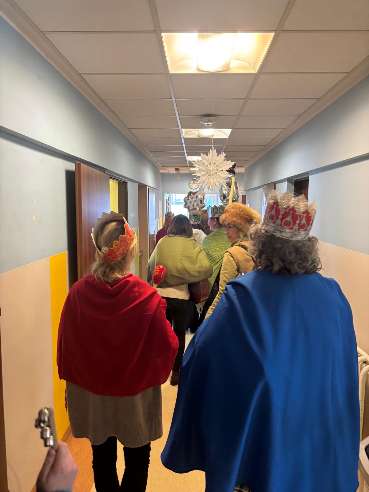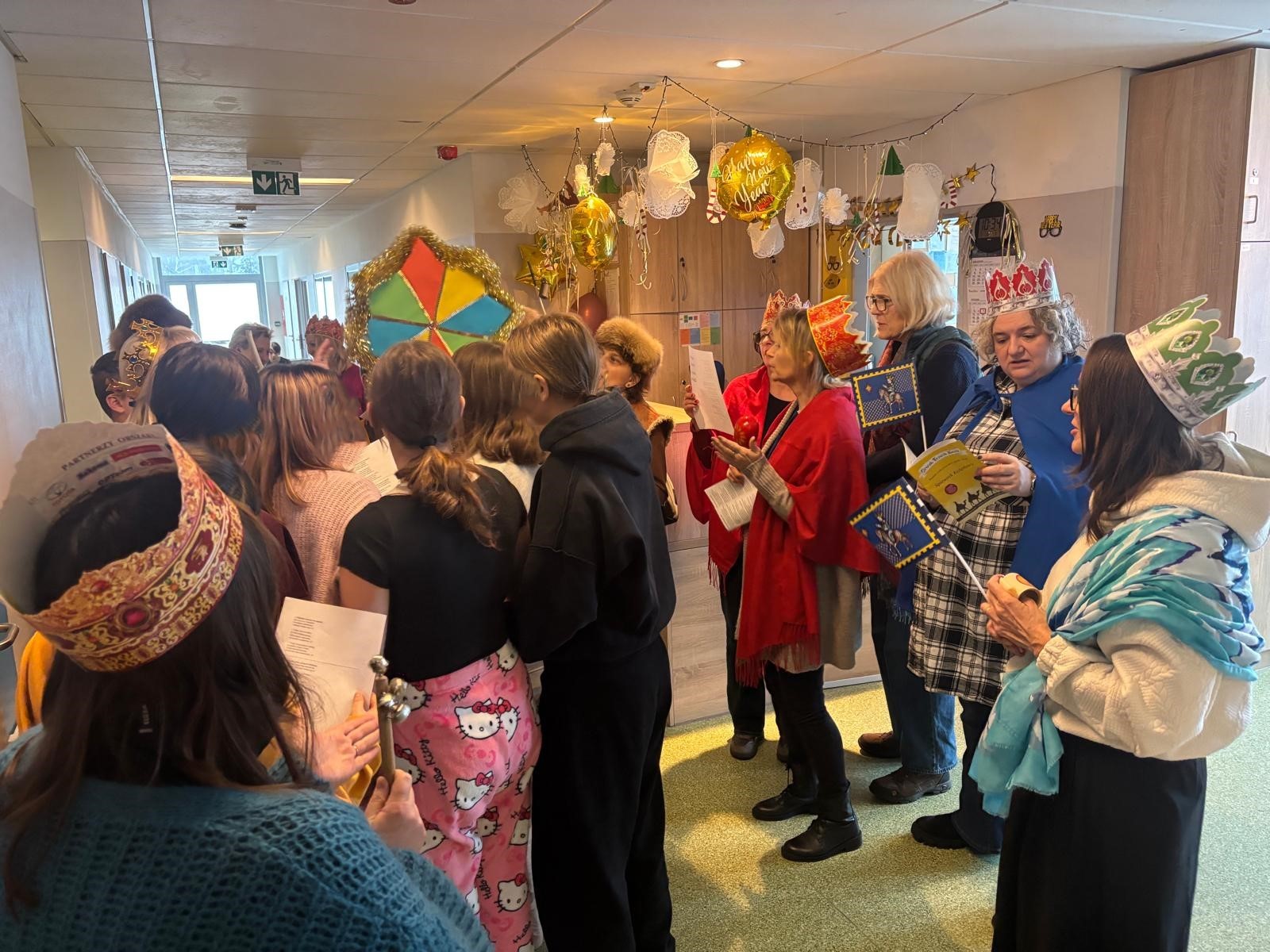 Barwny korowód przyjmowany był przez dzieci, rodziców oraz personel medyczny z entuzjazmem i radością. Dzieci śpiewały swoje ulubione kolędy, nawet w języku ukraińskim. Tym razem królom towarzyszyli pasterze, którzy rozdawali dzieciom korony, naklejki i okazjonalne chorągiewki, dzięki którym włączyliśmy się w ogólnopolskie obchody Święta Trzech Króli. Do zobaczenia za rok!