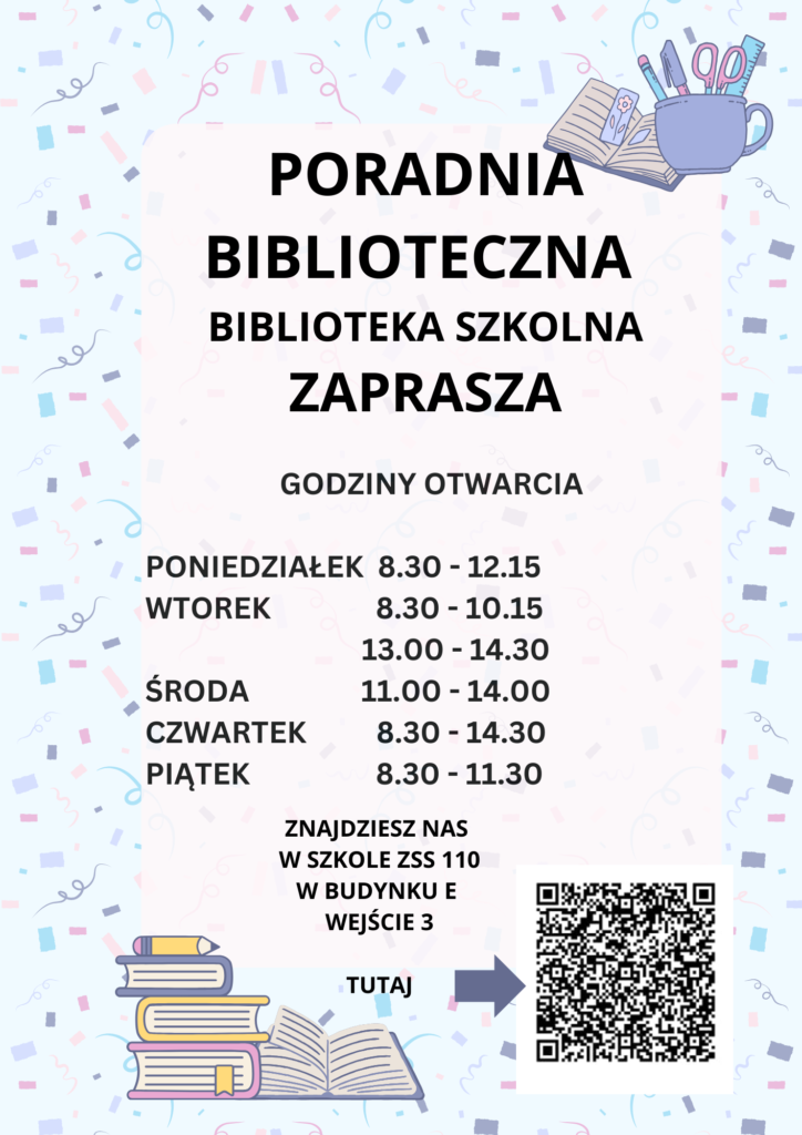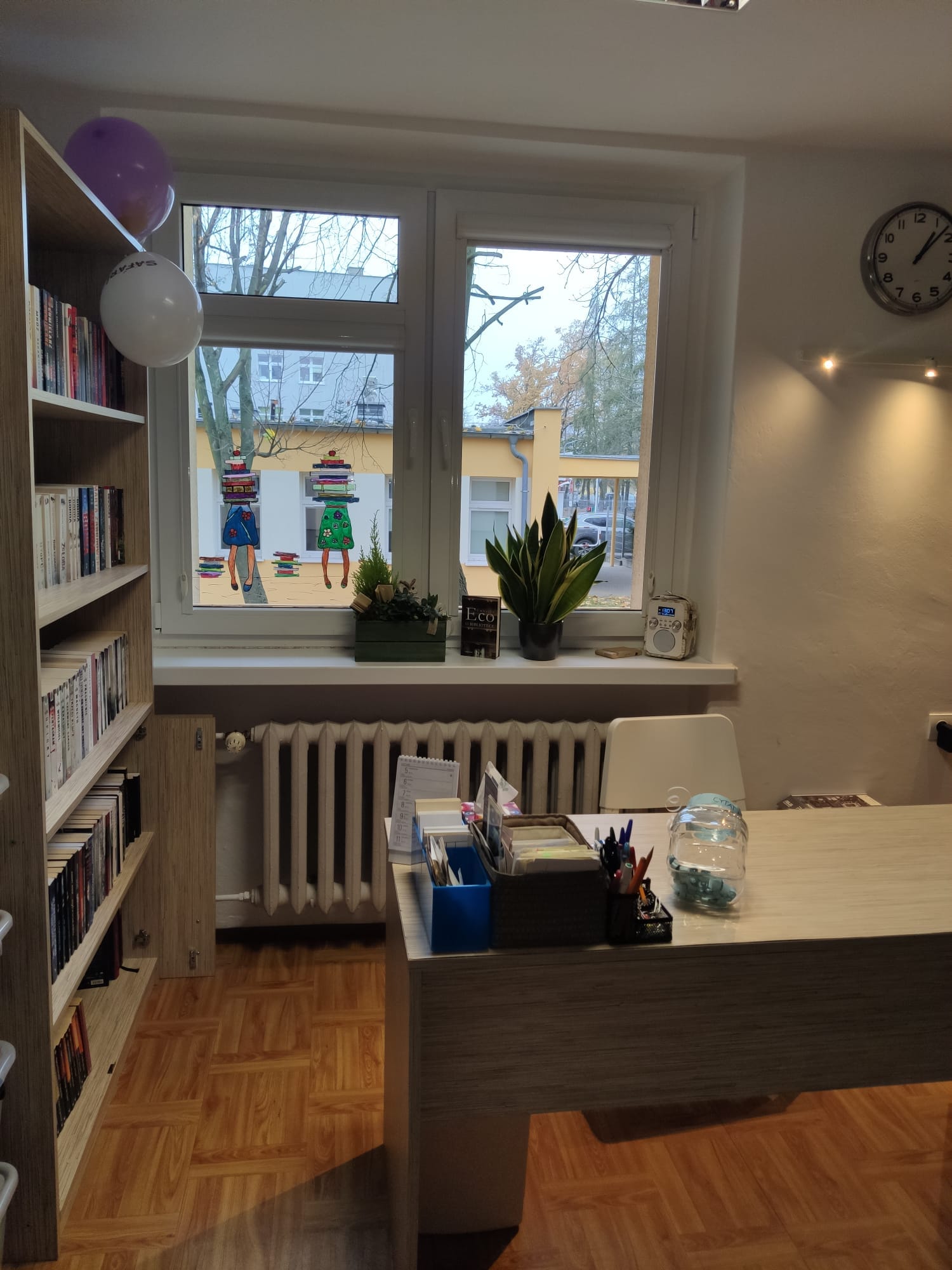 13 listopada 2024r. odbyło się w naszej szkole uroczyste otwarcie „Poradni bibliotecznej”, czyli szkolnej biblioteki, która mieści się teraz w budynku szkoły ZSS 110 ( budynku E na parterze).