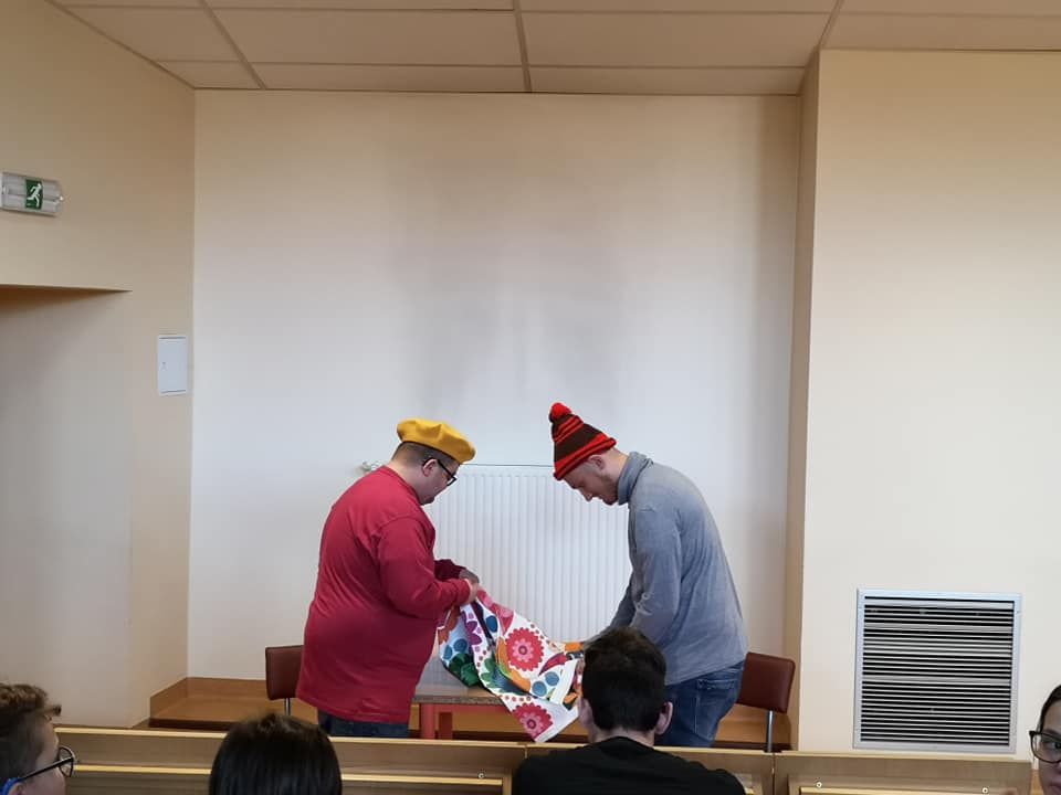 W dniu 4 grudnia odwiedziła nas młodzież wraz z opiekunami z Ośrodka Szkolno-Wychowawczego dla Dzieci Niesłyszących w Poznaniu. Dzieci z zaciekawieniem słuchały informacji o języku migowym i obejrzały pokaz magicznych sztuczek. Na zakończenie spotkania młodzież z Ośrodka przedstawiła inscenizację pt.: „Sąsiedzi”, którą widownia nagrodziła gromkimi brawami. Spotkanie zorganizowało Stowarzyszenie „WYSTARCZY GEST”.