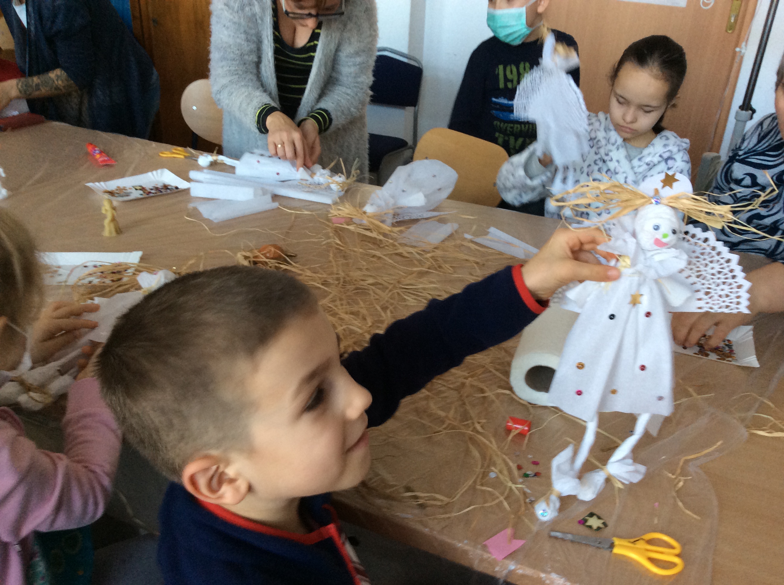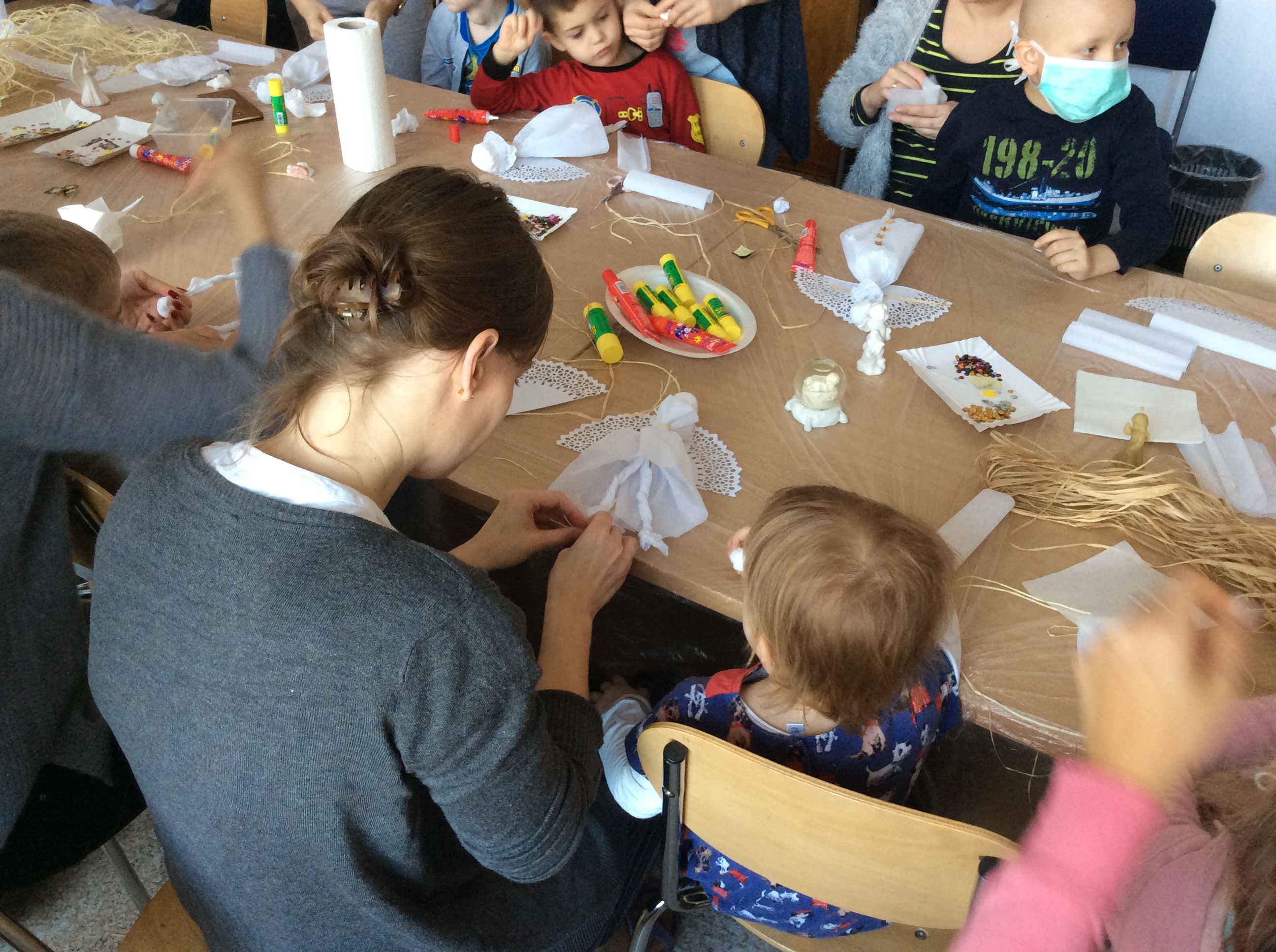 W dniu 28.11.2019 r. dzieci przedszkolne i wczesnoszkolne, wraz z rodzicami, uczestniczyły w cyklicznych warsztatach plastycznych z wykorzystaniem techniki papierczaków.