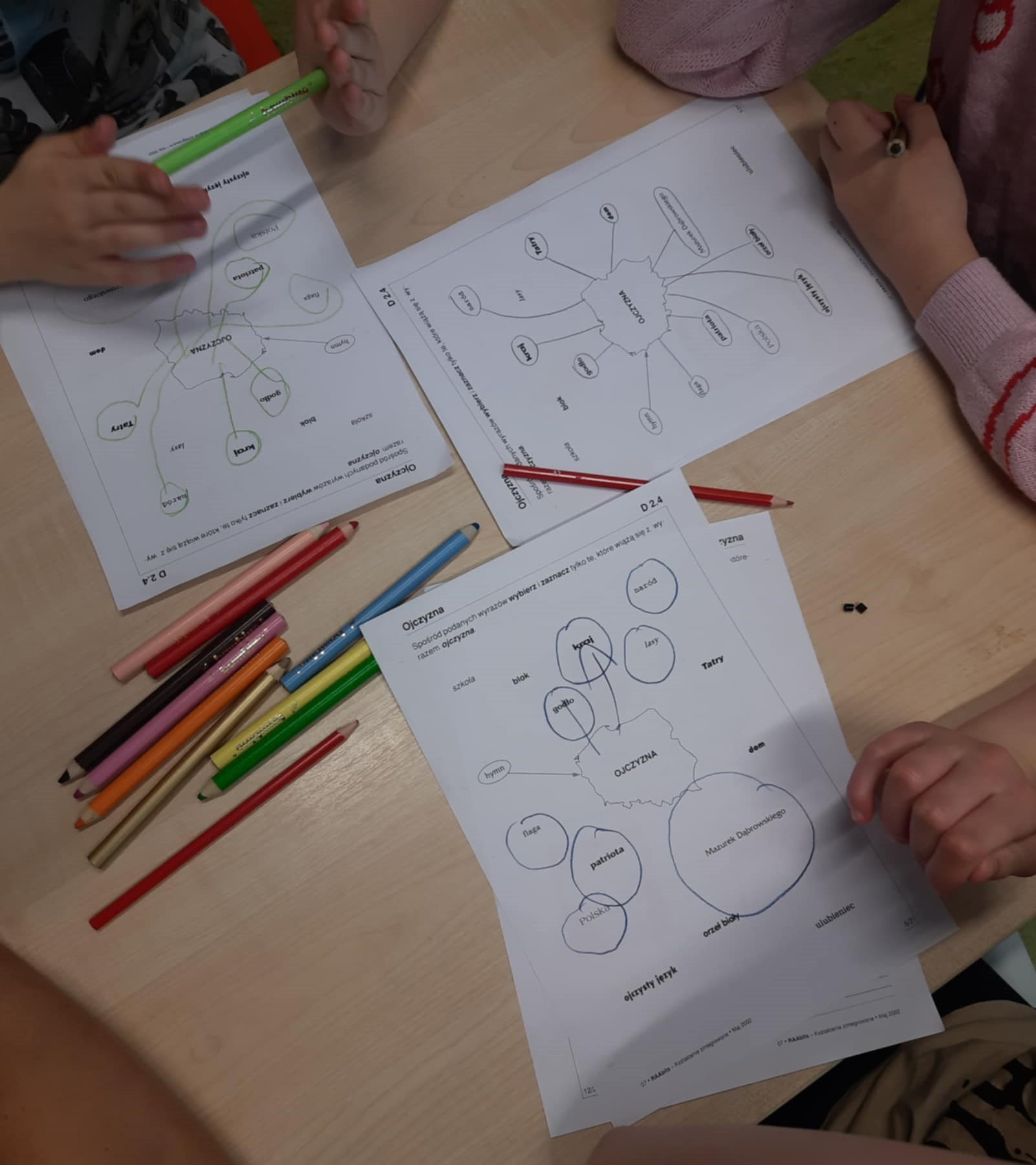 Po wysłuchaniu opowiadania odbyła się pogadanka dotycząca patriotyzmu, świąt 1,2,3 maja, godła Polski oraz flagi narodowej. Na zakończenie uczniowie rozwiązywali zadania tekstowe oraz wykonali godło Polski i wykleili flagę narodową.