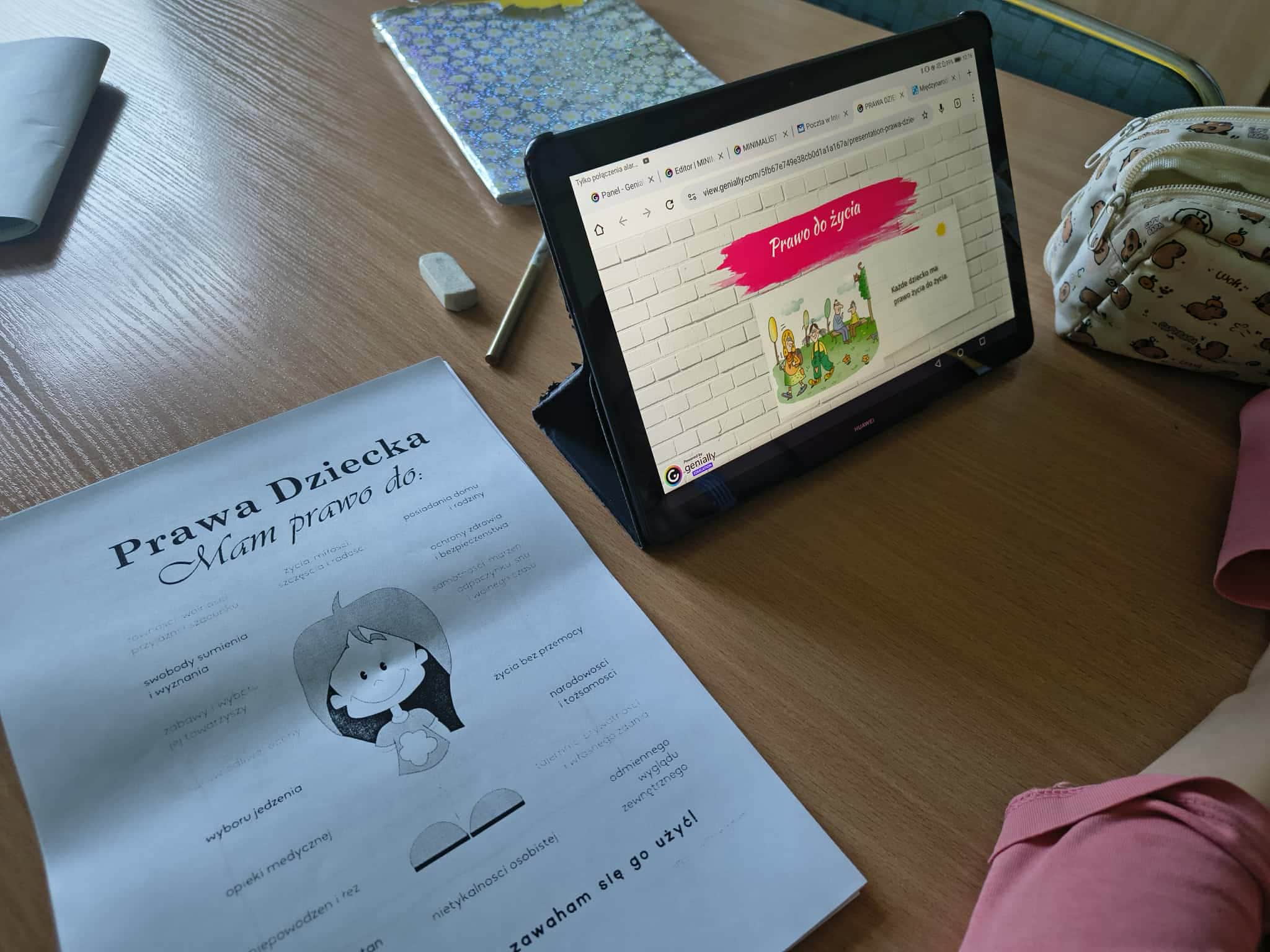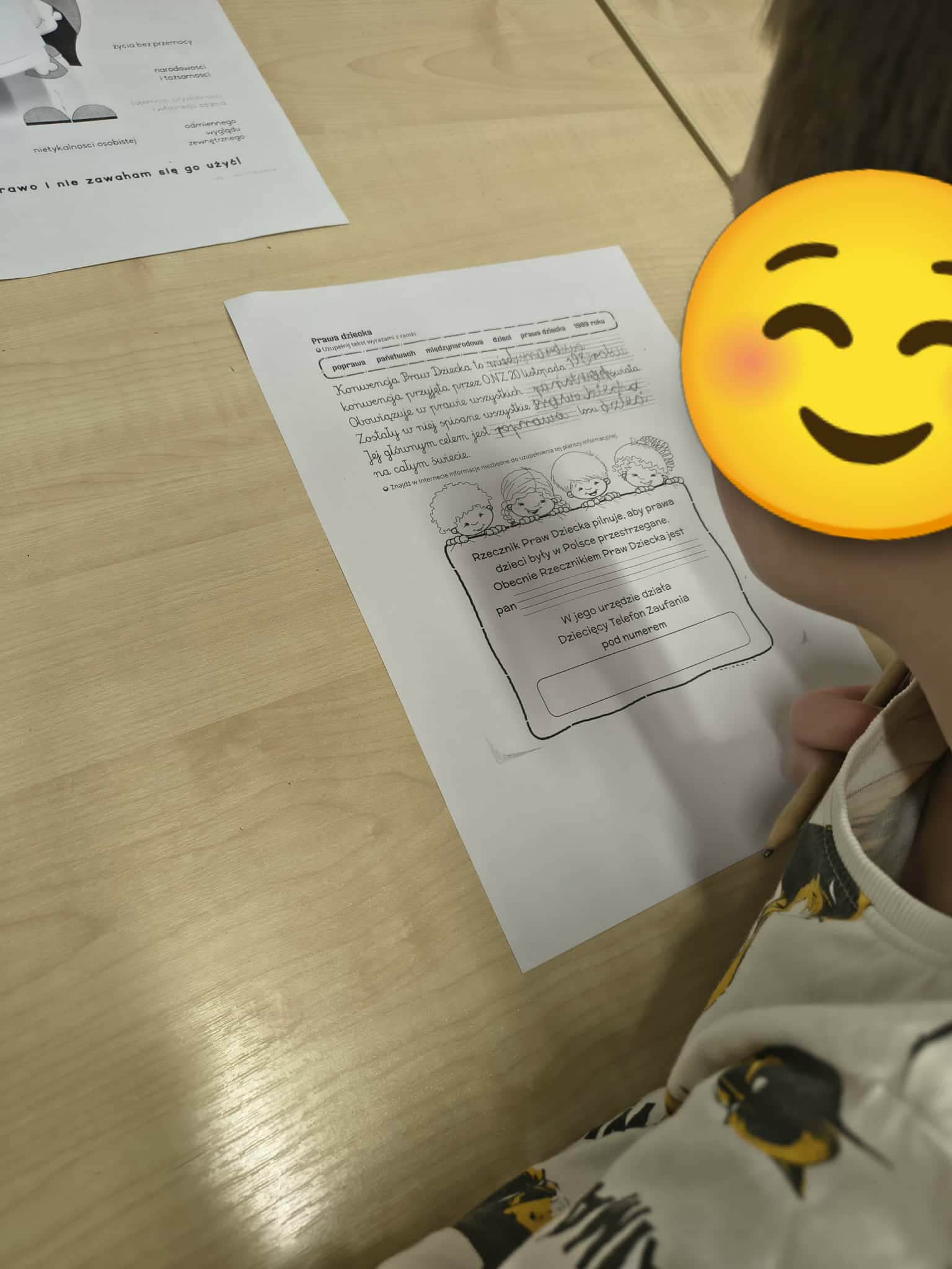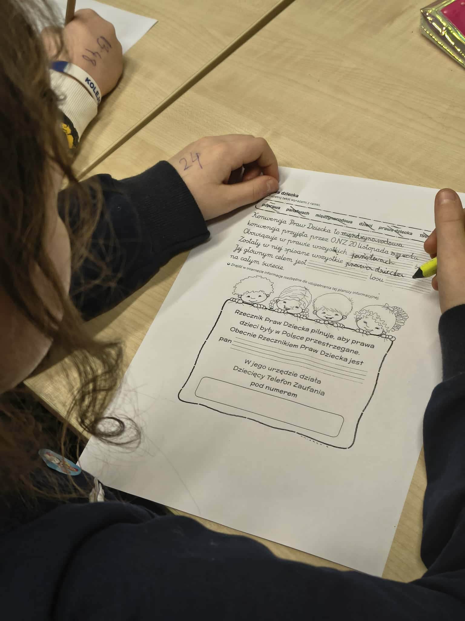 Dowiedzieli się, że każde dziecko na świecie ma specjalne prawa, które pomagają mu rosnąć w bezpieczeństwie, zdrowiu i szacunku. Podkreślili też, że wszystkie dzieci są równe, bez względu na wygląd, pochodzenie, język czy to, w co wierzą. Uczniowie na koniec zajęć rozwiązywali karty pracy.