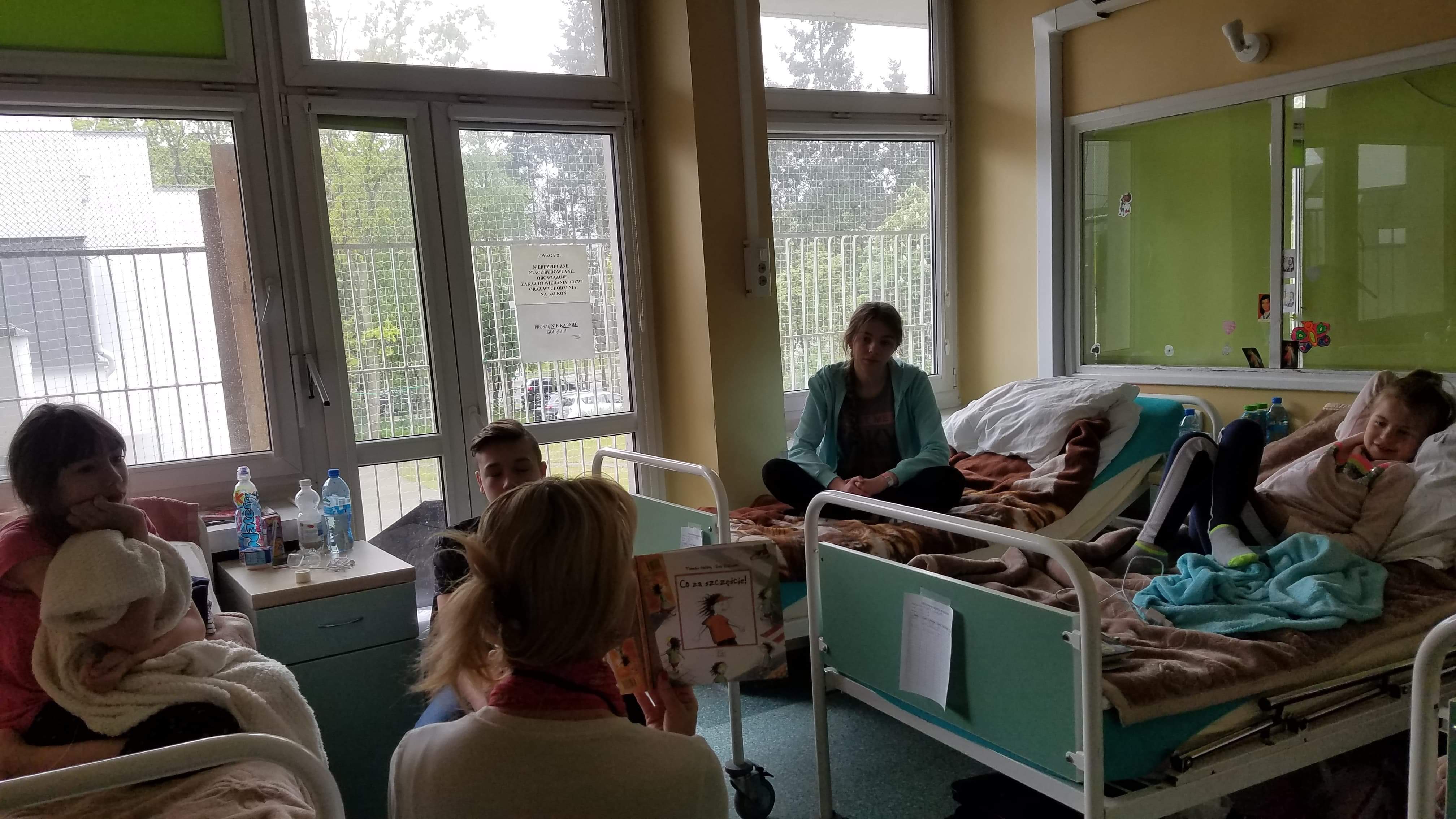 W naszej szkole akcja spotkała się z dużym zainteresowaniem – wzięło w niej udział 21 nauczycieli, którzy na oddziałach szpitalnych i przy łóżkach małych i trochę większych pacjentów czytali wybrane przez siebie wiersze i fragmenty książek. Były między nimi wiersze Jana Brzechwy i Juliana Tuwima, wiersze o Polsce, baśnie, legendy, „Mikołajek” czy przygody Lassego i Mai oraz wiele, wiele innych.