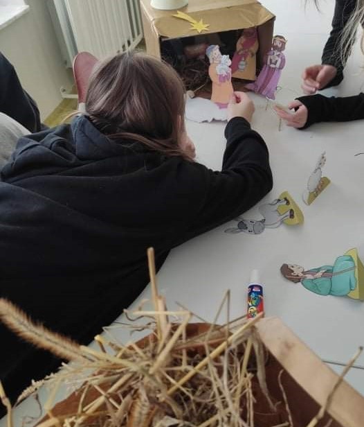 Poprzez prace plastyczne i odkodowanie rysunków poznali symbolikę ozdób choinkowych. Odkryli, że bombka i łańcuch na choinkę przypominają owoce z drzewa rajskiego i węża. Dzieci i młodzież wykonali szopkę betlejemską i obejrzeli Jasełka, dzięki którym odkryli na nowo wydarzenia z życia Świętej Rodziny.