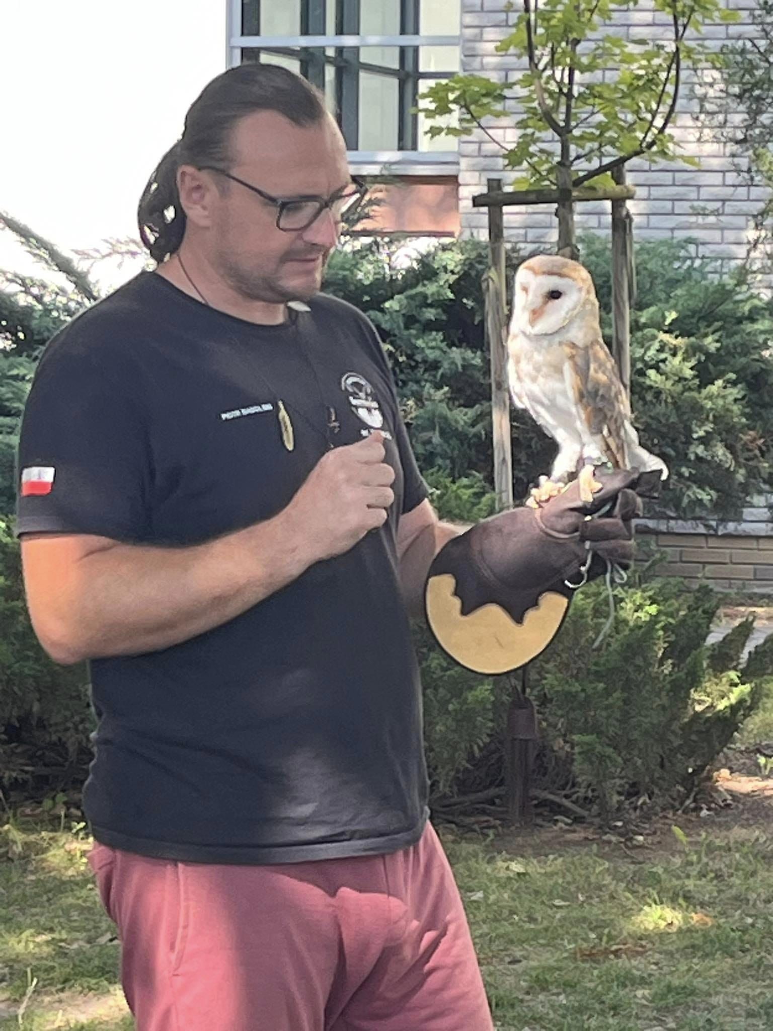 Nasz gość prowadzi pod Kaliszem azyl dla dzikich ptaków. Znajdują tam schronienie wycieńczone, kontuzjowane ptaki. Pan Piotr dzielił się z nami swoją miłością do zwierząt i natury. Dzieci miały okazję z bliska spotkać się z sowami i jastrzębiem. Bardzo dziękujemy za wyjątkowe spotkanie!