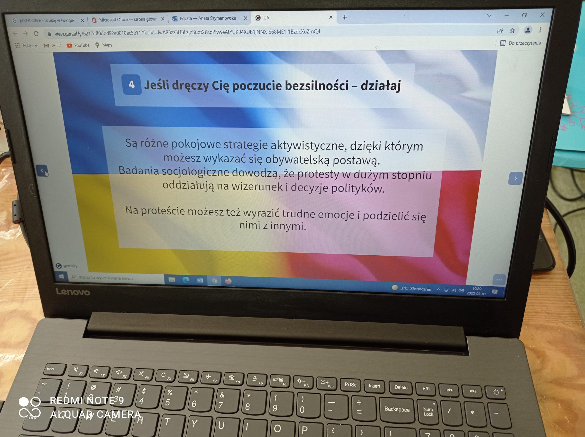 Przy pomocy prezentacji wprowadziliśmy uczniów w tematykę jak sobie radzić, kiedy obserwujemy niesprawiedliwość wojenną oraz jak pomagać uchodźcom ukraińskim. W ramach solidarności uczniowie wykonali ozobotowe i plastyczne serca. Zdjęcia tych prac będą przesłane do szkół na Ukrainie, które uczestniczą w międzyszkolnym projekcie ” Z kulturą mi do twarzy”.