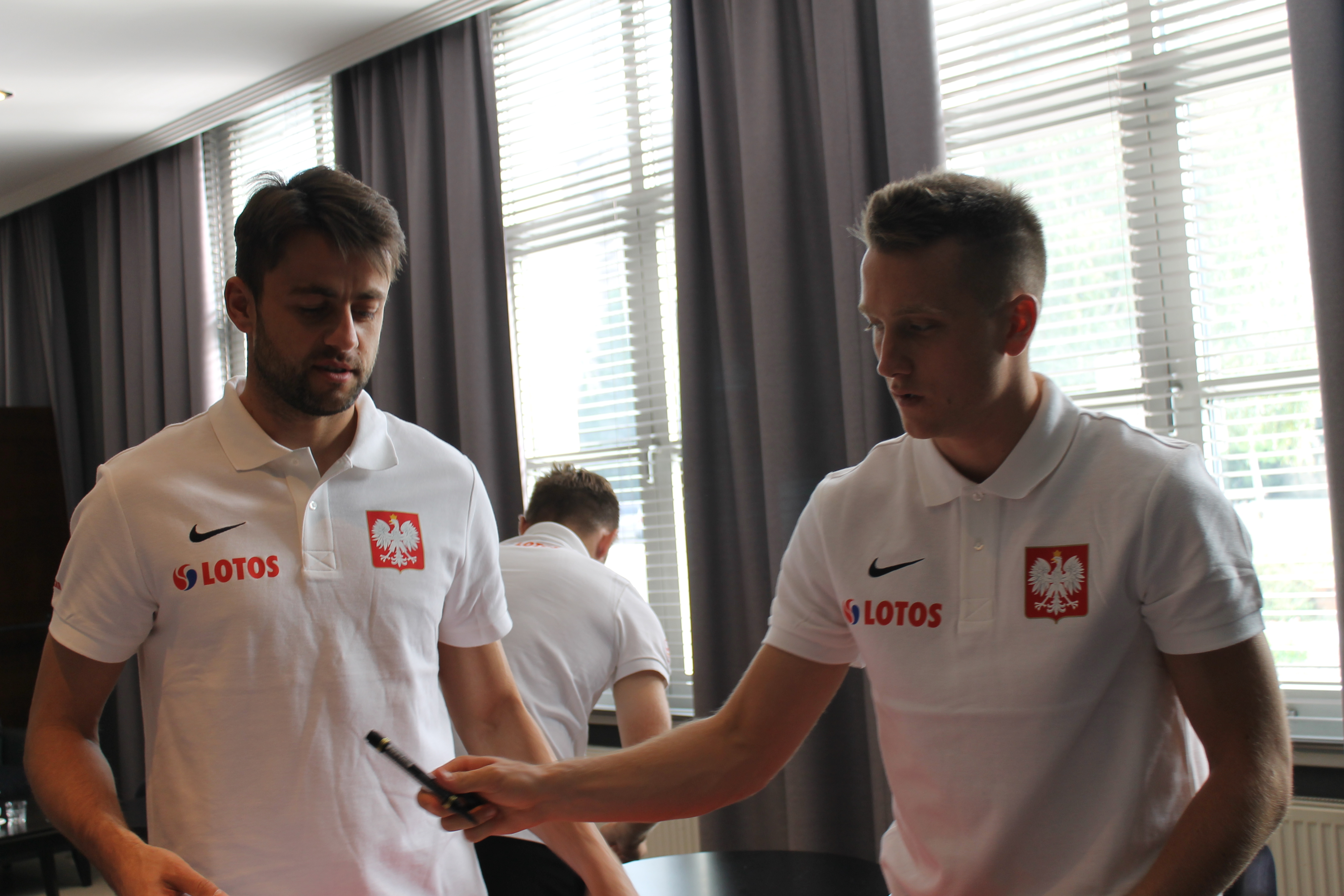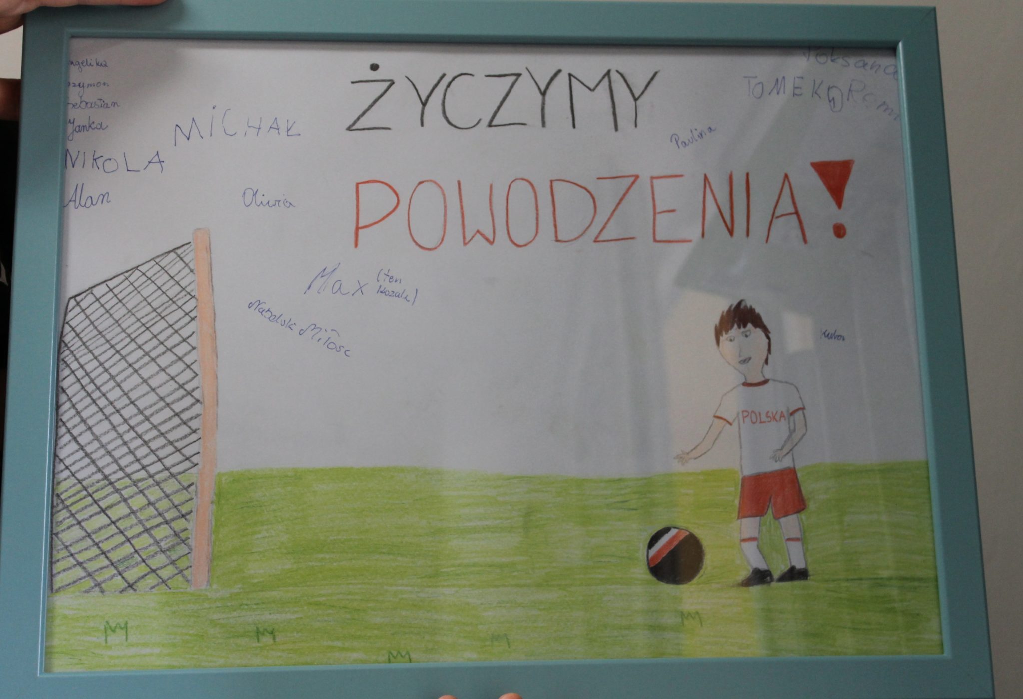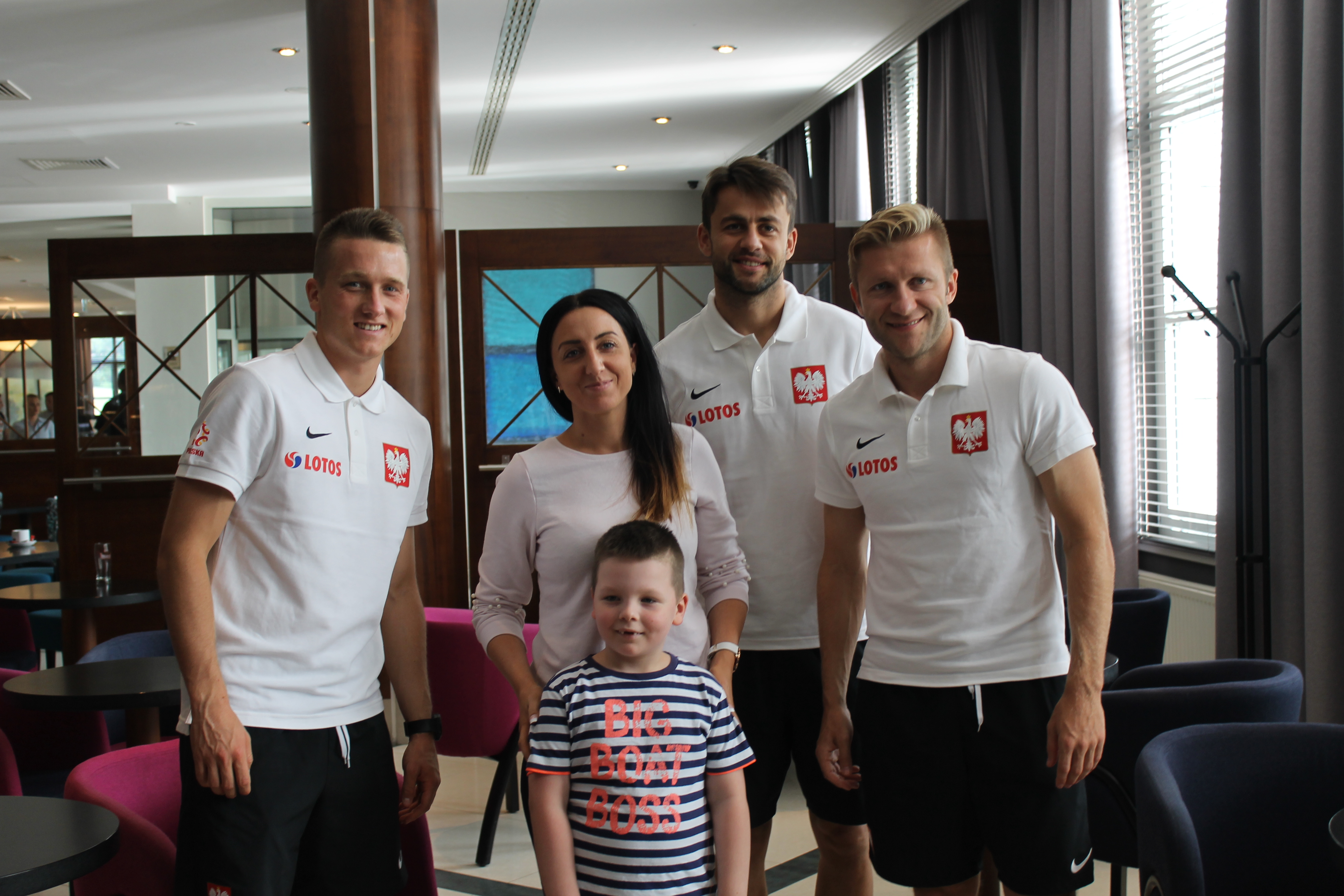 Jerzy Brzęczek, Kuba Błaszczykowski, Łukasz Fabiański i Piotr Zieliński przyjęli nas w trakcie zgrupowania. Dzieci wręczyły trenerowi pracę plastyczną z życzeniami sukcesów i zaprosiły do siebie do Poznania. Spełniło się również marzenie Marysi o kibicowaniu podczas meczu na stadionie. Dziękujemy!