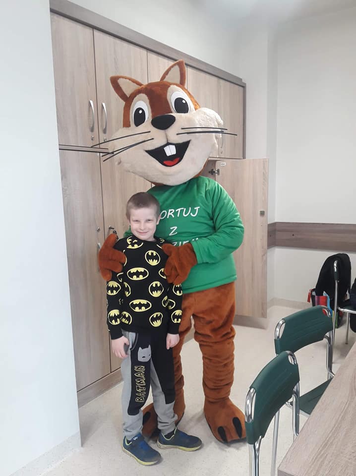 Z ogromną radością kolejny raz gościliśmy w naszej szkole szaloną Wiewiórkę o imieniu Józio wraz ze swoim asystentem Mateuszem Szymkowiakiem. Wiewiórka przemaszerowała przez wszystkie oddziały, aby przywitać się z każdym naszym podopiecznym. Podczas odwiedzin dzieci mogły pograć w piłkę, poprzytulać się oraz zrobić sobie pamiątkowe zdjęcie. Każda wizyta Józia to dla dzieci przebywających w szpitalu wyjątkowy czas, przepełniony radością i uśmiechem. Dziękujemy!