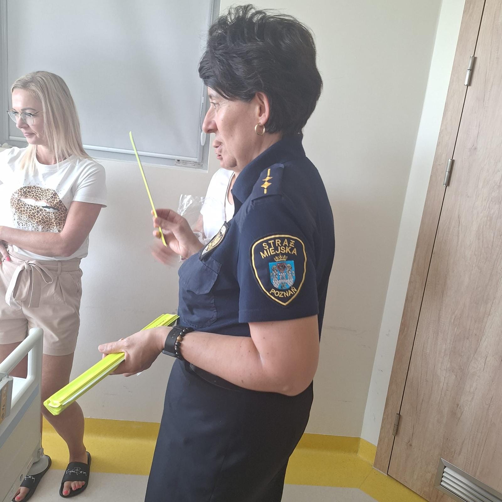 Tym razem odwiedziła nas pani ze Straży Miejskiej. Funkcjonariuszka poprowadziła rozmowy z dziećmi, których celem było utrwalenie wiedzy na temat obowiązujących zasad bezpieczeństwa na ulicy, w drodze do szkoły i przedszkola. Gość opowiedział dzieciom, na czym polega jego praca, w jakich okolicznościach należy wzywać Straż Miejską oraz omówił elementy swego munduru. Starsi uczniowie z ciekawością i zainteresowaniem zapoznali się z nowymi przepisami dotyczącymi korzystania z hulajnóg elektrycznych.