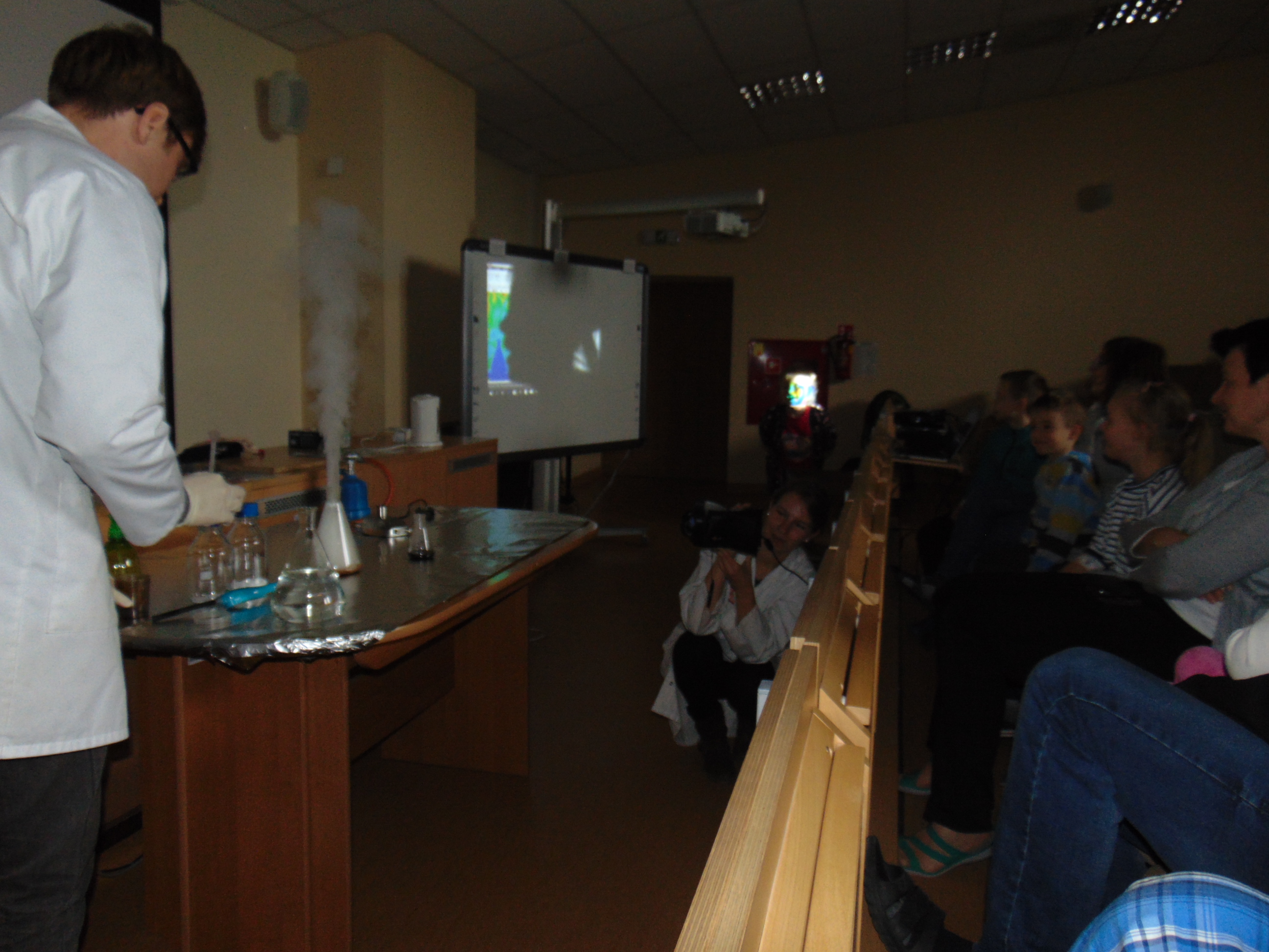 W świetle podczerwieni w bezpieczny sposób mogliśmy obserwować zmianę temperatury wody podczas jej ogrzewania oraz wytwarzanie ciepła podczas reakcji chemicznych. Niezwykłą okazją była możliwość oglądania siebie samych w podczerwieni! Na koniec ochłodziliśmy emocje w chmurach ciekłego azotu i badaliśmy zmianę właściwości fizycznych róż, które zostały zatopione w azotowych oparach.