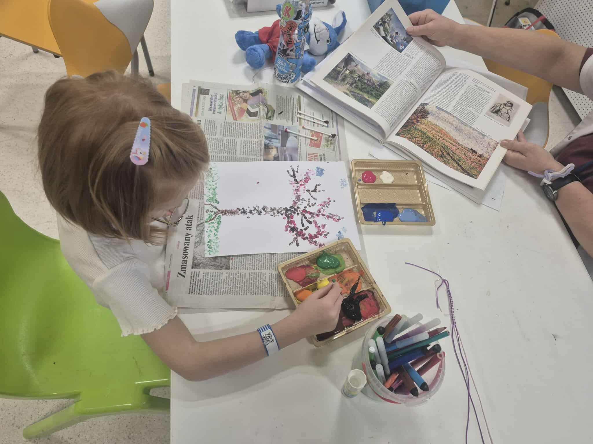 W okresie tym malował obrazy złożone z drobnych kropek czystych barw, które dopiero z pewnej odległości tworzyły harmonijny obraz. Puentylistyczne prace Pissarra, pełne światła i koloru, ukazują jego zainteresowanie naukowym podejściem do koloru i percepcji wzrokowej. W twórczości dzieci technikę tę można wykorzystać jako zabawę z barwami — dzieci mogą tworzyć obrazy z kropek farby lub flamastrów, eksperymentując z mieszaniem kolorów. Takie ćwiczenia rozwijają spostrzegawczość, cierpliwość i wrażliwość na niuanse kolorystyczne.
