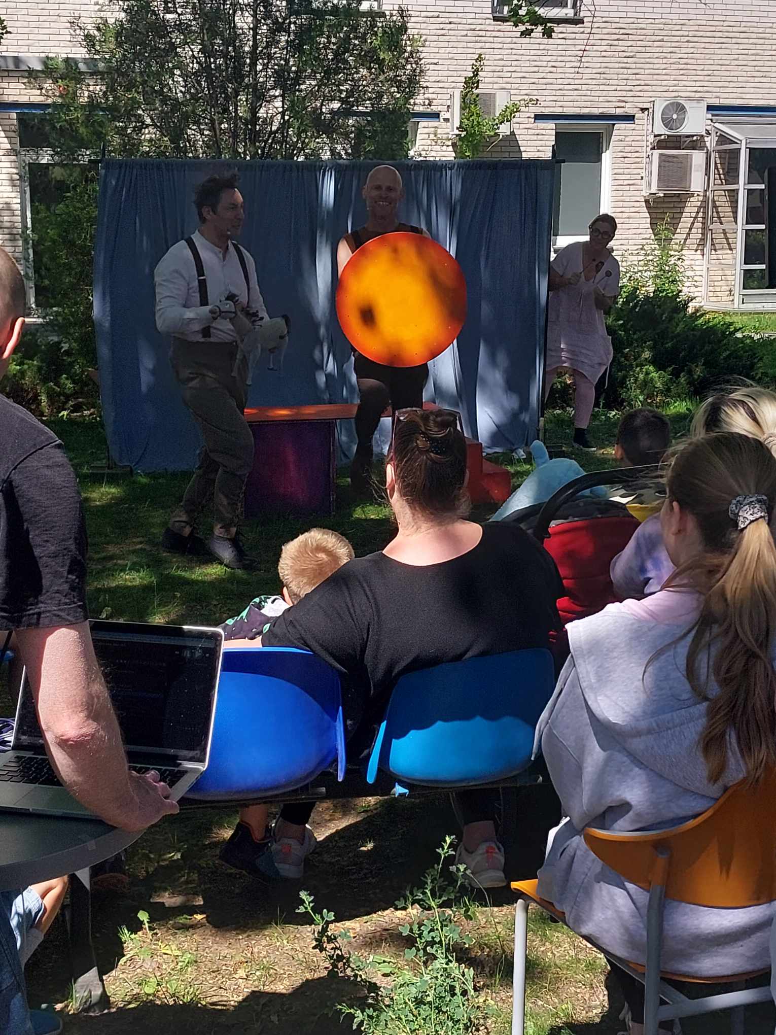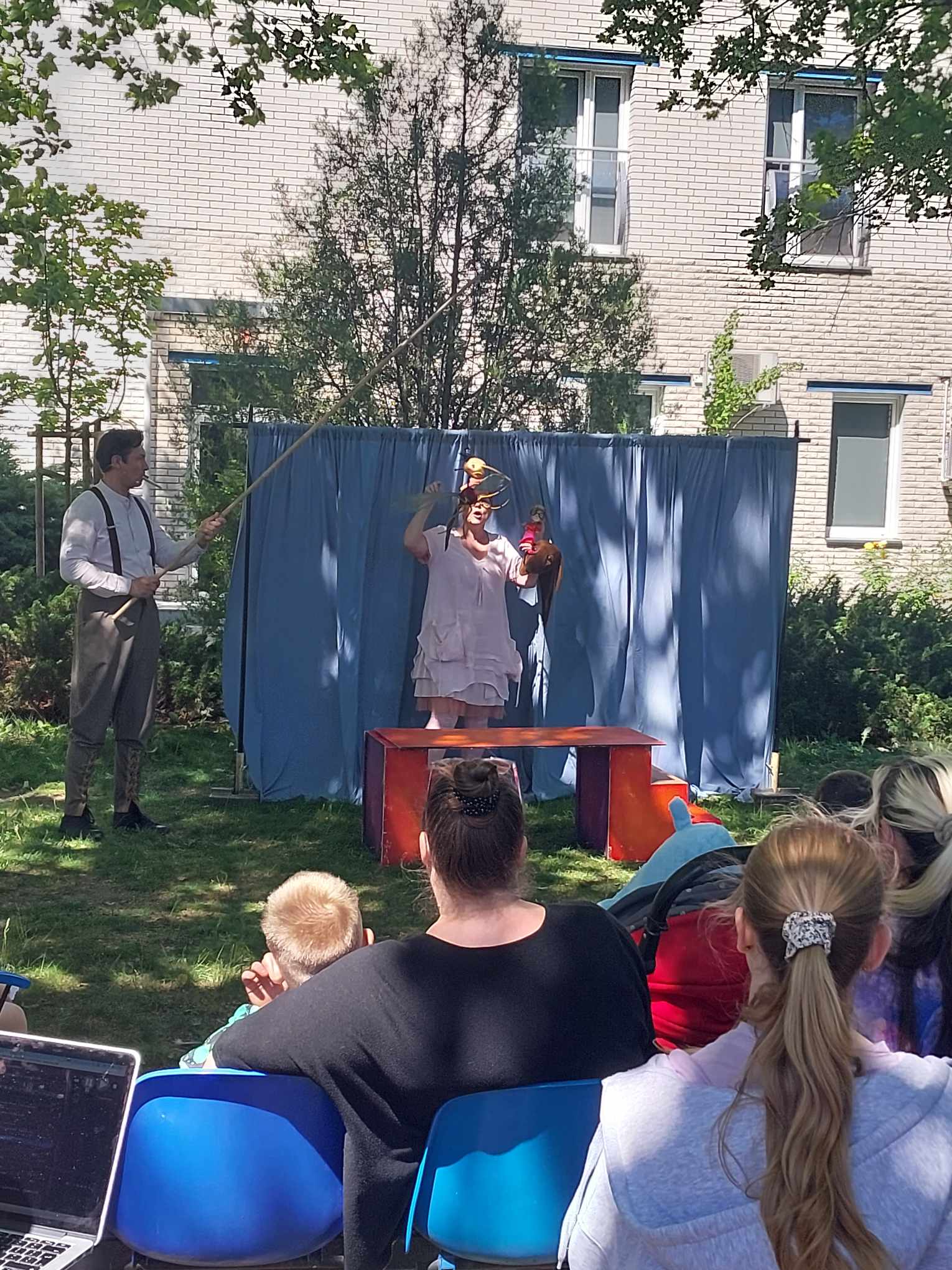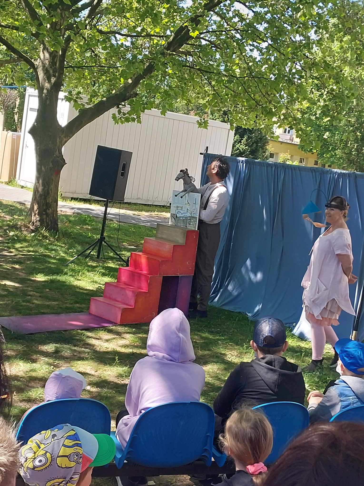 Aktorzy Teatru Animacji w Poznaniu zamiast na teatralnej scenie wystąpili dla naszych uczniów na szpitalnym placu zabaw. Nietuzinkowe „Bajki malutkie” zauroczyły małych widzów. Zamiast księżniczek, rycerzy i smoków, tym razem bohaterami byli Pchła Majka i Rozczarowany Rumak Romuald. Spotkanie było nieprzewidywalne, pełne humoru i magii. Małe jest piękne!