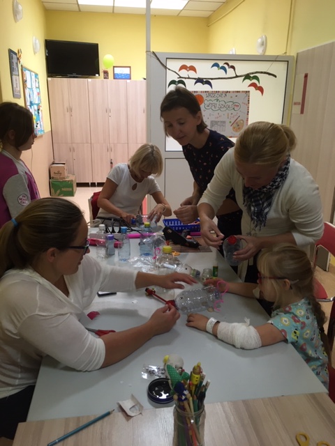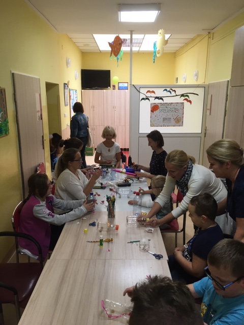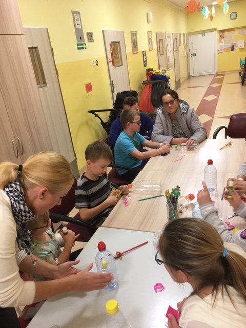 24 września na oddziale gościliśmy Papierowy Teatr Kamishibai. Dzieci zapoznały się z techniką opowiadania wywodzącą się z Japonii, wykorzystując plansze z obrazkami i tekstami oraz drewnianą lub kartonową skrzynkę. Dzieci wysłuchały opowiadania o trzech małych świnek i złym wilku. Po wysłuchaniu bajki dzieci wykonały z plastikowej butelki „Świnkę skarbonkę” jako element procesu recyklingu.