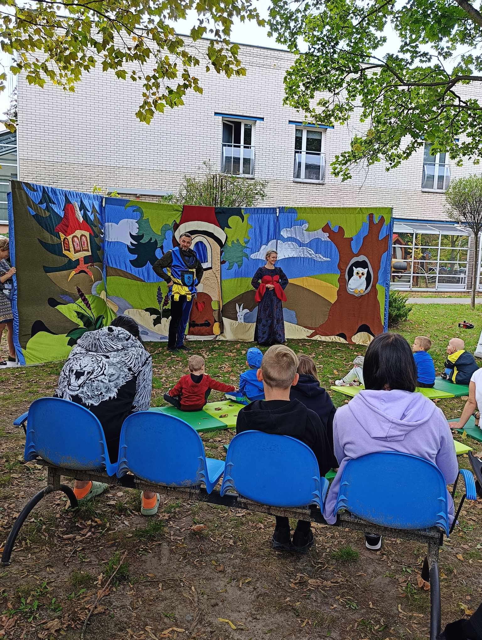 Dzieci śledziły losy dzielnego rycerza Bolka, pragnącego ocalić królewnę Matyldę uwięzioną w wieży. Zadanie to okazało się niełatwe, ponieważ na swojej drodze spotkał on wiedźmę Andżelę oraz płatającego figle chochlika i kruka. Dzięki swojemu sprytowi oraz pomocy dzieci dzielny rycerz zdobył klucz do wieży i uratował królewnę. Spotkanie z teatrem sprawiło dzieciom wiele radości. Dziękujemy.