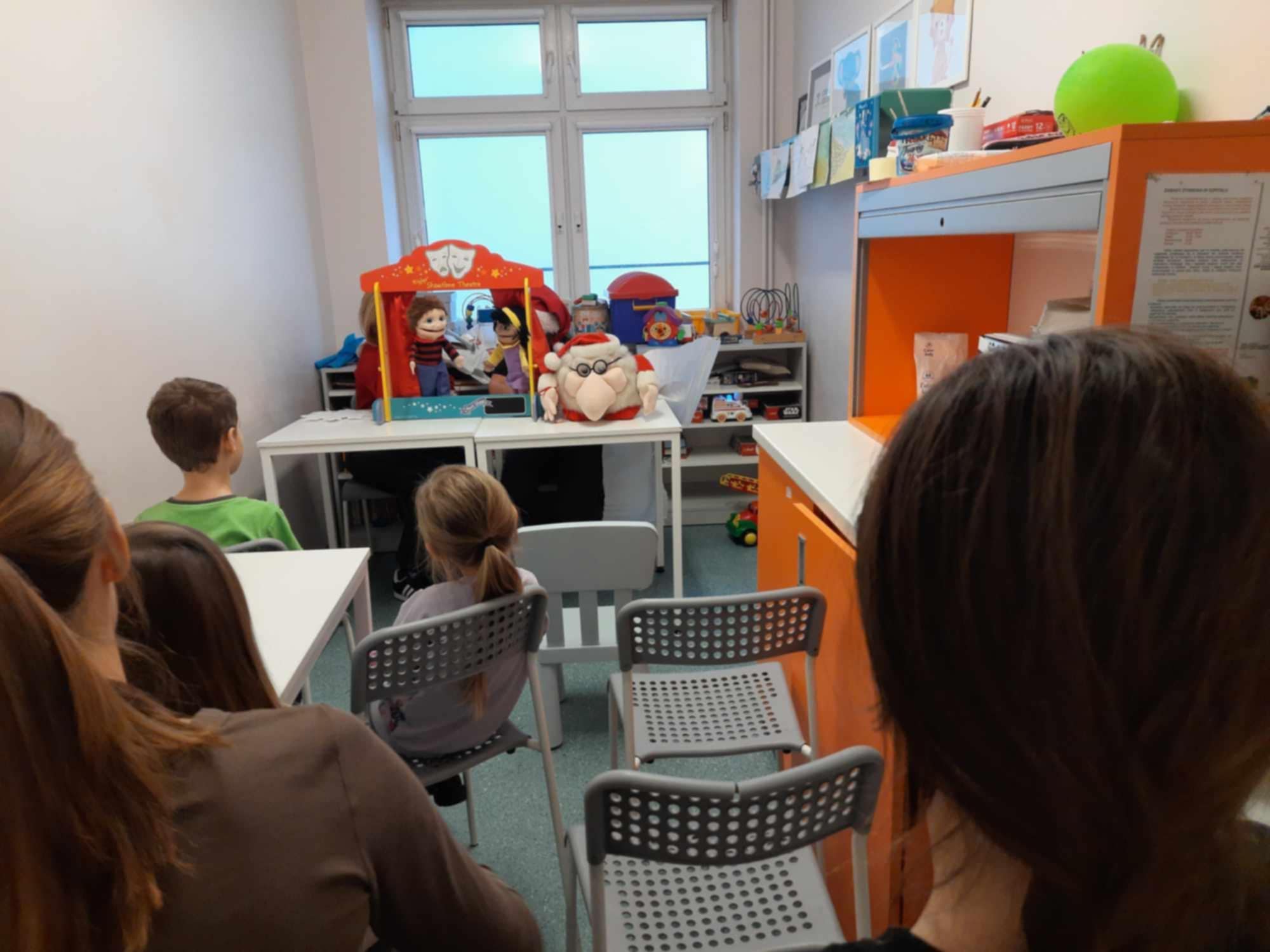 Z okazji Mikołajek Teatrzyk Kroplóweczka wystąpił z przedstawieniem o Świętym Mikołaju