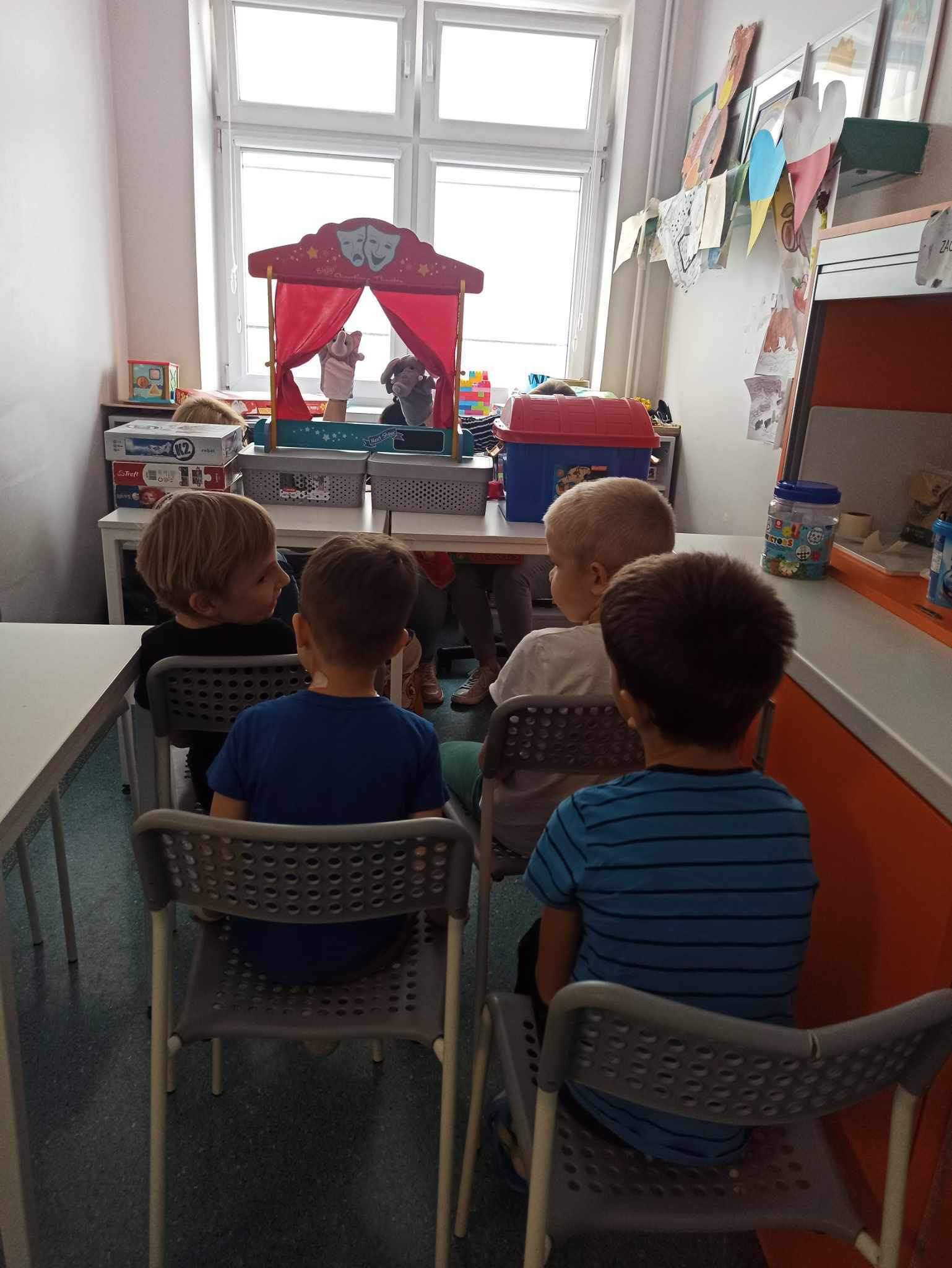 Teatrzyk Kroplóweczka jak zwykle nie zawiódł dzieci, było dużo śmiechu i radości. Po przedstawieniu odbyła się pogadanka na temat akceptacji i bycia sobą oraz, jak ważne jest to, aby lubić samego siebie.