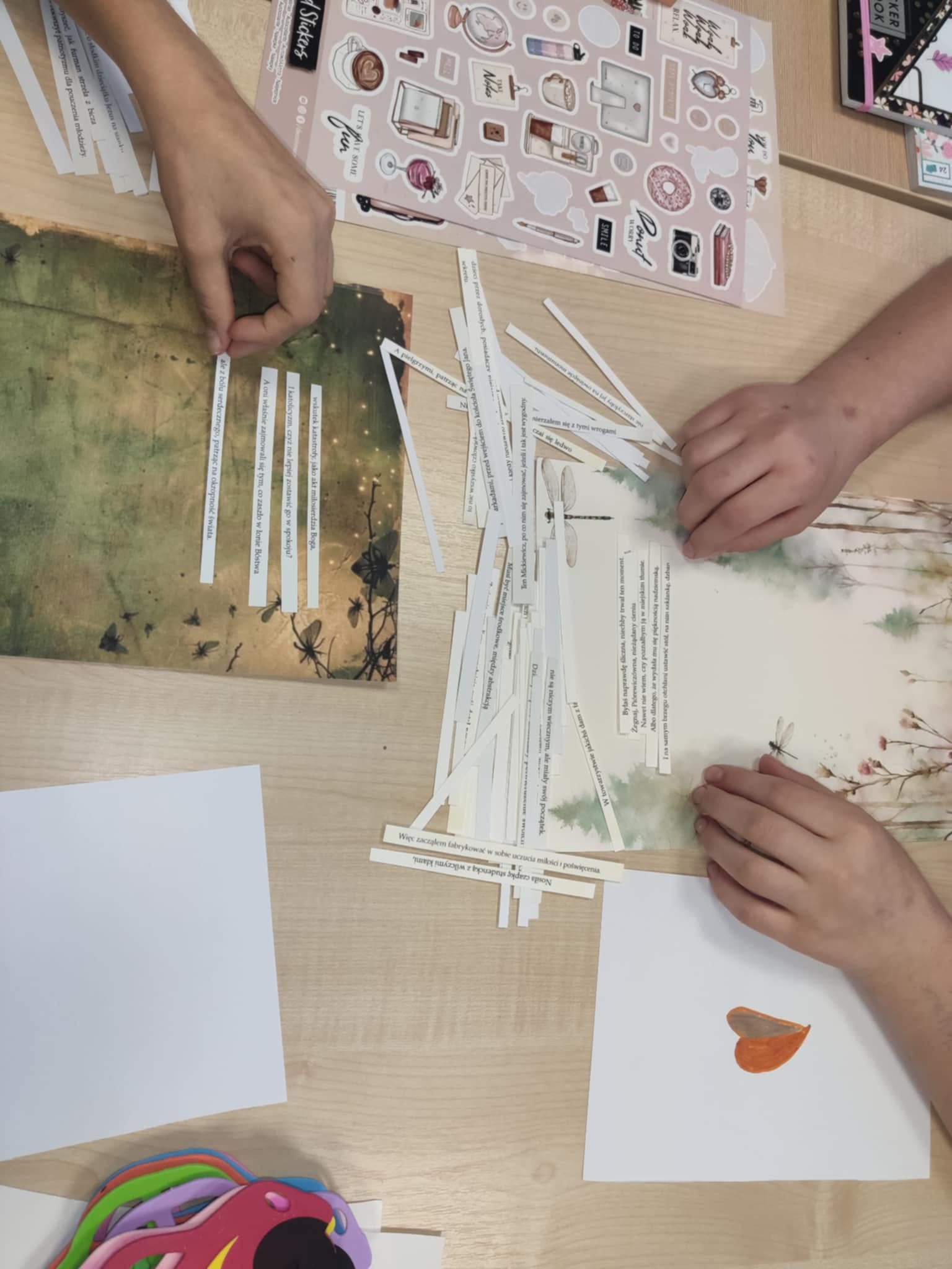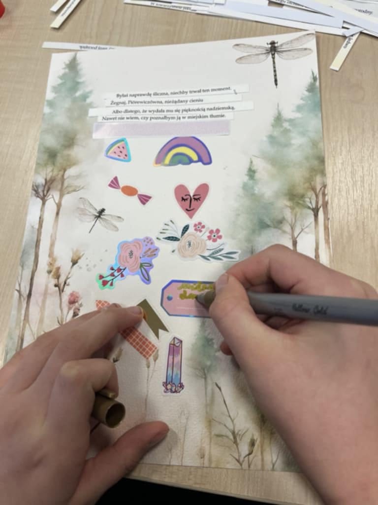 Zajęcia przeprowadzone na oddziałach szpitalnych miały charakter warsztatów literacko-plastycznych. Pierwszego i drugiego dnia uczniowie przepisywali wybrane przez siebie wiersze Czesława Miłosza – powstały piękne, starannie wykonane prace, które sprawiły dzieciom i młodzieży dużo radości. W kolejnych dniach uczniowie tworzyli własne wiersze z fragmentów utworów poety – był to tzw. „bigos poetycki” , który pozwalał na zabawę słowem oraz osadzanie tekstów w nowych, nieoczywistych kontekstach. Na zakończenie Tygodnia Literackiego uczniowie mieli okazję zapoznać się z techniką „blackout poetry” i tworzyć wiersze ze słów poety, zamalowując pozostały tekst, oraz ozdobić je w niekonwencjonalny sposób.