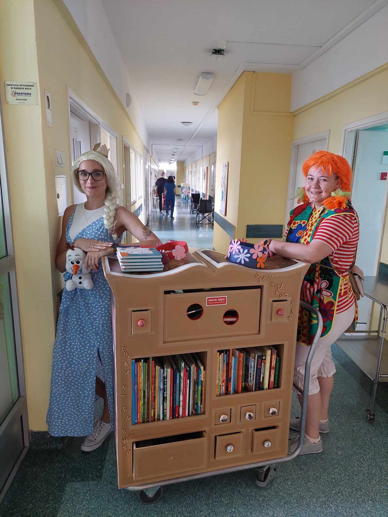 Elza i Pipi „wyskoczyły” z wakacyjnego z bajkowozu i zapraszały dzieci do wakacyjnego spotkania z książkami.