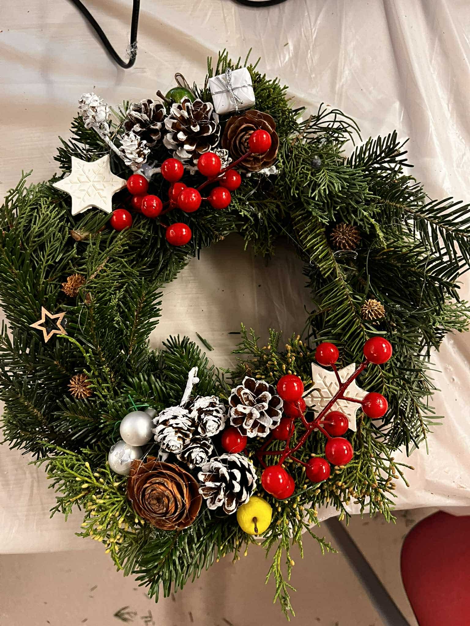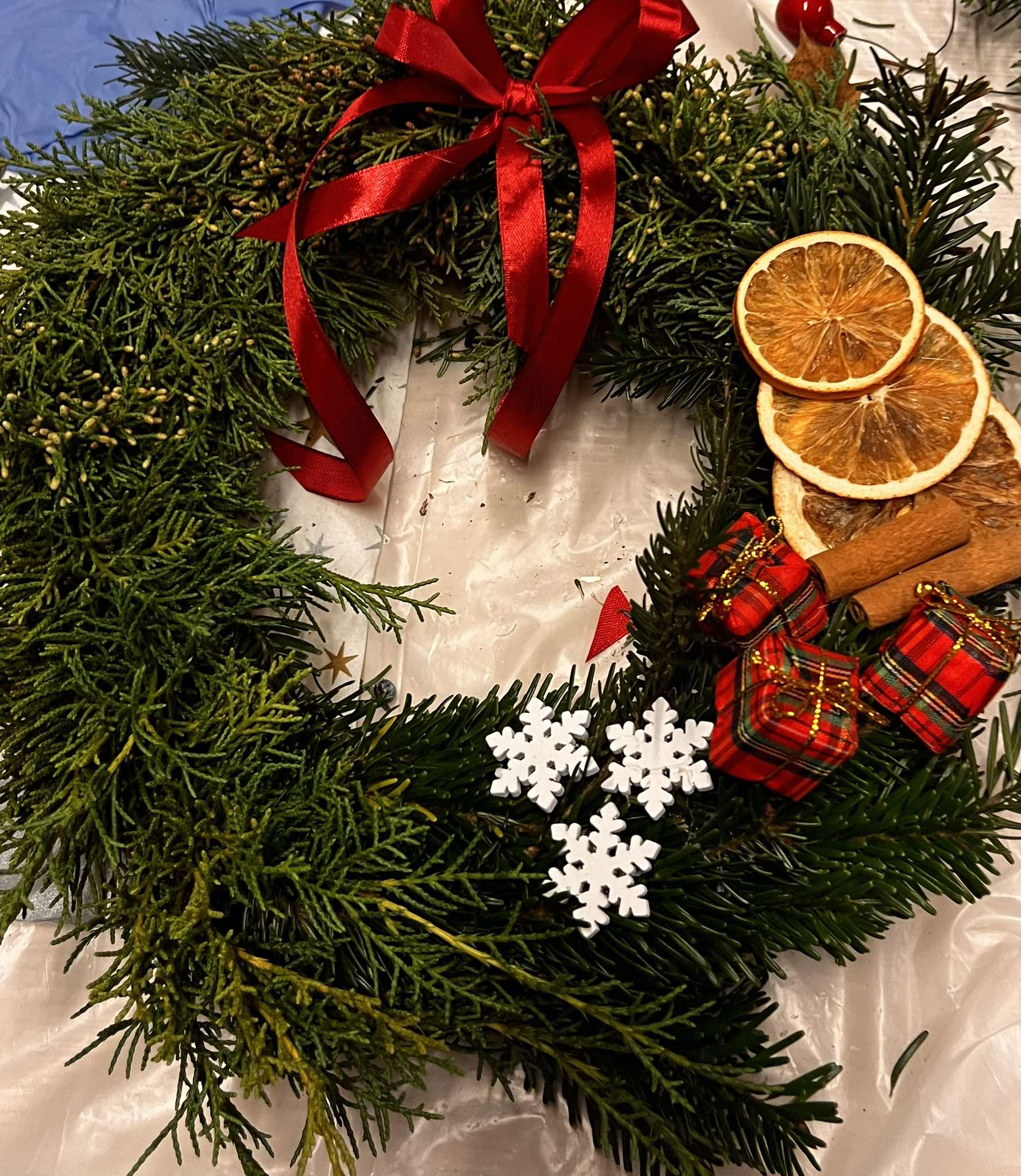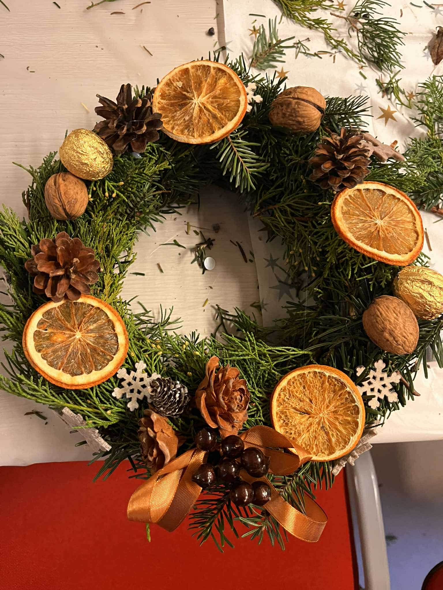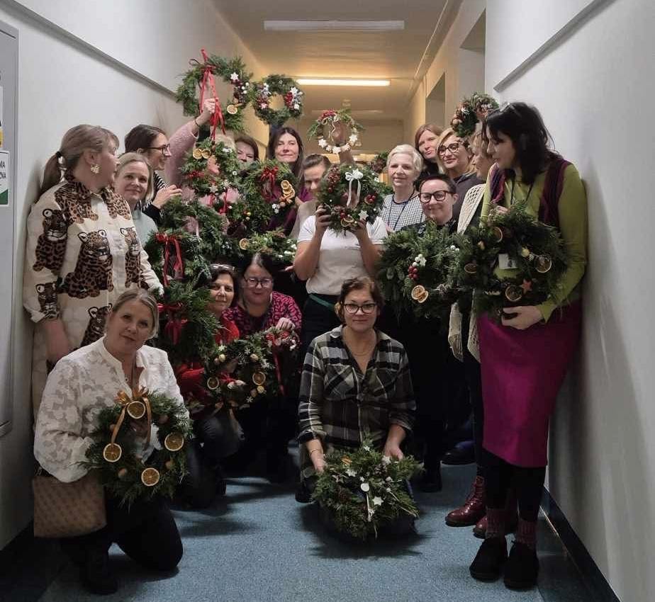 W świątecznej atmosferze, przy dźwiękach kolęd, zapachu pierników wykonaliśmy wspólnie piękne świąteczne wieńce.