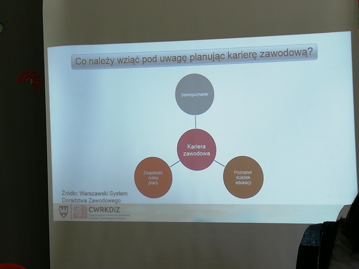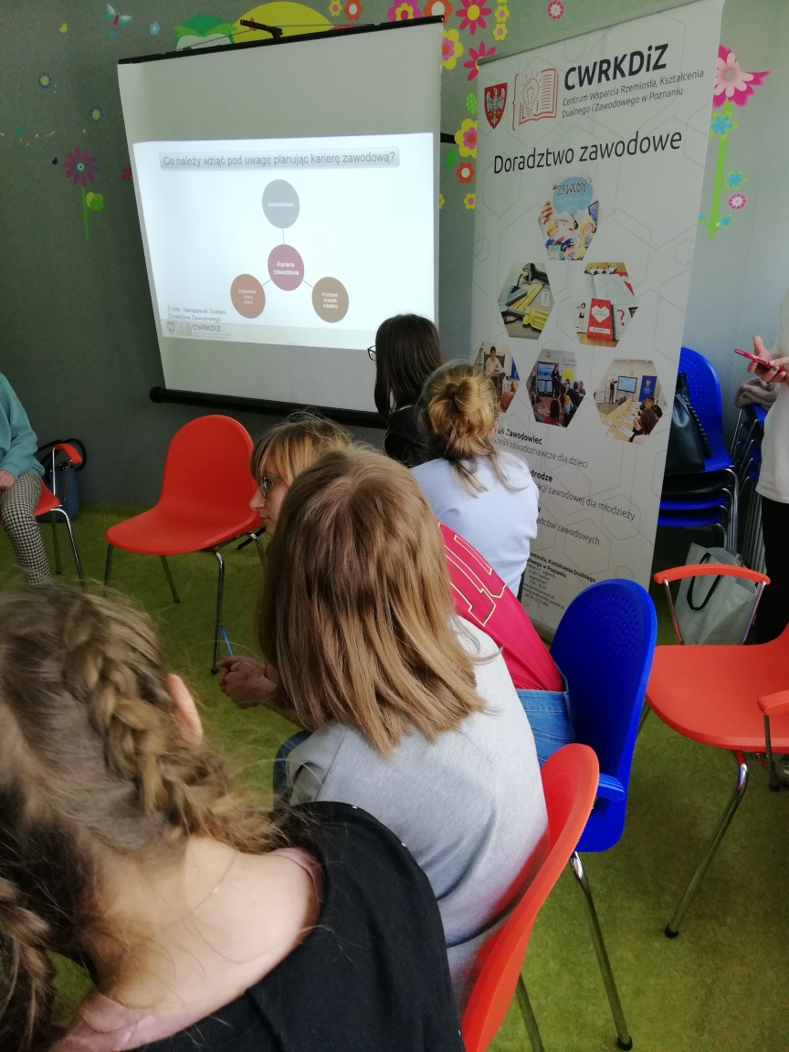 29 kwietnia starsi uczniowie naszej szkoły uczestniczyli w zajęciach wspierających świadomy i odpowiedzialny wybór ścieżki kariery. Każdy miał możliwość lepiej zweryfikować swoje mocne i słabe strony, predyspozycje oraz ograniczenia. Dzięki specjalnym aplikacjom możliwe było poznanie różnych zawodów oraz etapów edukacji, które do nich prowadzą. Naszymi gośćmi były panie edukatorki z Poznańskiego Centrum Wspierania Rzemiosła, Kształcenia Zawodowego i Dualnego. DZIĘKUJEMY.
